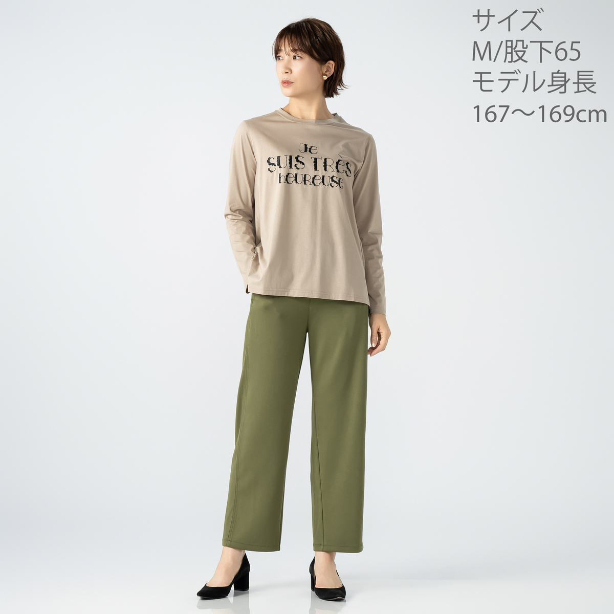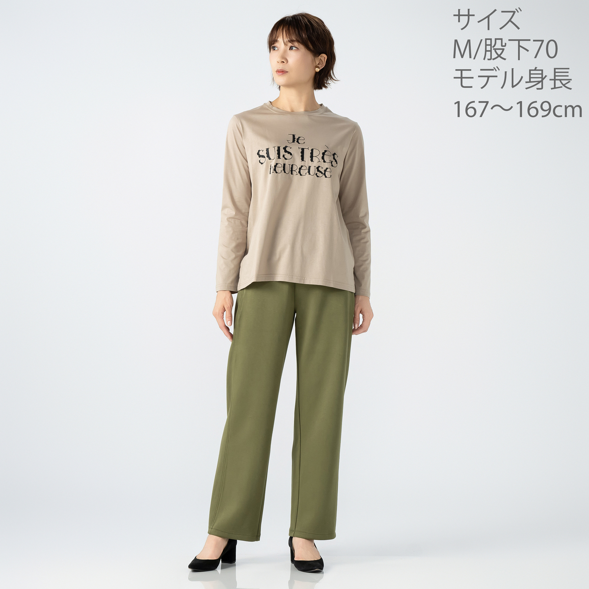 [商品寸法(ヌード)cm] サイズ ウエスト ヒップ S: 61(58〜64) 93(82〜90) M: 66(64〜70) 98(87〜95) L: 71(69〜77) 103(92〜100) LL: 76(77〜85) 108(97〜105) 3L: 82(85〜93) 114(102〜110) サイズ 前股ぐり わたり幅 S: 29.5 30.5 M: 30 32 L: 30.5 33.5 LL: 31 35 3L: 31.5 36.5 股下:65/70 [ウエストゴム] 全体に有 [素材] ポリエステル 50% レーヨン 45% ポリウレタン 5% [お手入れ] 洗濯機洗い可 [股下目安] 股下65cm>>>身長160cm未満(目安) 股下70cm>>>身長160cm以上(目安) [注意事項] ※商品寸法の誤差は多少発生します。ご了承下さい ※洗濯ネット使用 ※あて布使用 ※無蛍光洗剤使用 ※着用時の摩擦(特に雨や汗により湿った状態での摩擦)で他の衣料やバッグ、椅子やソファー、車のシート等に色が移る場合がありますのでご注意下さい。万が一移染した場合は、移染した衣類等の早めのお手入れをお願いします ※濃色は水洗いで色落ちや色移りの恐れがありますので淡色との洗濯は避け、洗濯後は速やかに干して下さい。長時間のつけ置き洗いや濡れたままの重ね置きはお避け下さい ※この商品は長時間日光に当たり続けると色あせの恐れがあります。ご注意下さい。洗濯後は必ず陰干しして下さい ※素材の特性上、長時間の摩擦や揉み作用等で毛玉や毛羽立ちが起きやすいのでご注意下さい。目立つ毛玉はハサミや毛玉取り器で取り除くなどし、飛び出した毛玉や毛羽を引っ張ったりしないで下さい 【中国製】