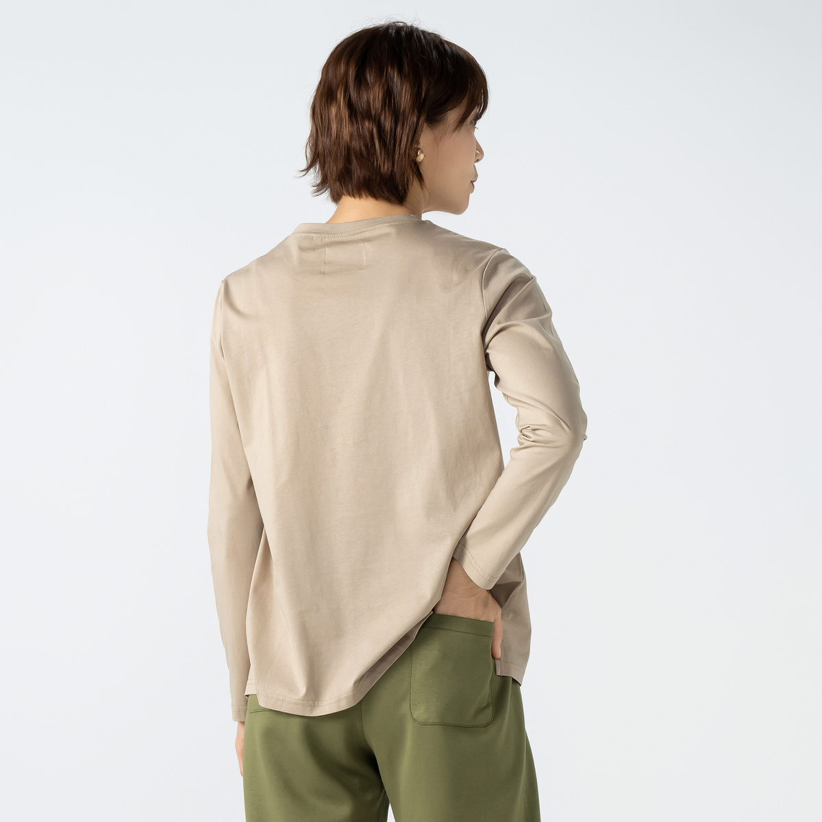 シルケット加工を施した天竺素材を使用。キメ細やかな表面感と光沢感、適度なハリ感のあるしなやかな素材です