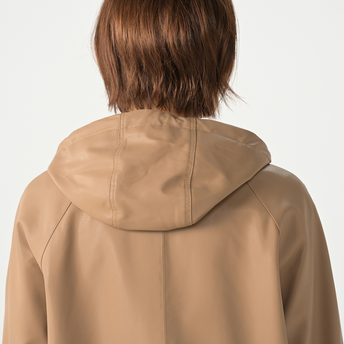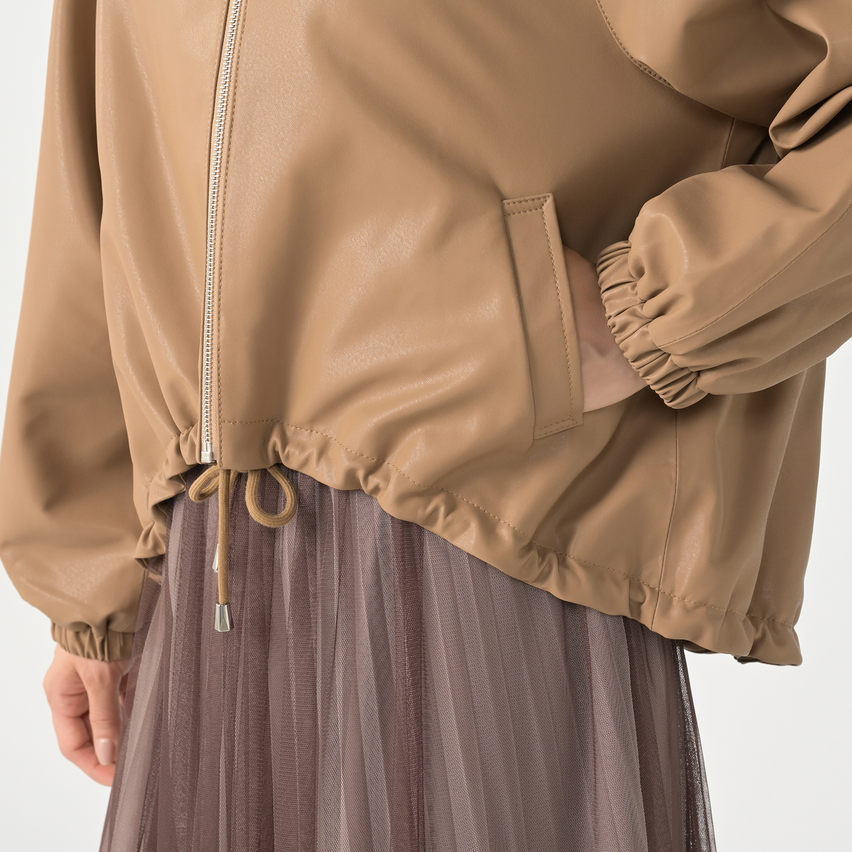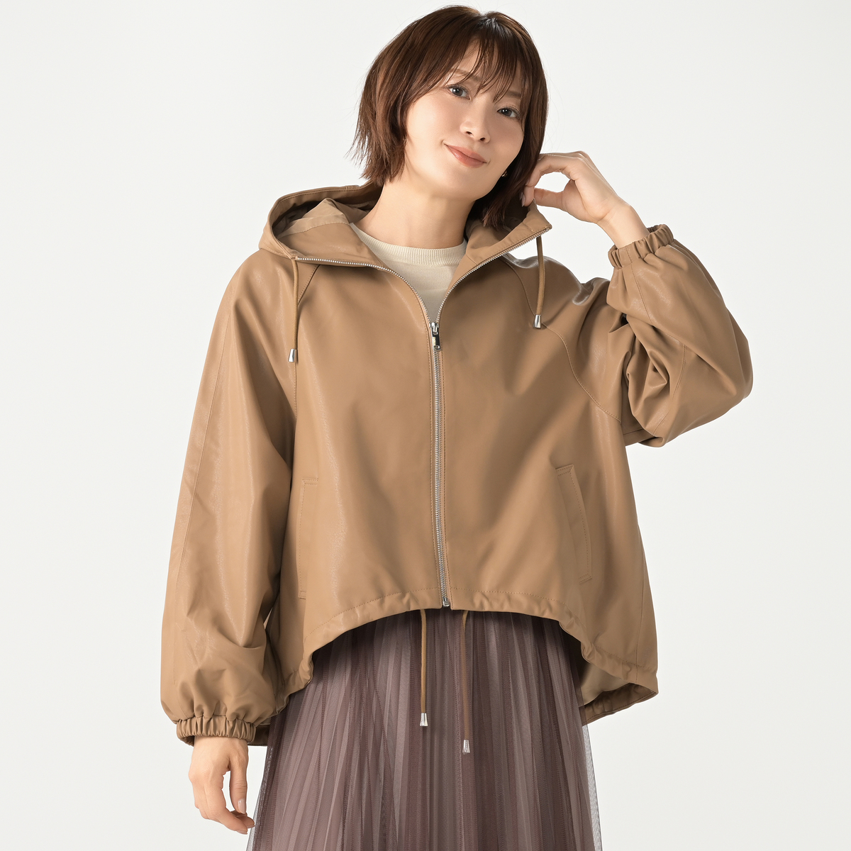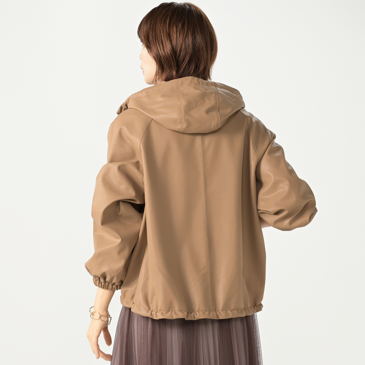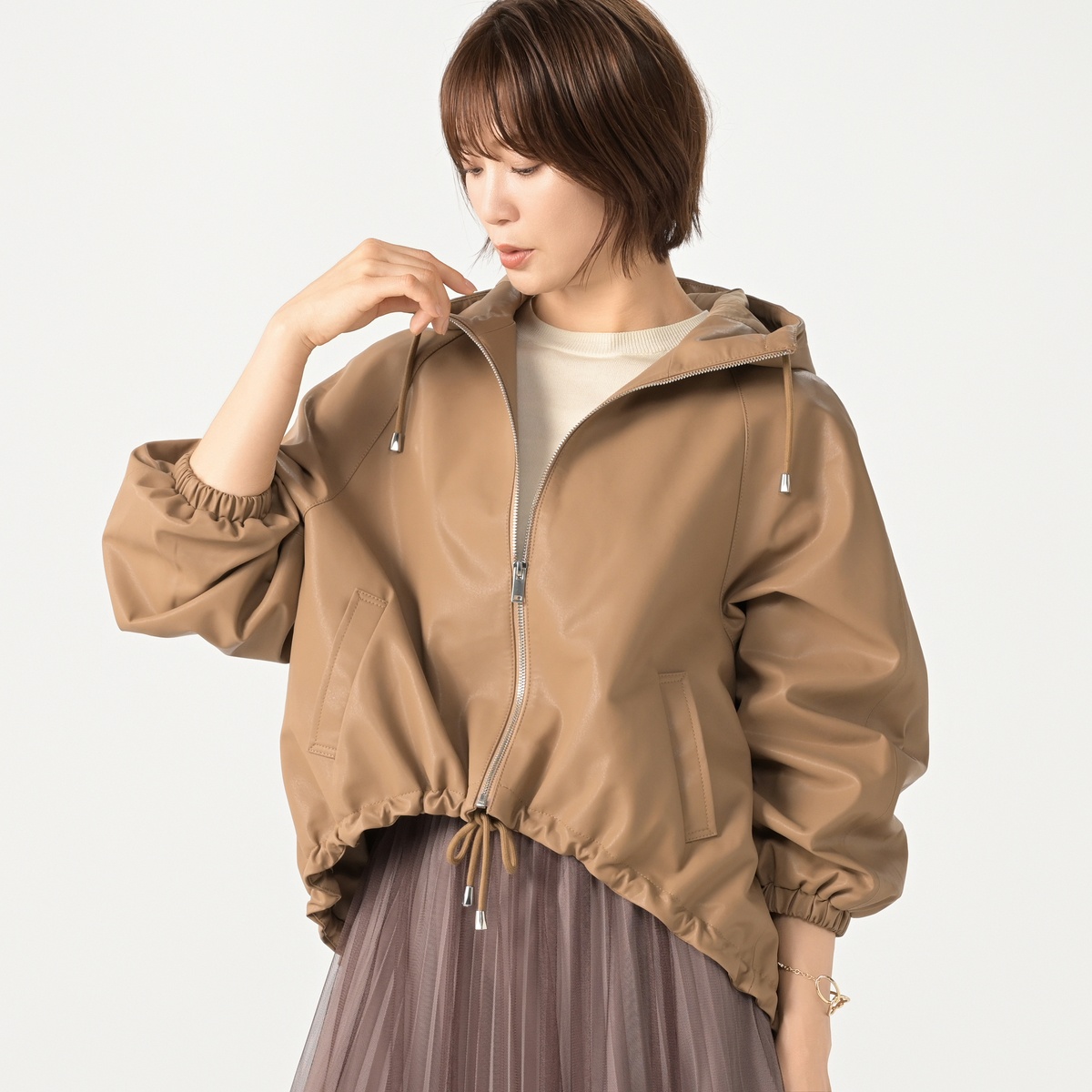 大きめの衿から続くフードが特徴的なブルゾン。前後で丈に差をつけたシルエットが、動きのある表情を生み出します