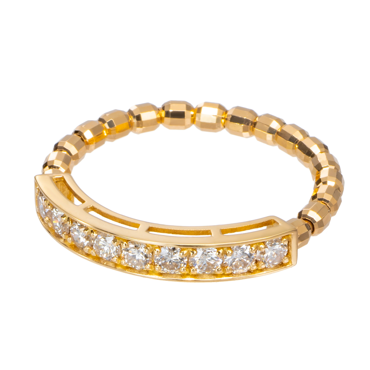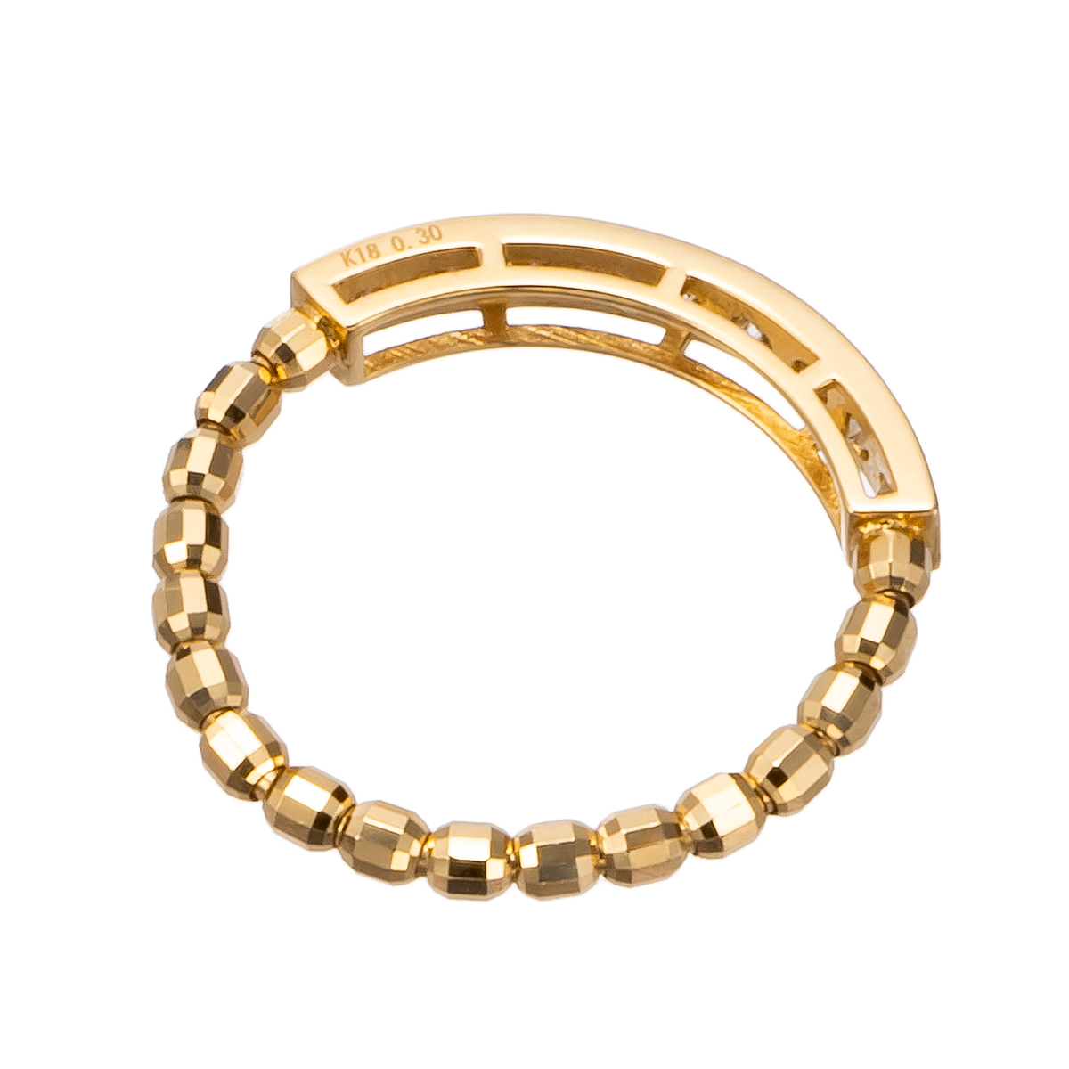 18Kイエローゴールドの輝きと9石のダイヤモンドが織り成す、シンプルな1文字デザインリングです。心地よくフィットするストレッチタイプで、8〜20号の指に対応するため、異なる指に着け替えたり気分やシーンに合わせてお手持ちのリングとの重ね着けも楽しめます