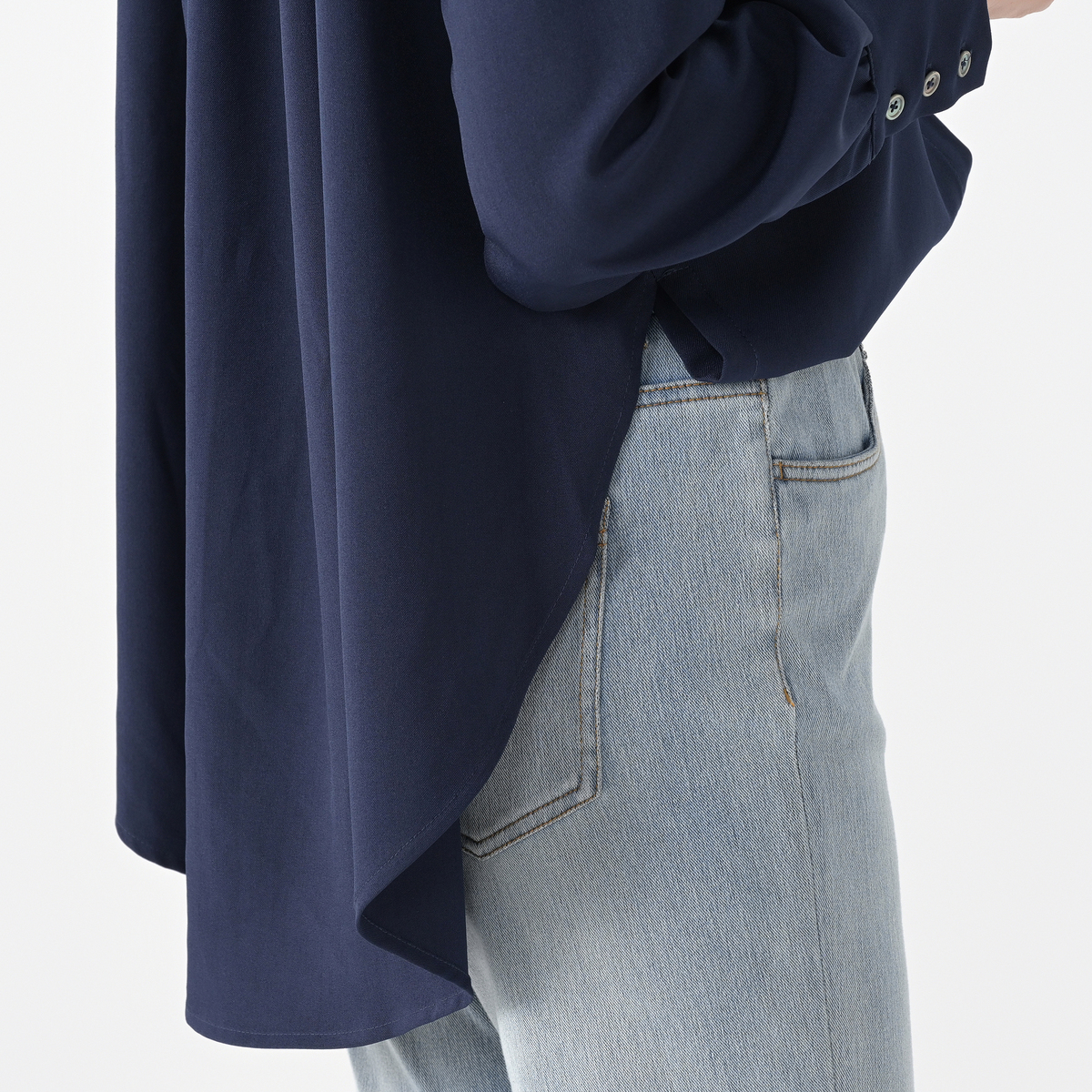 糸の交錯が少なく、厚厚地にしては柔らかなストレッチツイル素材を使用し、生地の特性上、シワが目立ちにくくお手入れも簡単です。カジュアルからオフィスまで幅広く活躍し、テクニックいらずでこなれ感のある着こなしをお楽しみいただけます