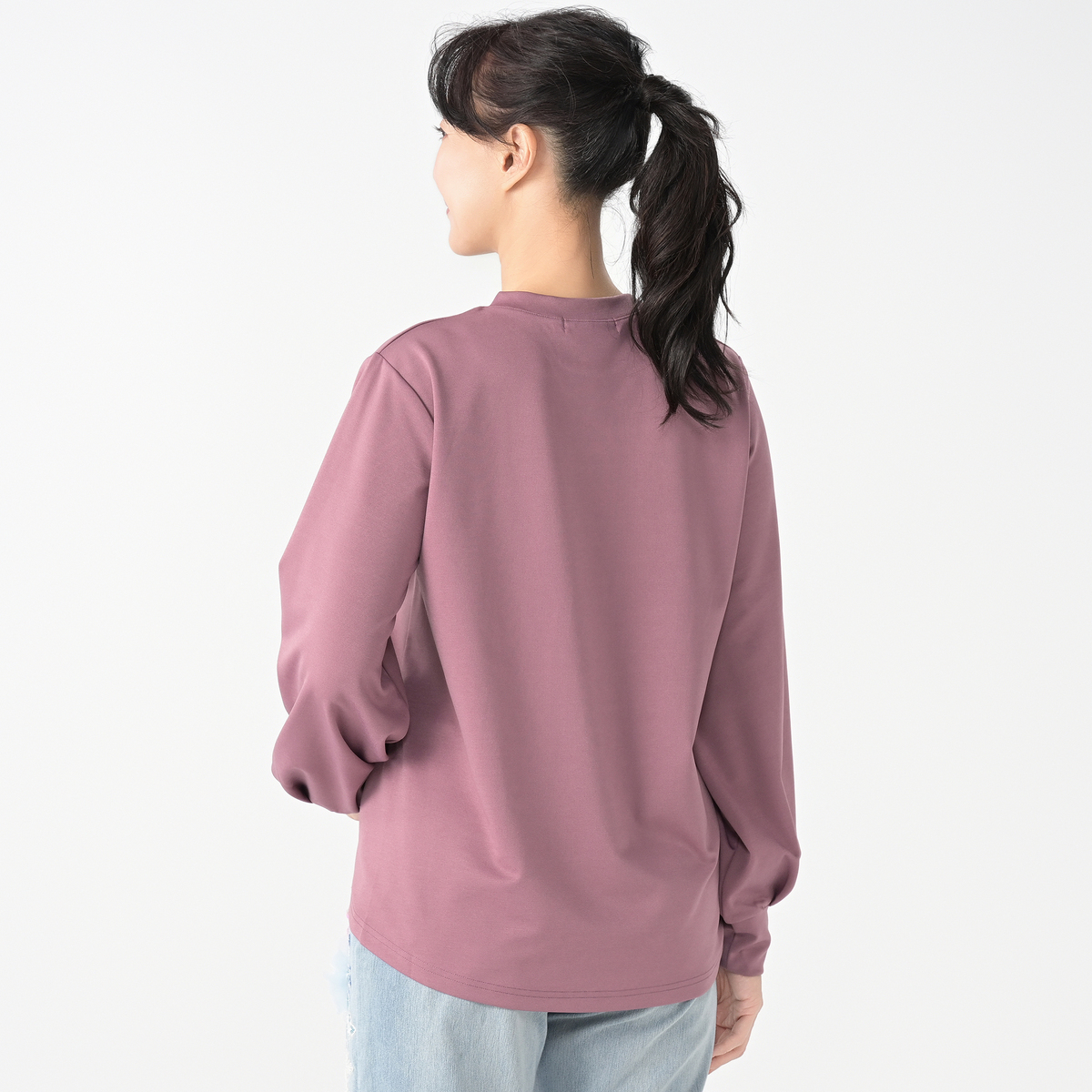 スムース素材を使用し、なめらかな肌ざわりとほどよい肉厚感を両立しています。適度なストレッチ性があり動きやすく、シワが目立ちにくく、ご家庭でのお手入れが簡単なのも嬉しいポイントです