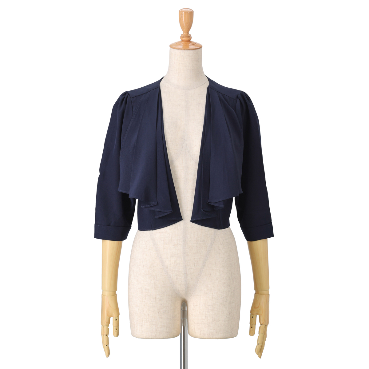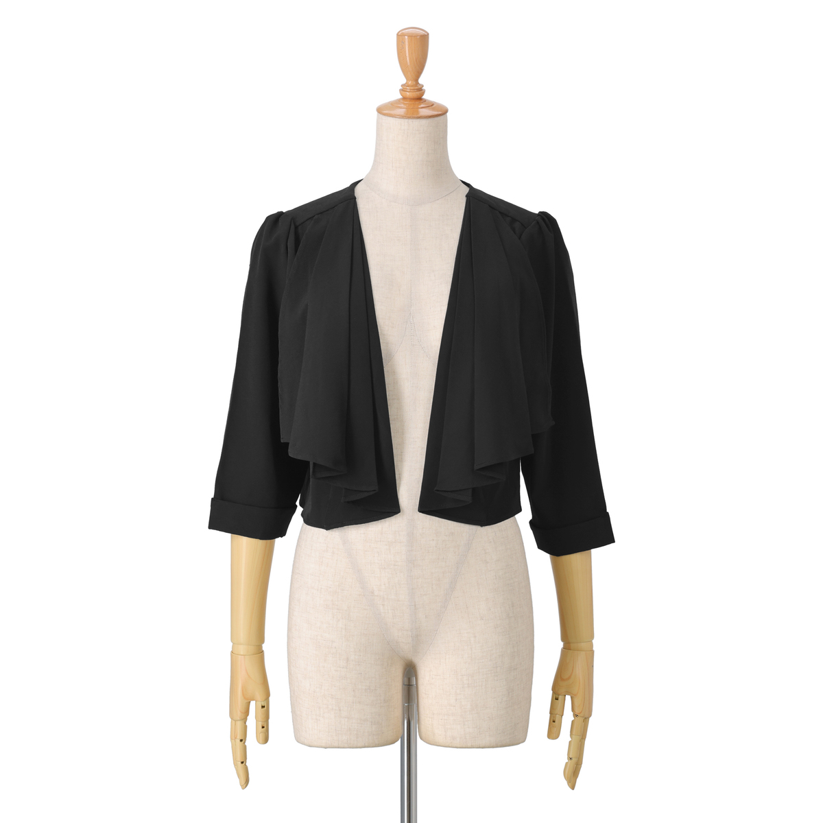 ワンピース本体はなめらかなスムース素材、ボレロ本体は表情豊かなストレッチシボ(布帛)素材を使用。どちらもほどよいストレッチ感があります。また、お手入れがしやすいのも魅力です