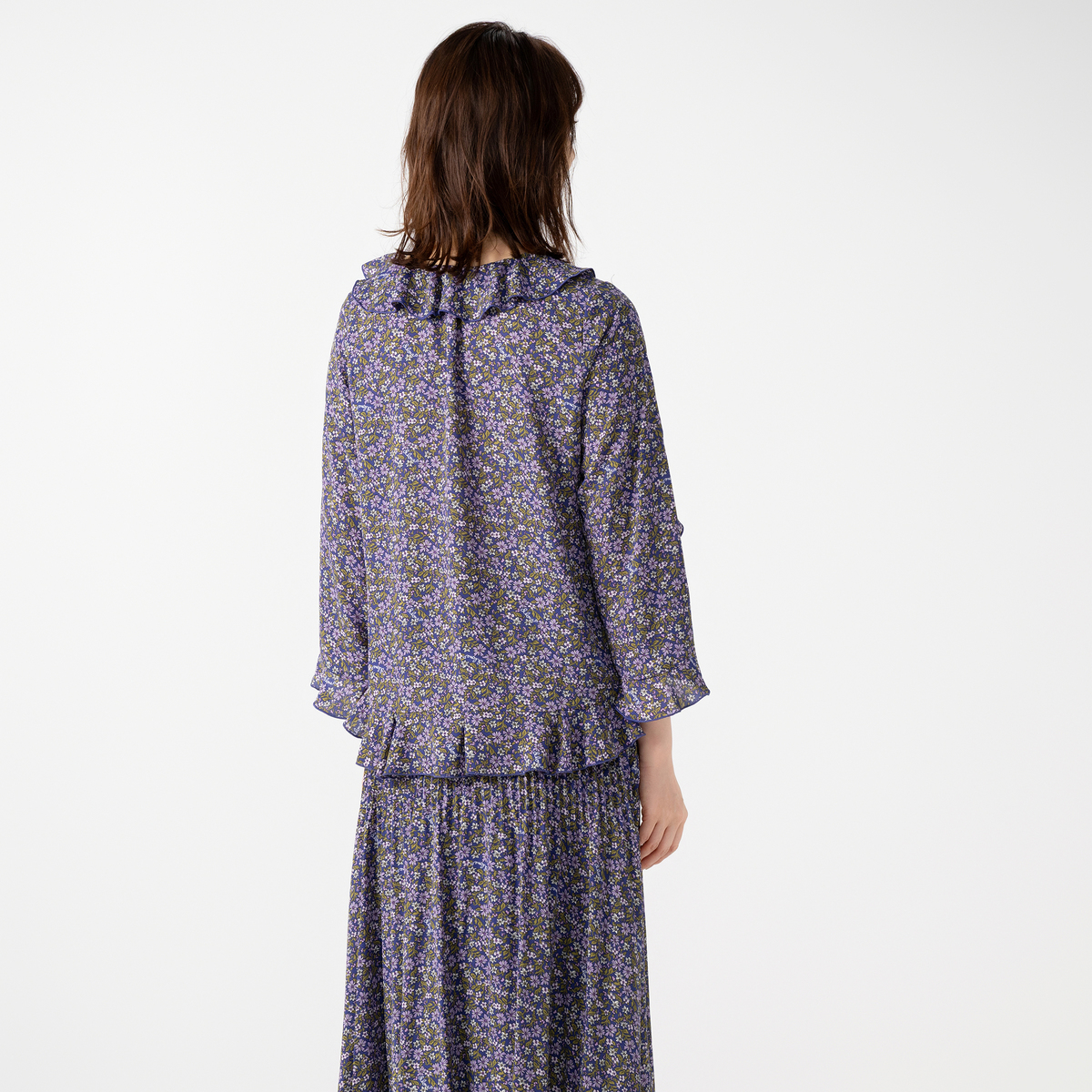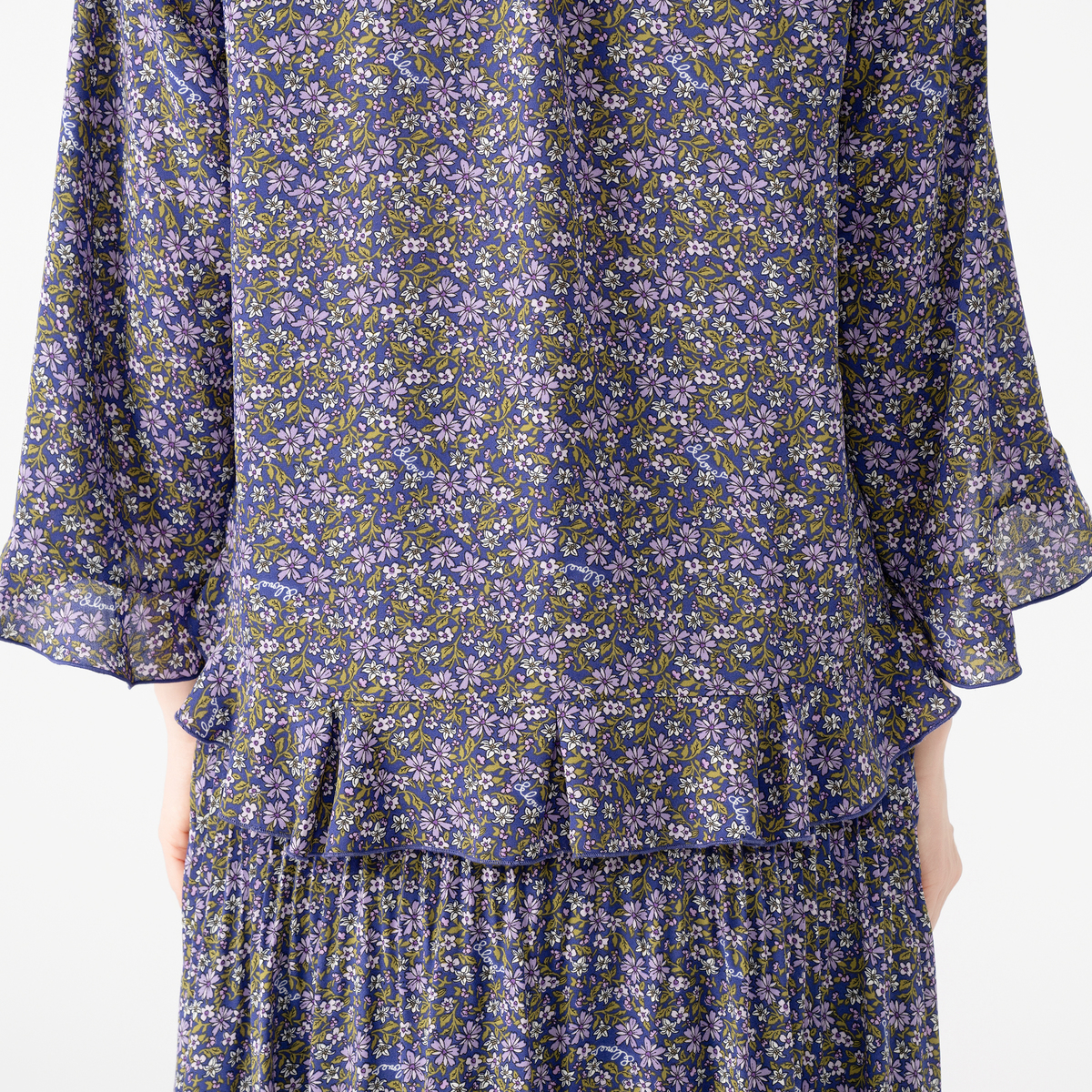 軽やかで柔らかな風合いが特徴の薄手のジョーゼット素材を使用。細かいシボがあり、マットな質感です。同素材のスカートとセットアップでも着用でき、コーディネートの幅が広がります