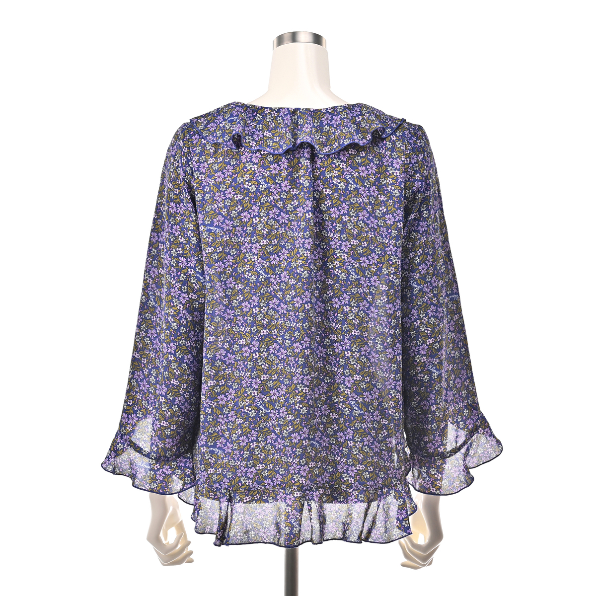 TSVでベージュを購入して気に入ったので、次にお安くなったタイミングでパープルフラワーを購入しました。腕を動かすと袖の裾のフリルが揺れてとてもエレガントな雰囲気です。ネイビーチェックも欲しかったのですが売り切れでした。同じシリーズで色柄違いで再販希望です。また購入しますので。 ベージュを購入した時は、他の方も書いていたようにフリルのメロー仕上げのところから何箇所も生地の繊維がはみ出ていましたが、自分でハサミで切って整えました。でも後でパープルフラワーを購入したら繊維が出ている所は殆どありませんでした。縫製する人の熟練度の違いなのか、縫製工場自体が違うのか分かりませんが、ショップチャンネルさんではどのロットを誰に売ったかのデータは持っいると思うので、次の生産に向けてフィードバックして改善してもらえたらありがたいです。