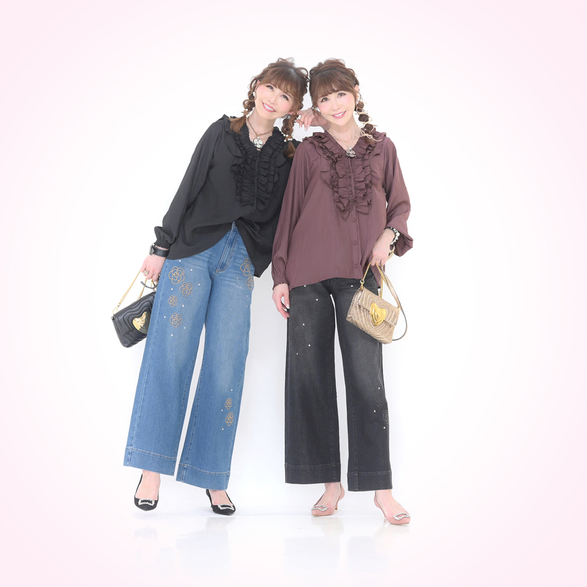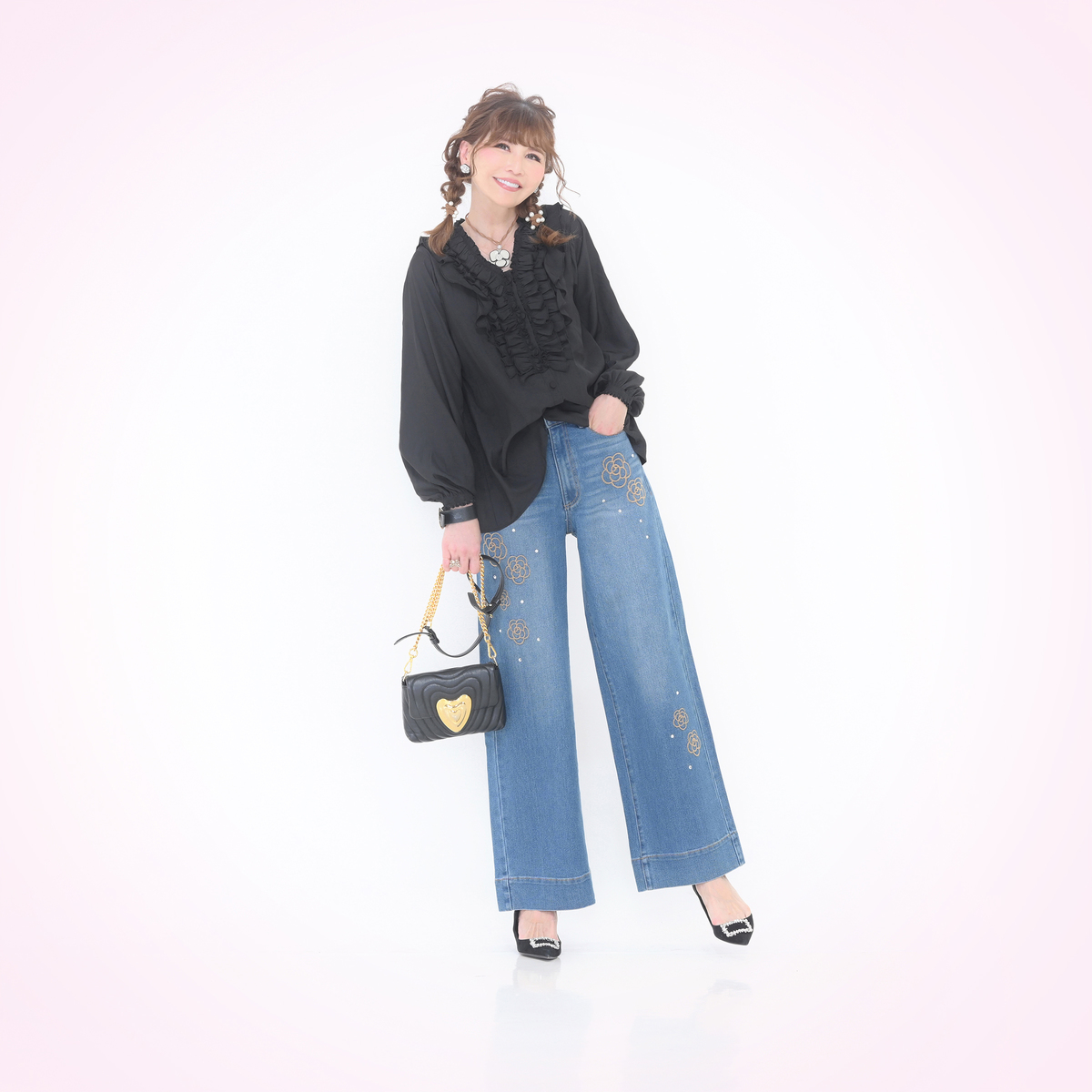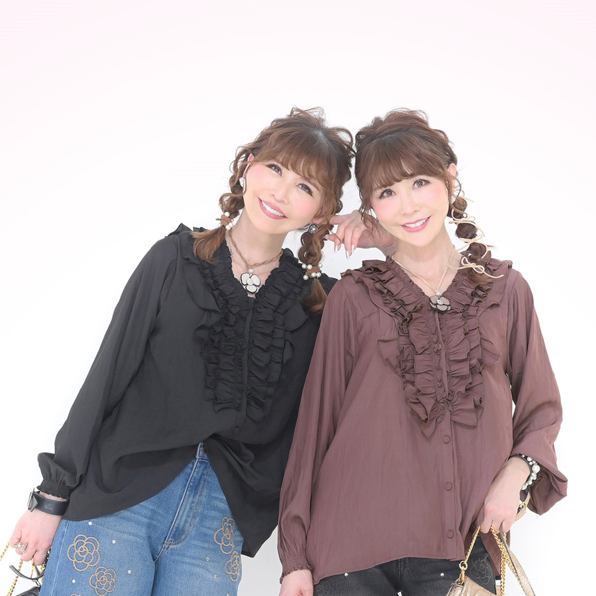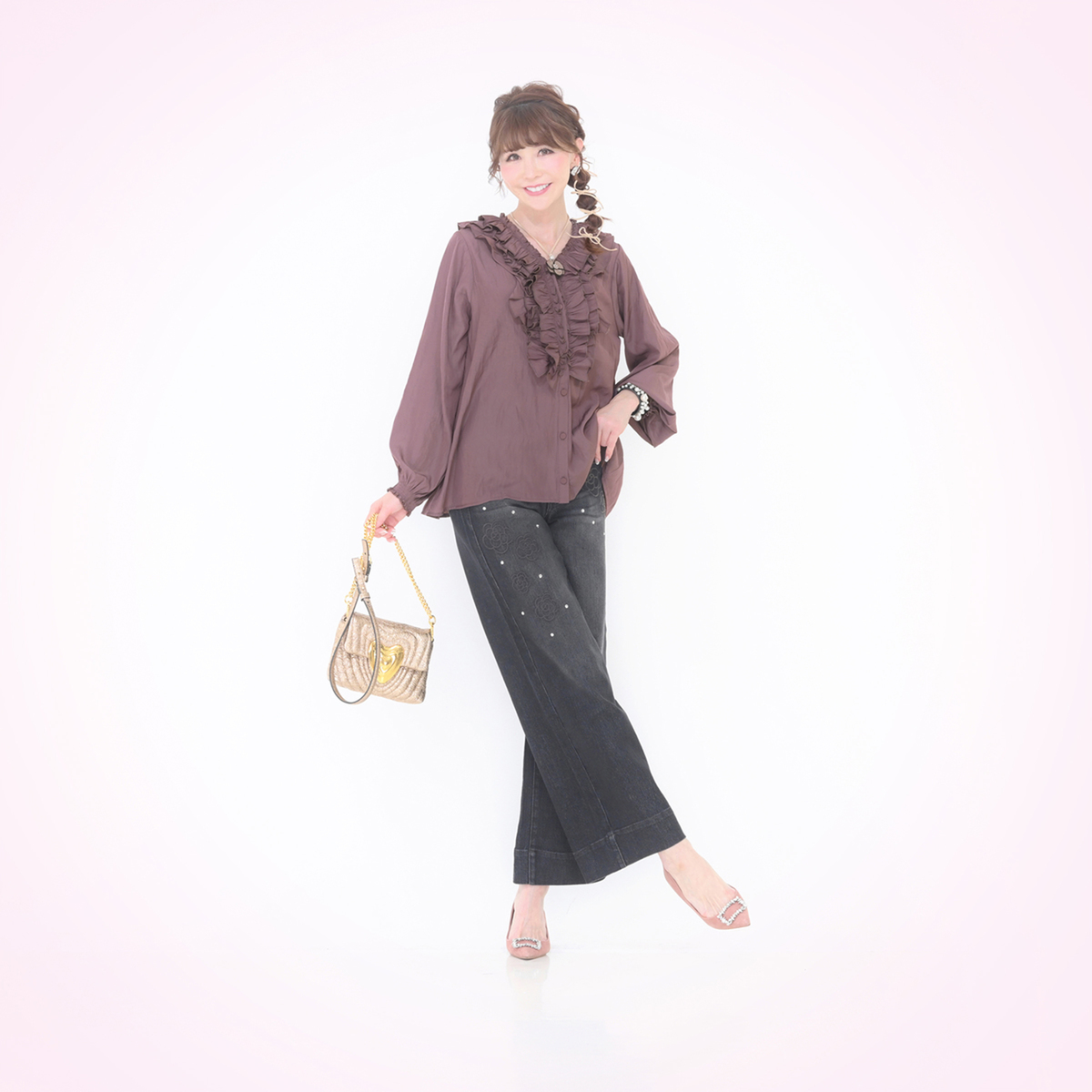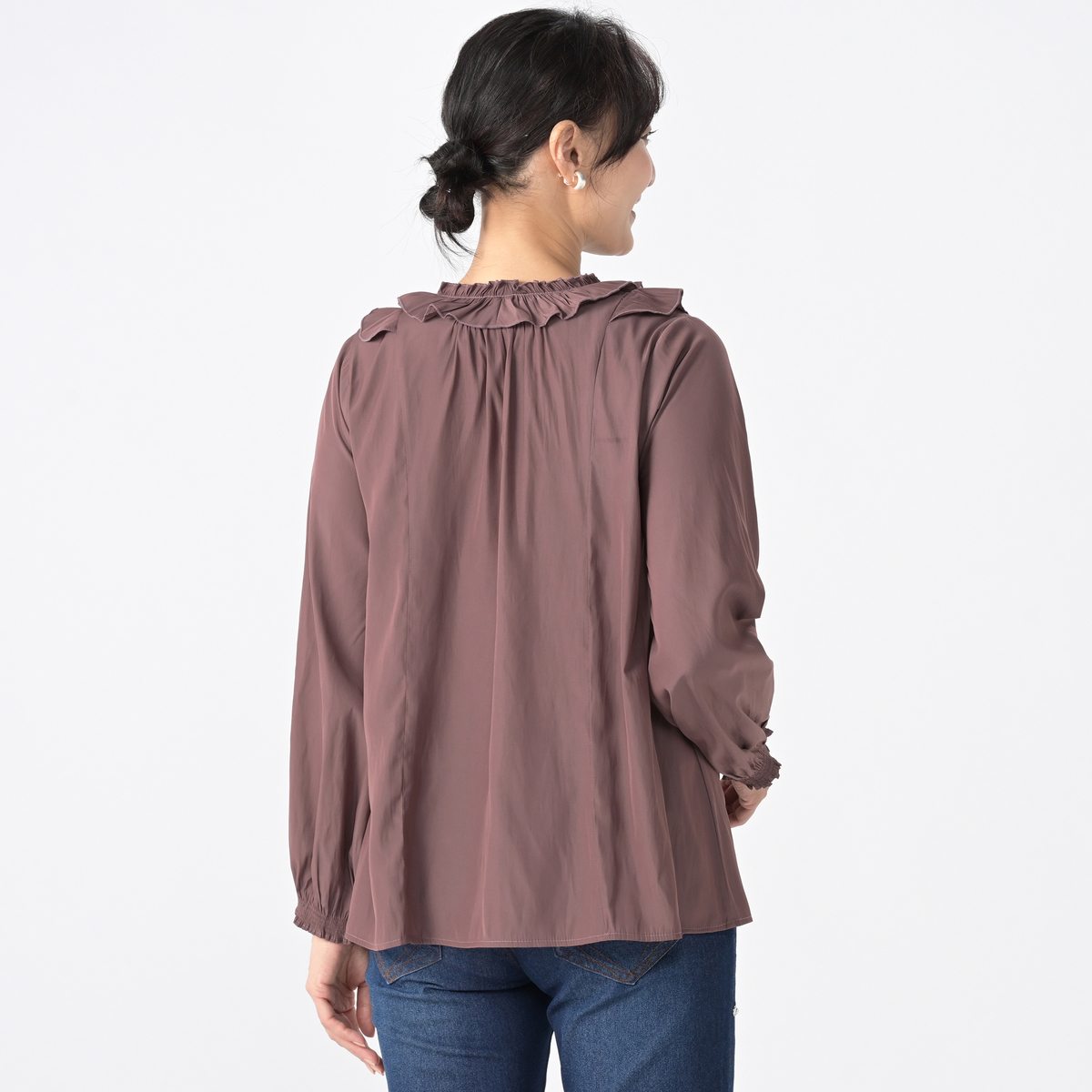3段のラッフルフリルをフロントにあしらったブラウス。コーディネートの主役になってくれる華やかなデザインです