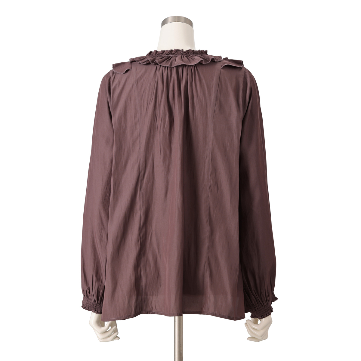 その名前の通りの、なんとも言えない良い色のブラウンです。身体にピッタリ付かず、ふんわりとAラインで風通しが良く、袖口にはゴムが付いているので、半袖着るべきか長袖着るべきか毎朝悩む今のような季節にはピッタリです。暑ければ袖をたくしあげればふんわり袖の半袖になるので。しかも全面シワ加工でシワシワなので、アイロンの心配がいらないのが最高です。無地で色も落ち着いているので、オフィスにも着ていけます。これは買って良かったです