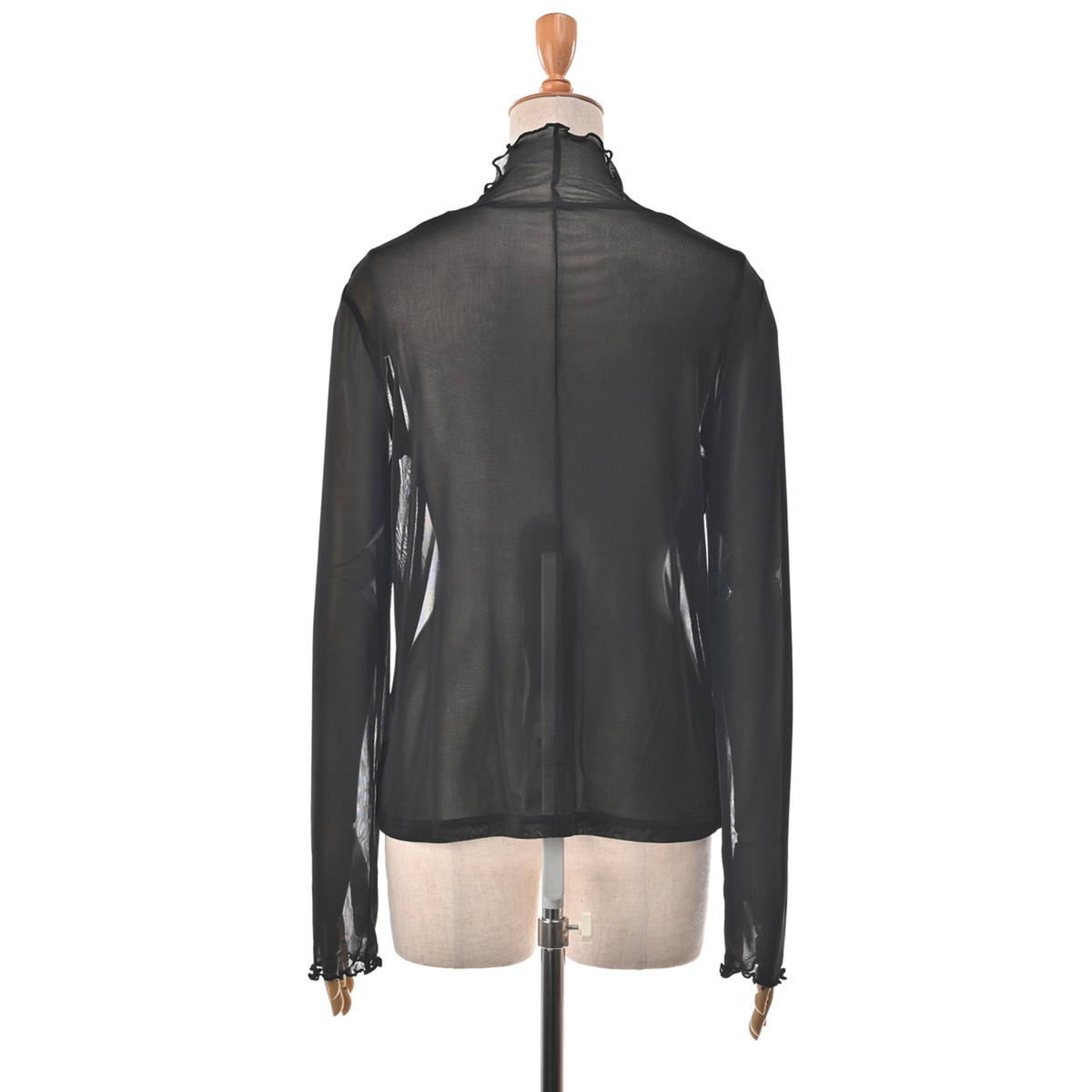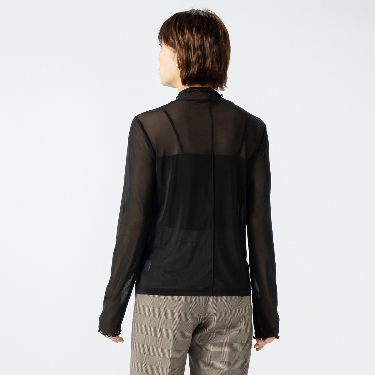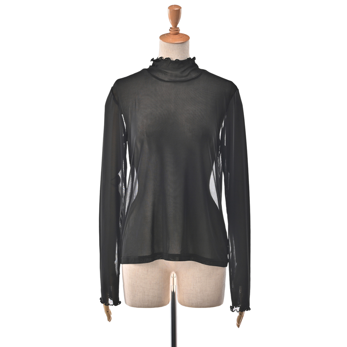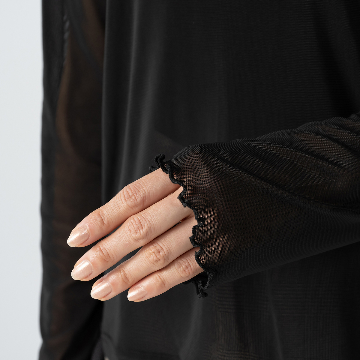 ジレはドレープ感のある艶やかな表面感の素材を使用。着用時しわになりにくいのもポイントです。プルオーバーはトレンドのシアーメッシュ素材を使用しています