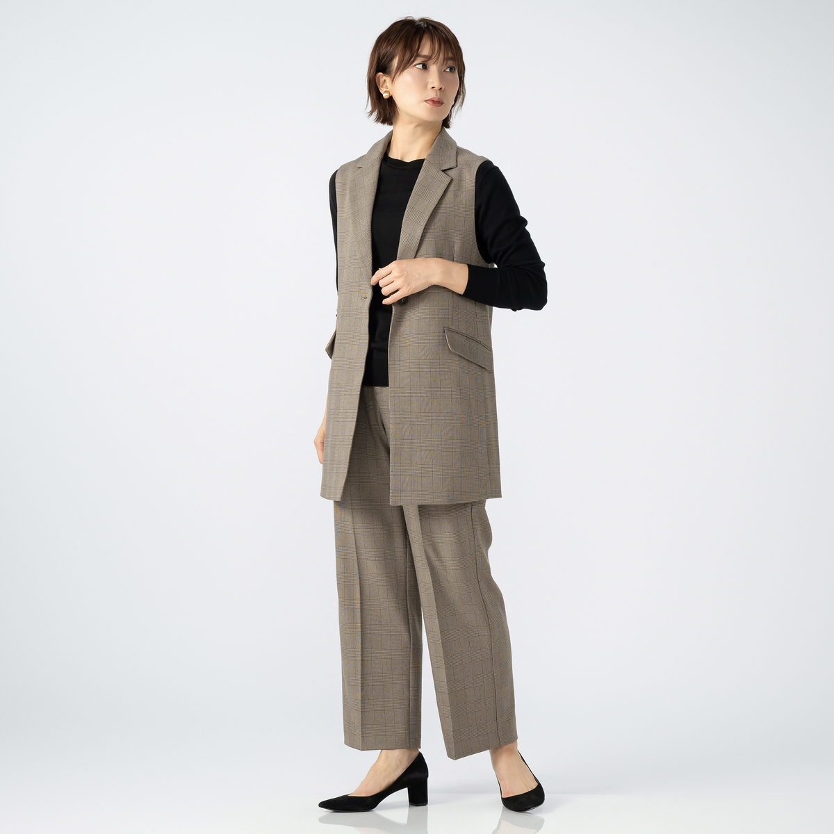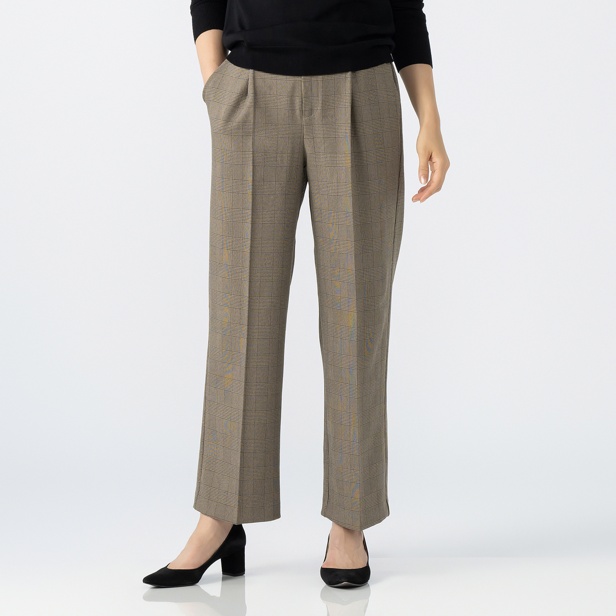 働く女性を応援するブランド「Beauty Fit」のストレートワイドパンツ。クラシックなグレンチェック柄で上品に着こなせます