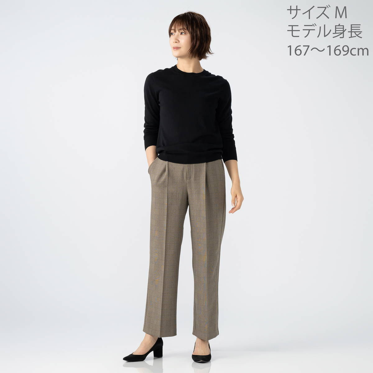 No. 746500 Beauty Fit グレンチェックストレートワイドパンツ
