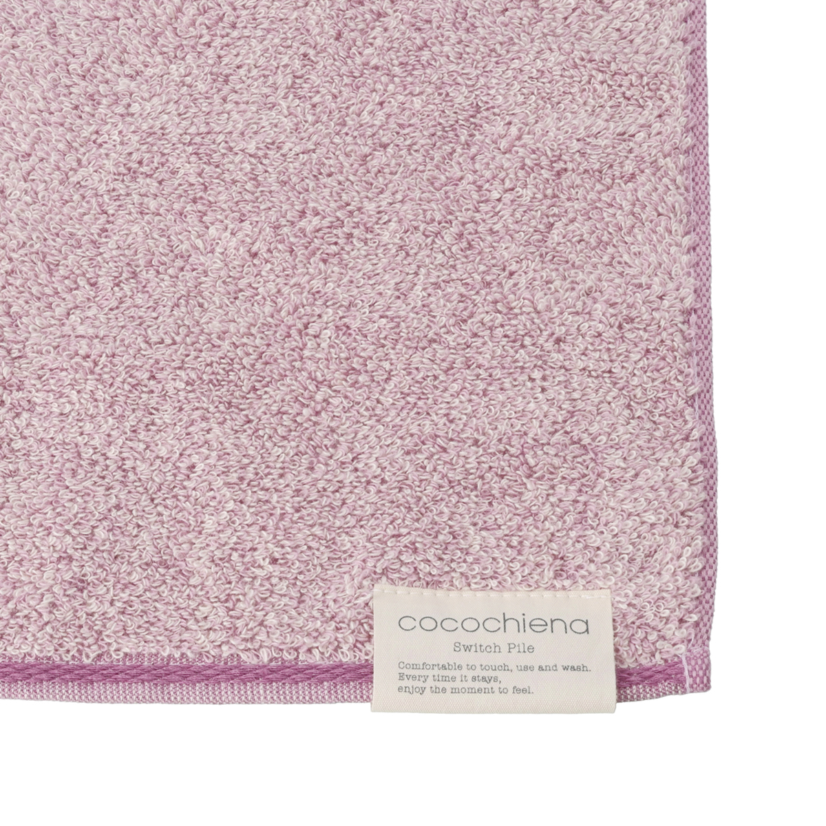 繰り返し洗っても、撚り方向の異なる2種類のパイル(スイッチパイル)が互いに反発して立ち上がり、ふっくらとした触り心地、使い心地の良さが長持ちするフェイスタオル。地の部分にマイクロファイバー繊維を使用することで、しっかり水を吸水します。抗菌防臭加工を施しています