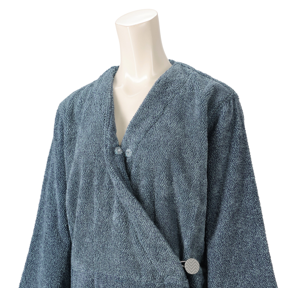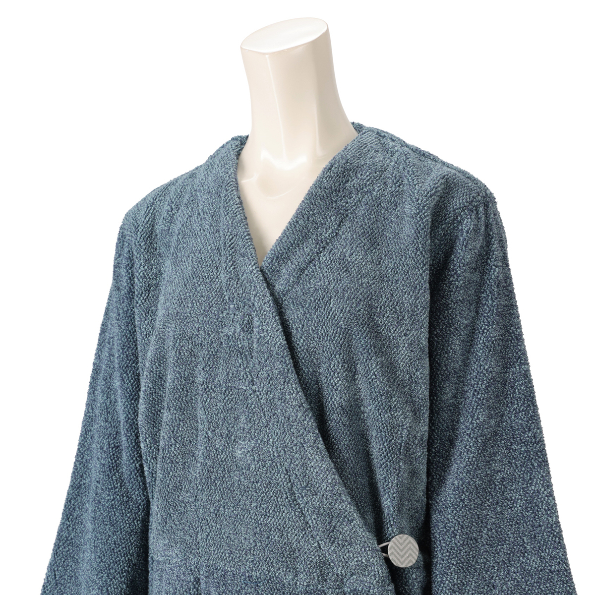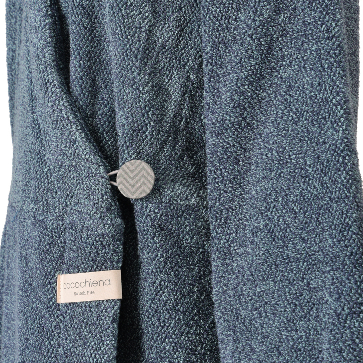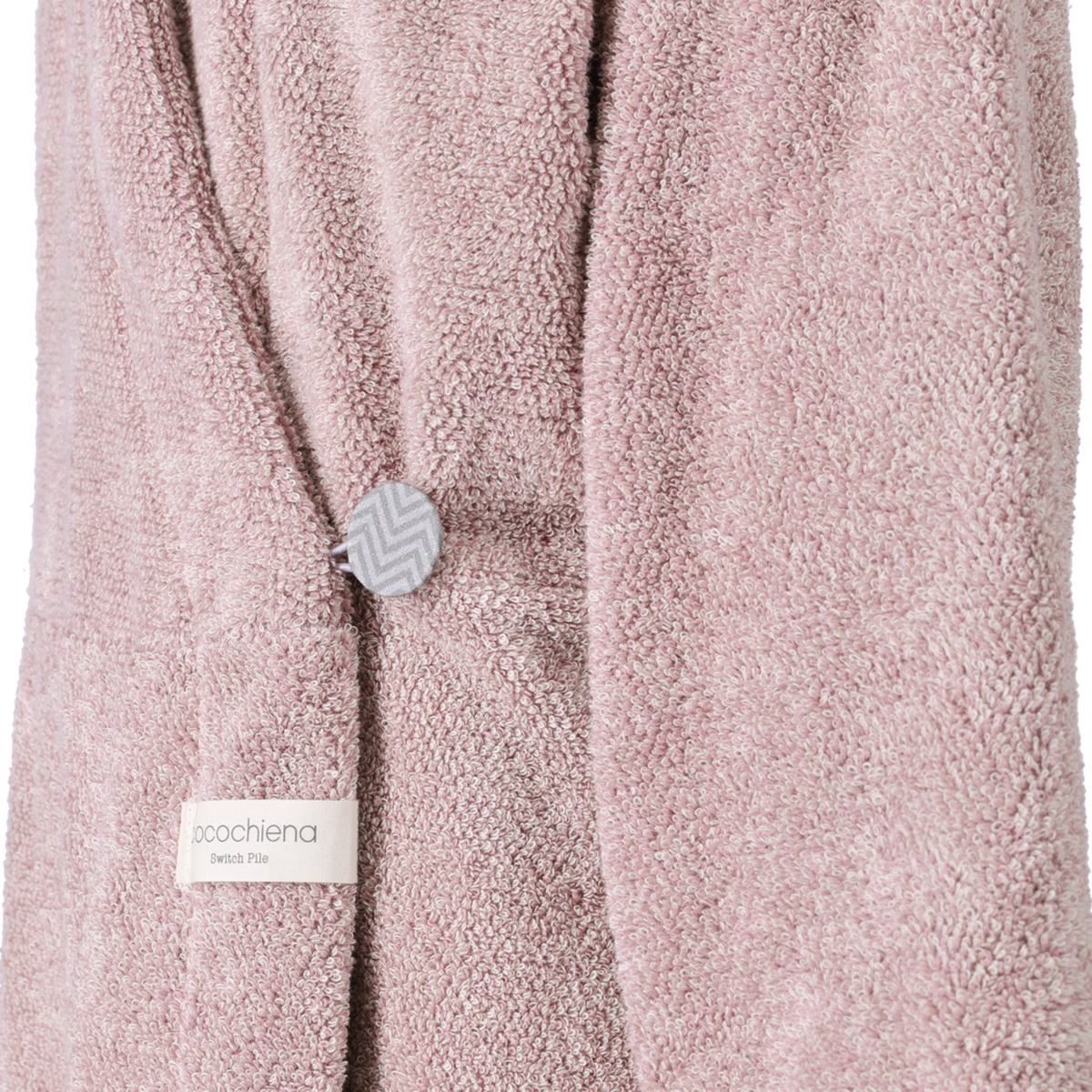 洗うたびにふっくら膨らむバスローブ。撚り方向の異なる2種類のパイル(スイッチパイル)が互いに反発し立ち上がることで、洗濯を重ねるたびにふっくら感が増し、心地よい肌当たりが長く楽しめます