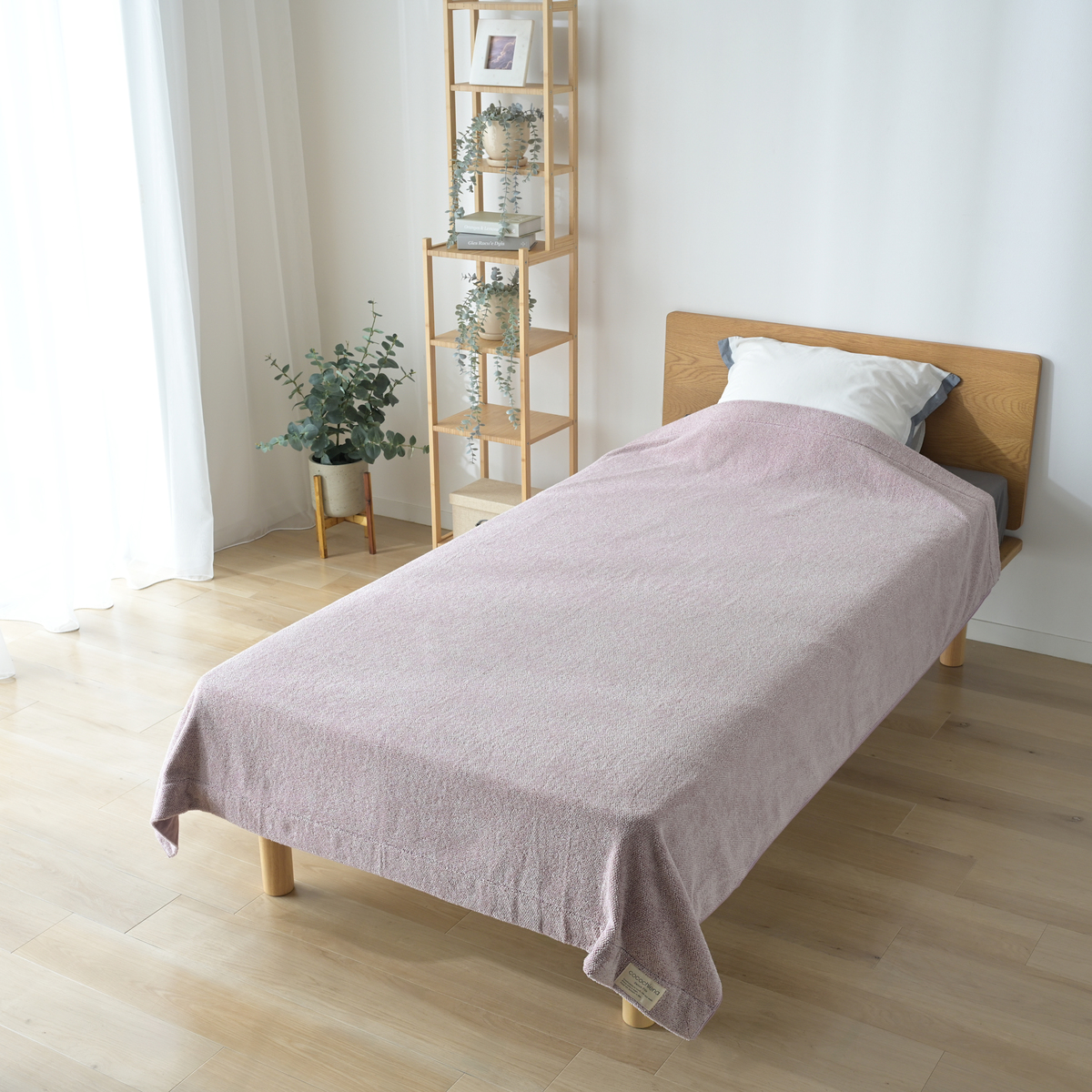 洗うたびにふっくら膨らむタオルケット。撚り方向の異なる2種類のパイル(スイッチパイル)が互いに反発し立ち上がることで、洗濯を重ねるたびにふっくら感が増し、心地よい肌当たりが長く楽しめます