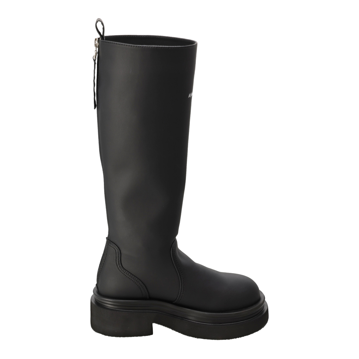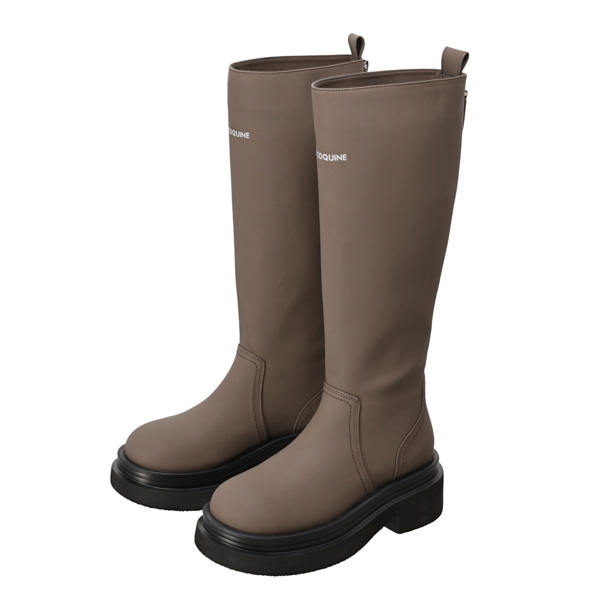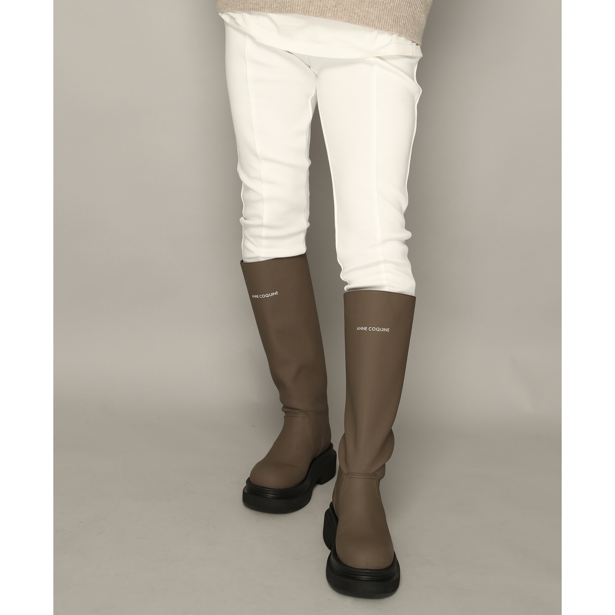 約35cm(Sサイズ約36cm)以上のロング丈で、脚をすらりと美しく見せるシルエットのロングブーツ。Anne Coquineのブランドロゴが、さりげない上質感を演出します