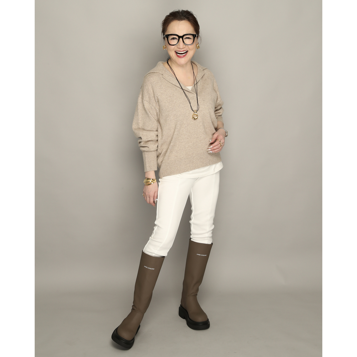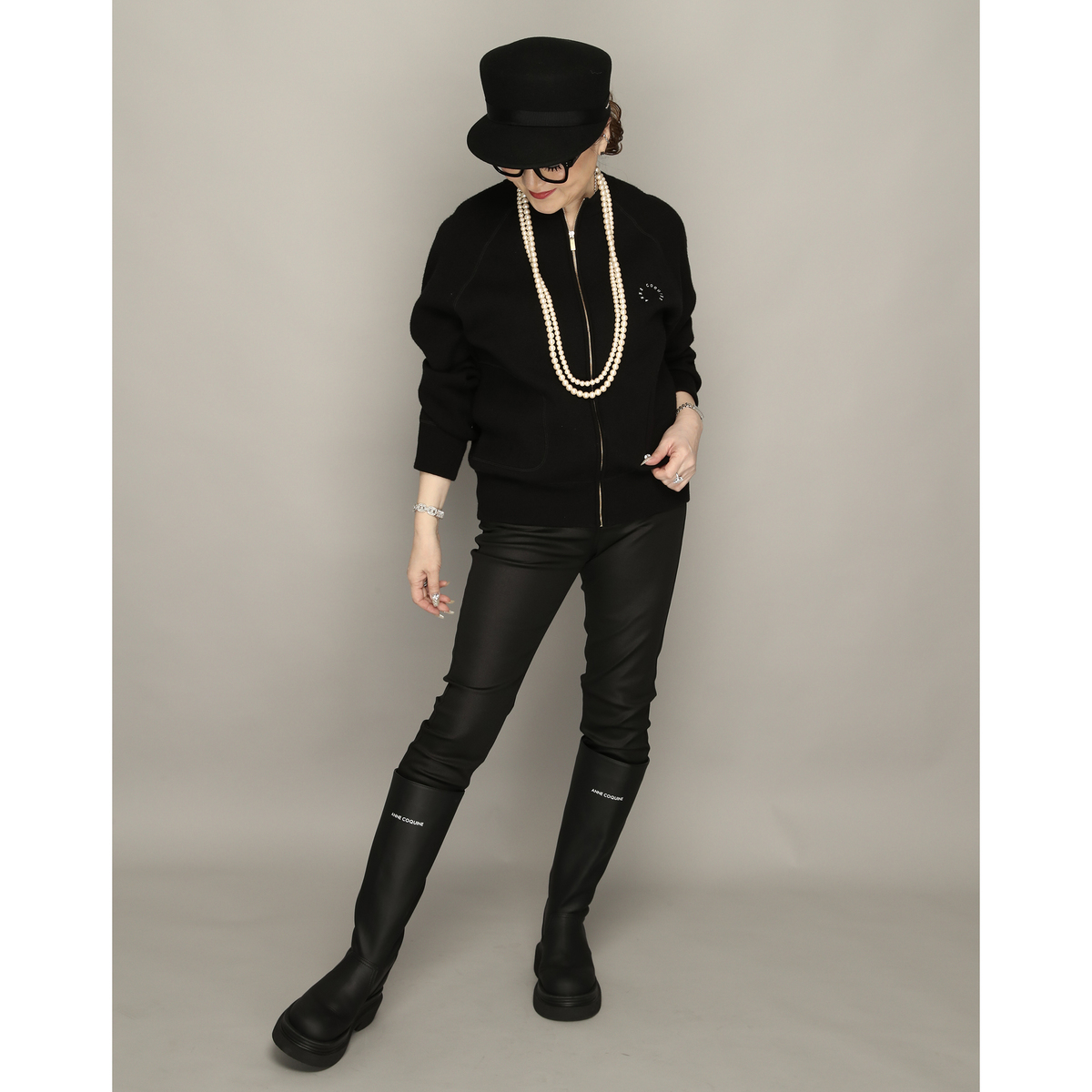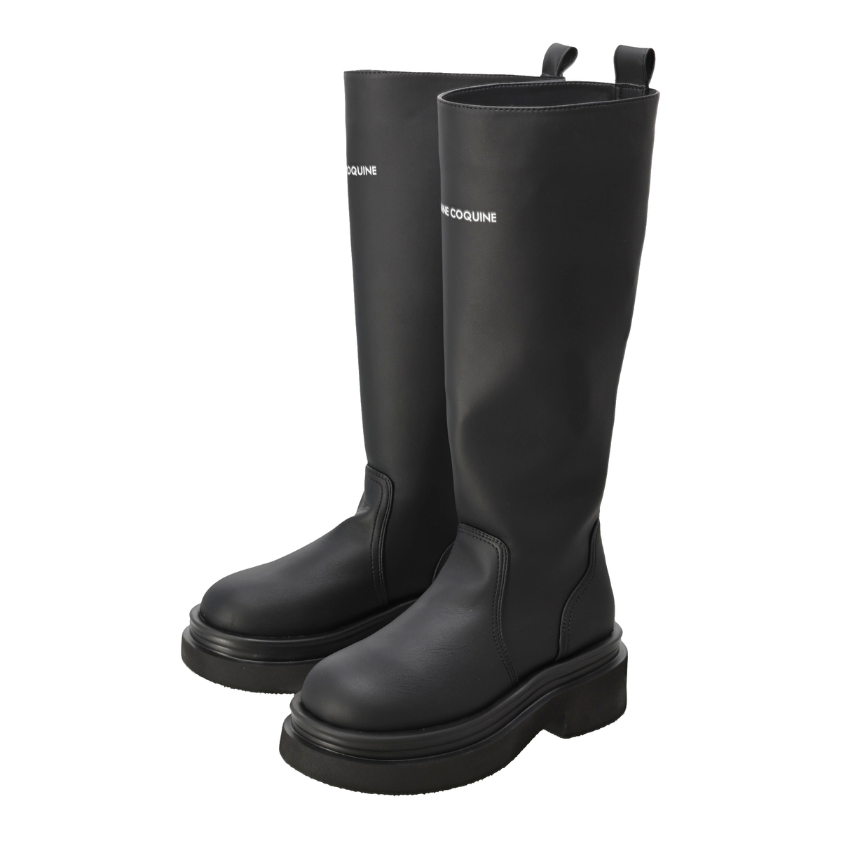約35cm(Sサイズ約36cm)以上のロング丈で、脚をすらりと美しく見せるシルエットのロングブーツ。Anne Coquineのブランドロゴが、さりげない上質感を演出します