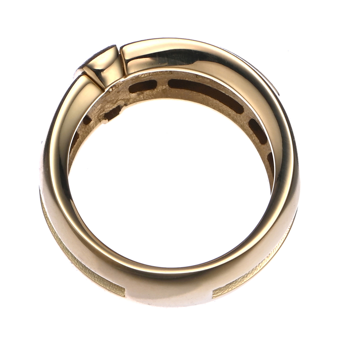 地金にはイエローゴールドを使用した、ボリューム感たっぷりのフォルム。透かしデザインを施しているので重くなりすぎず、肌なじみのよいフィット感でお使い頂けます