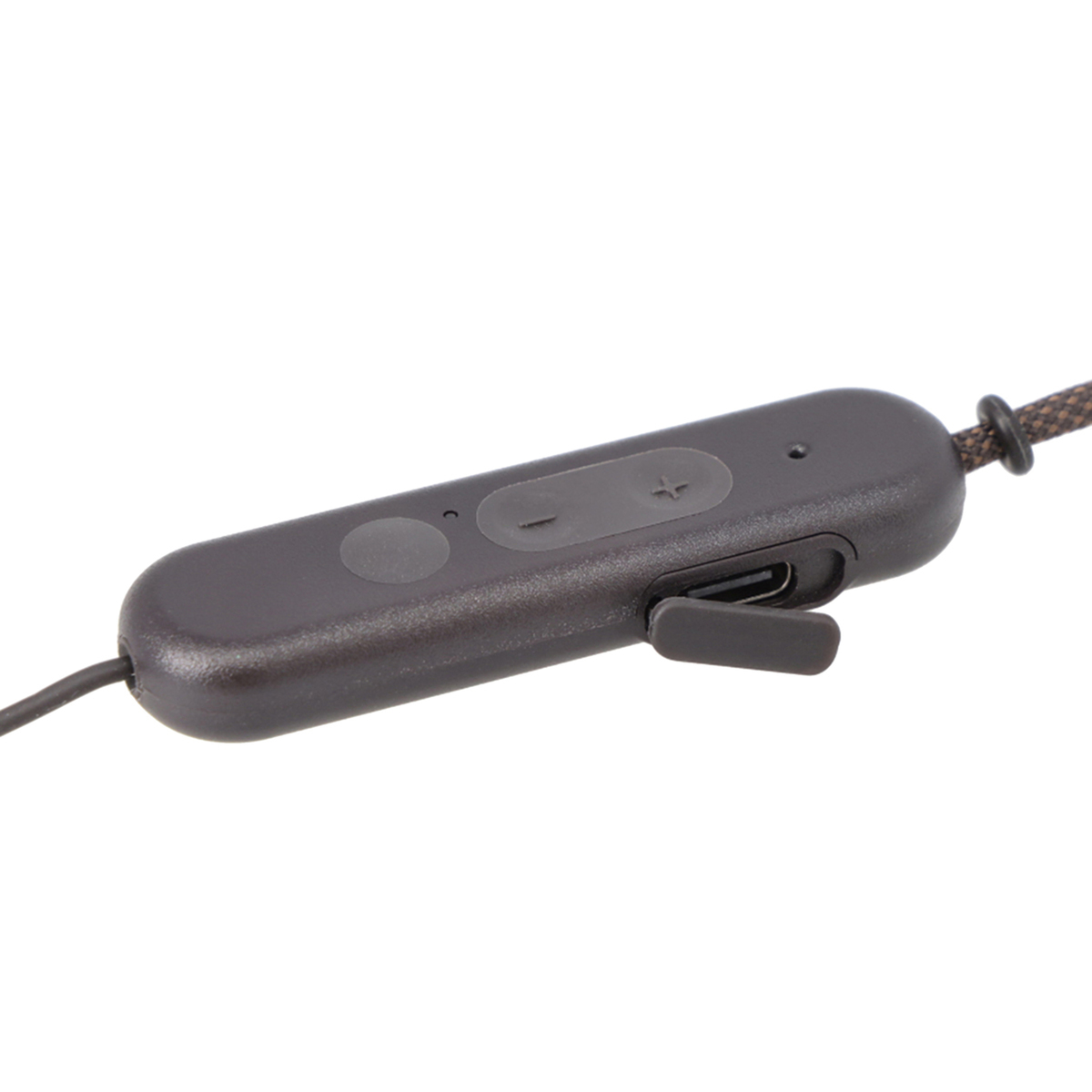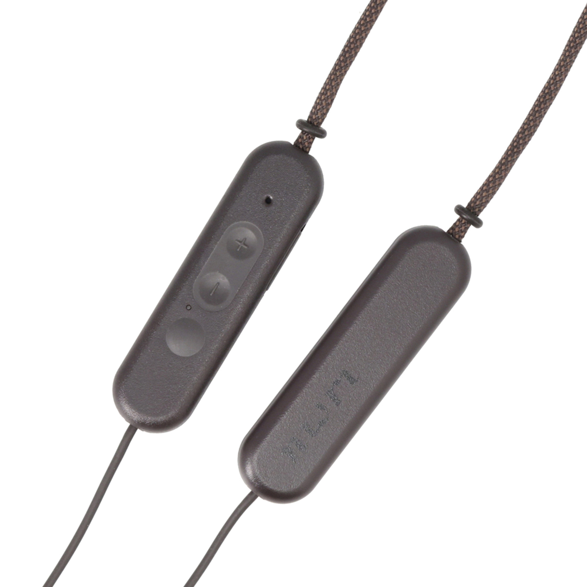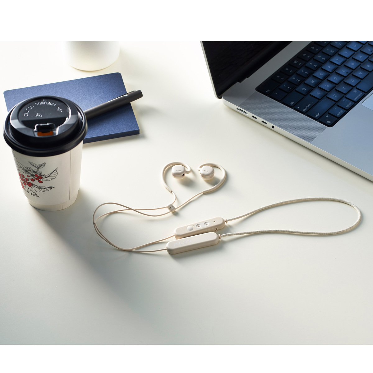 肌触りがソフトなナイロン素材を使用し、首周りにフィット。約23g(コード含み)と軽量で、耳にも負担がかかりにくいように考えられた形状です。充電時間約2時間で最大20時間音楽再生が可能(*1)。IPX5相当の防水仕様(*2)です