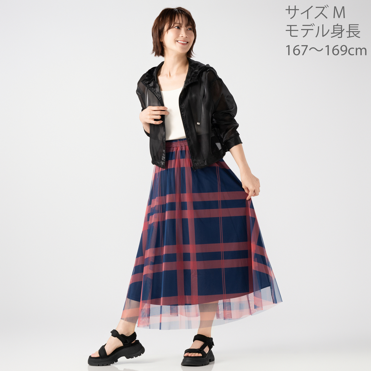 身丈を少し短くすることで目線が自然と上に上がり、視覚的な体型カバー効果をプラスします。袖は、ゆったりと生地を使うことで、気になる二の腕ラインをカバー。シワが目立たない素材なので持ち運びやすく、日よけや室内での冷房対策としても活躍してくれます
