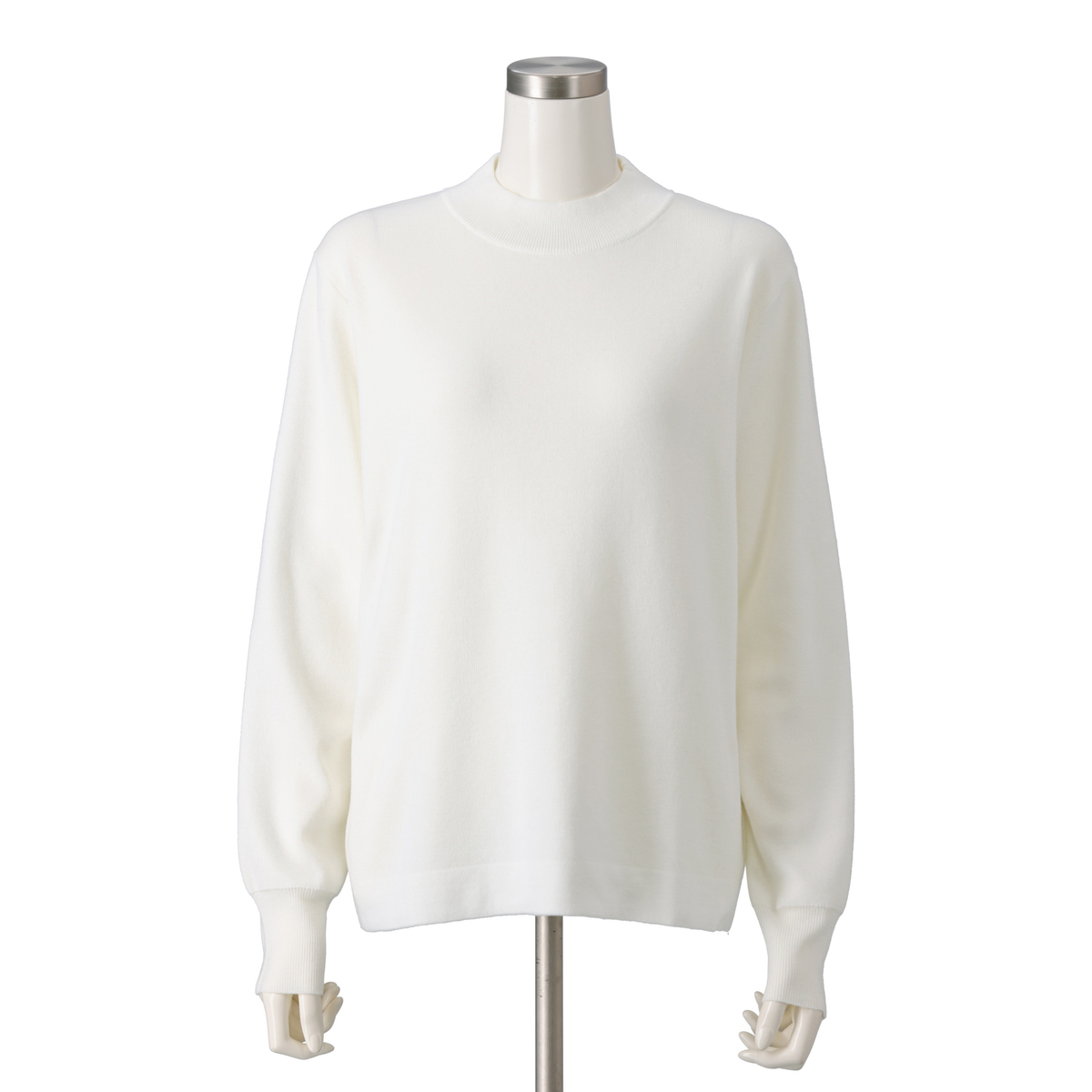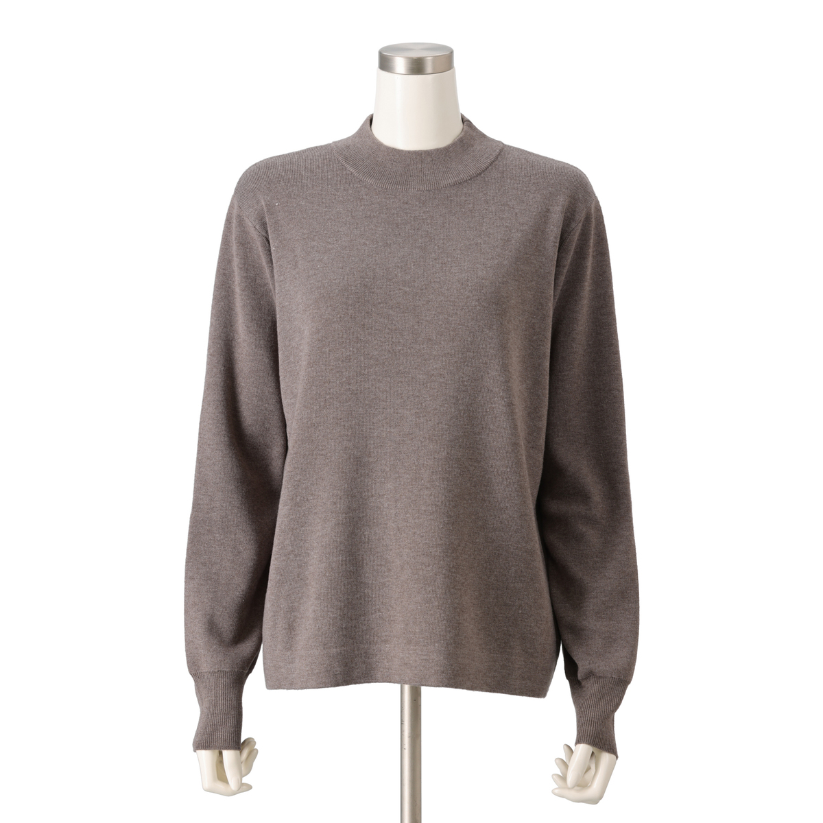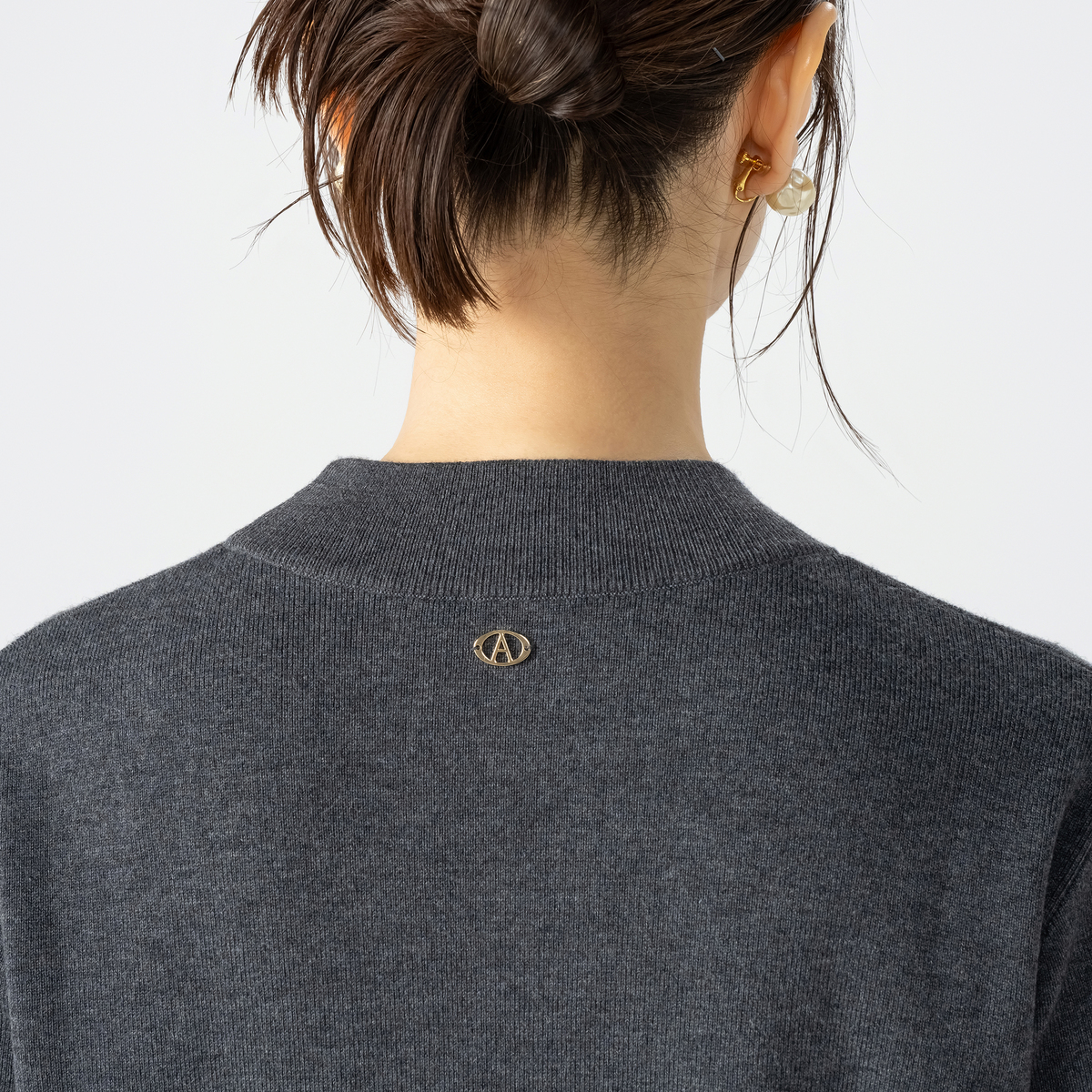 ウールミックスの暖かみのある糸を使用したベーシックなボトルネックプルオーバー。後ろ衿ぐり下にはオリジナルのAパーツを付け、オリジナリティをプラス。デニムやスカートと合わせて日常使いはもちろん、オフィスやお出かけなど幅広いスタイリングに活躍します