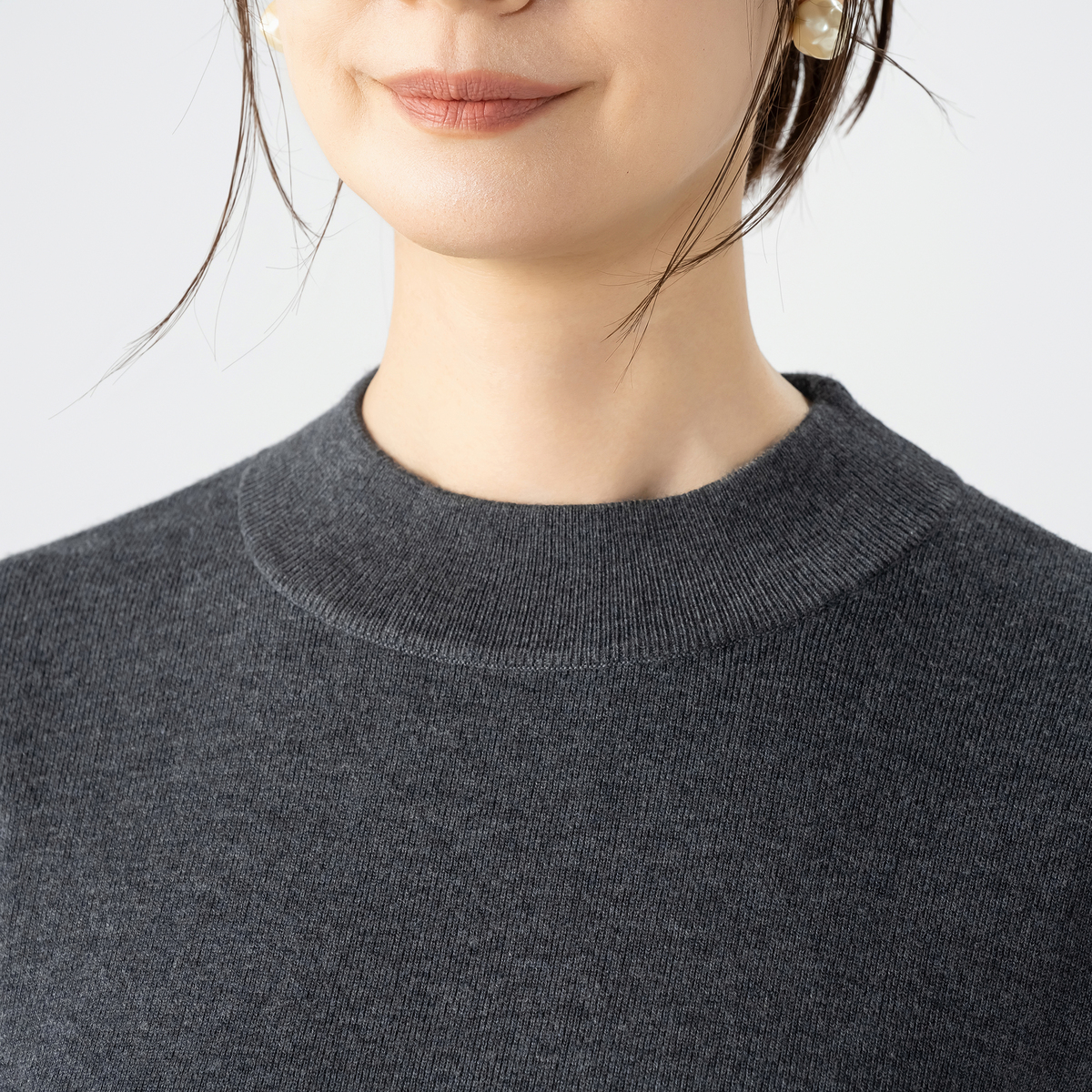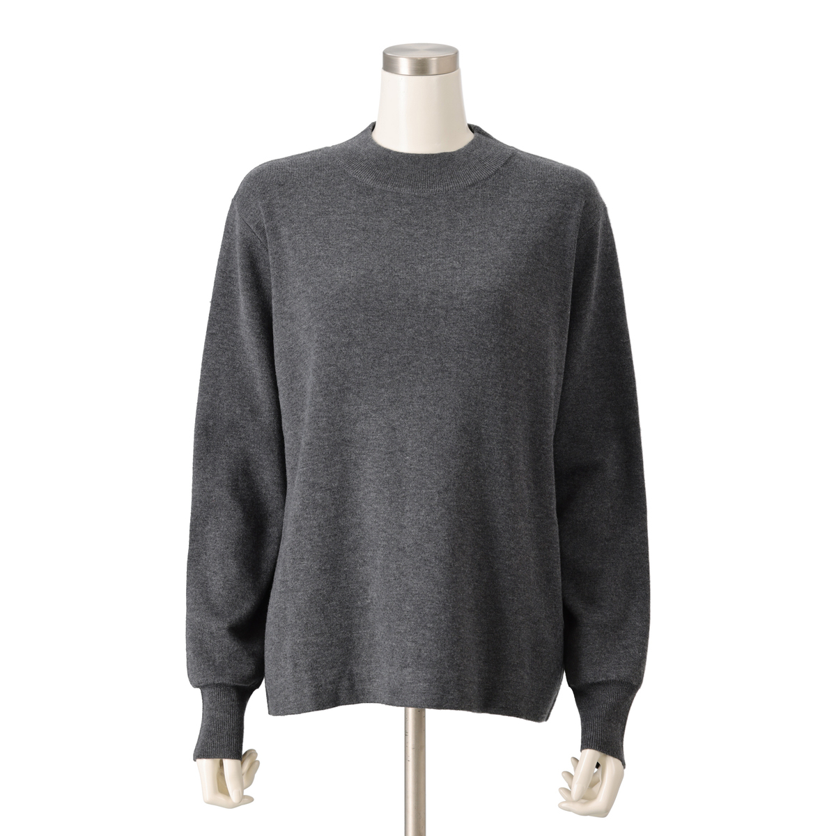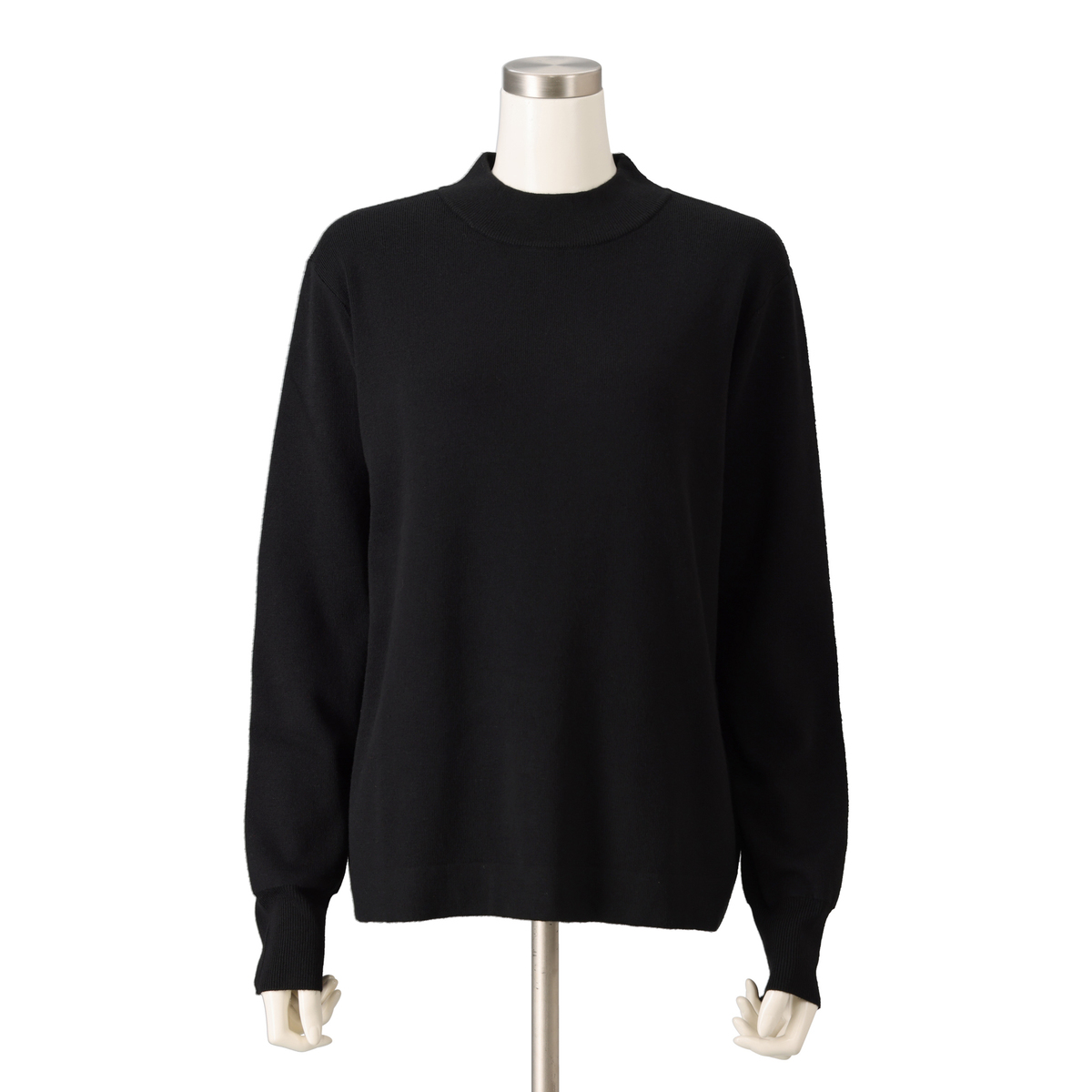 ウールミックスの暖かみのある糸を使用したベーシックなボトルネックプルオーバー。後ろ衿ぐり下にはオリジナルのAパーツを付け、オリジナリティをプラス。デニムやスカートと合わせて日常使いはもちろん、オフィスやお出かけなど幅広いスタイリングに活躍します