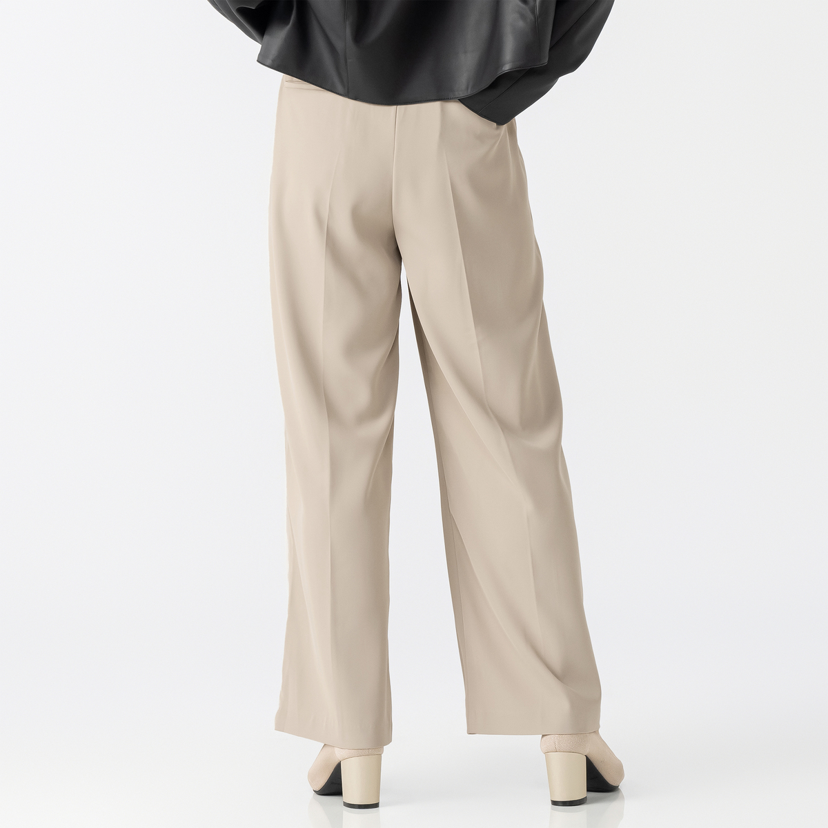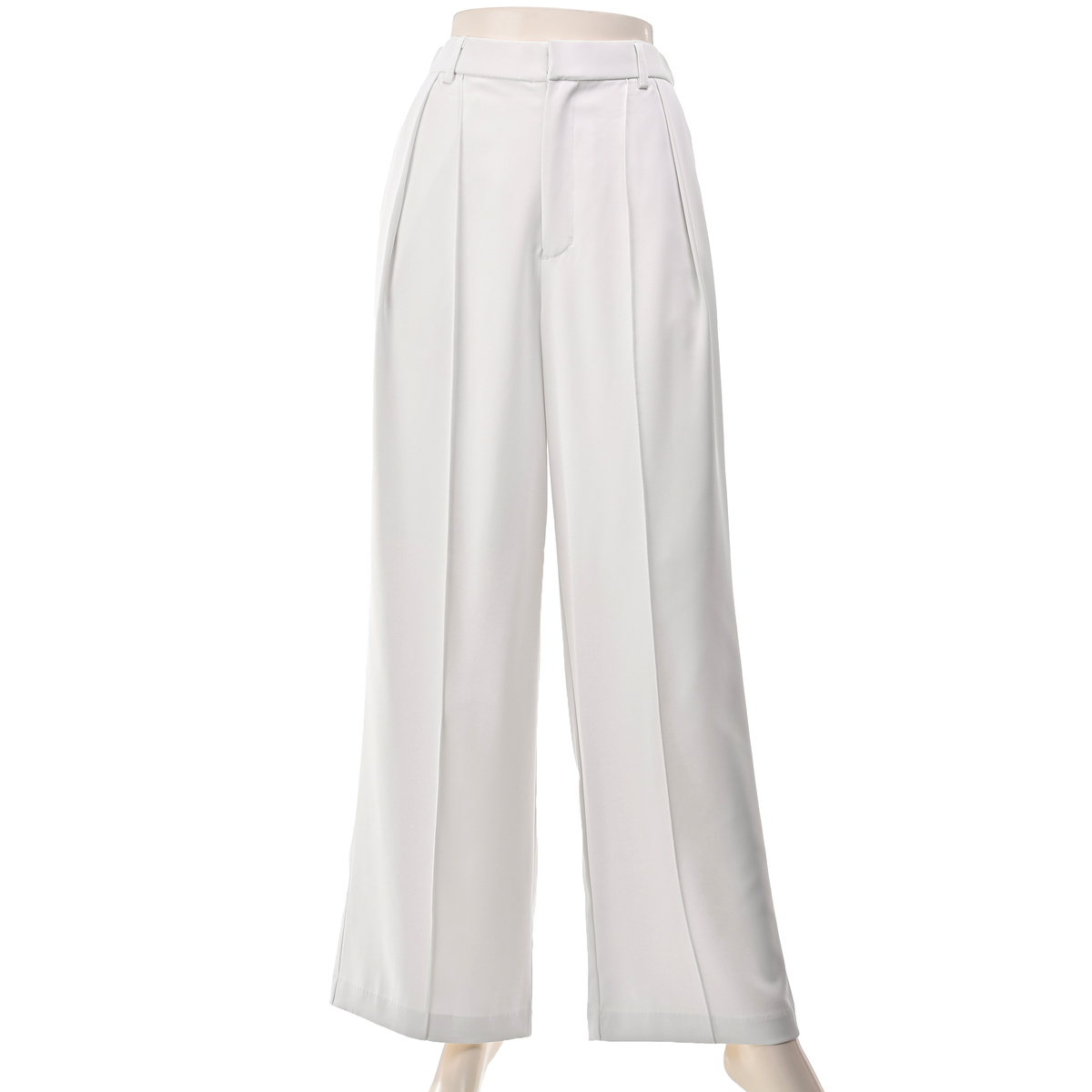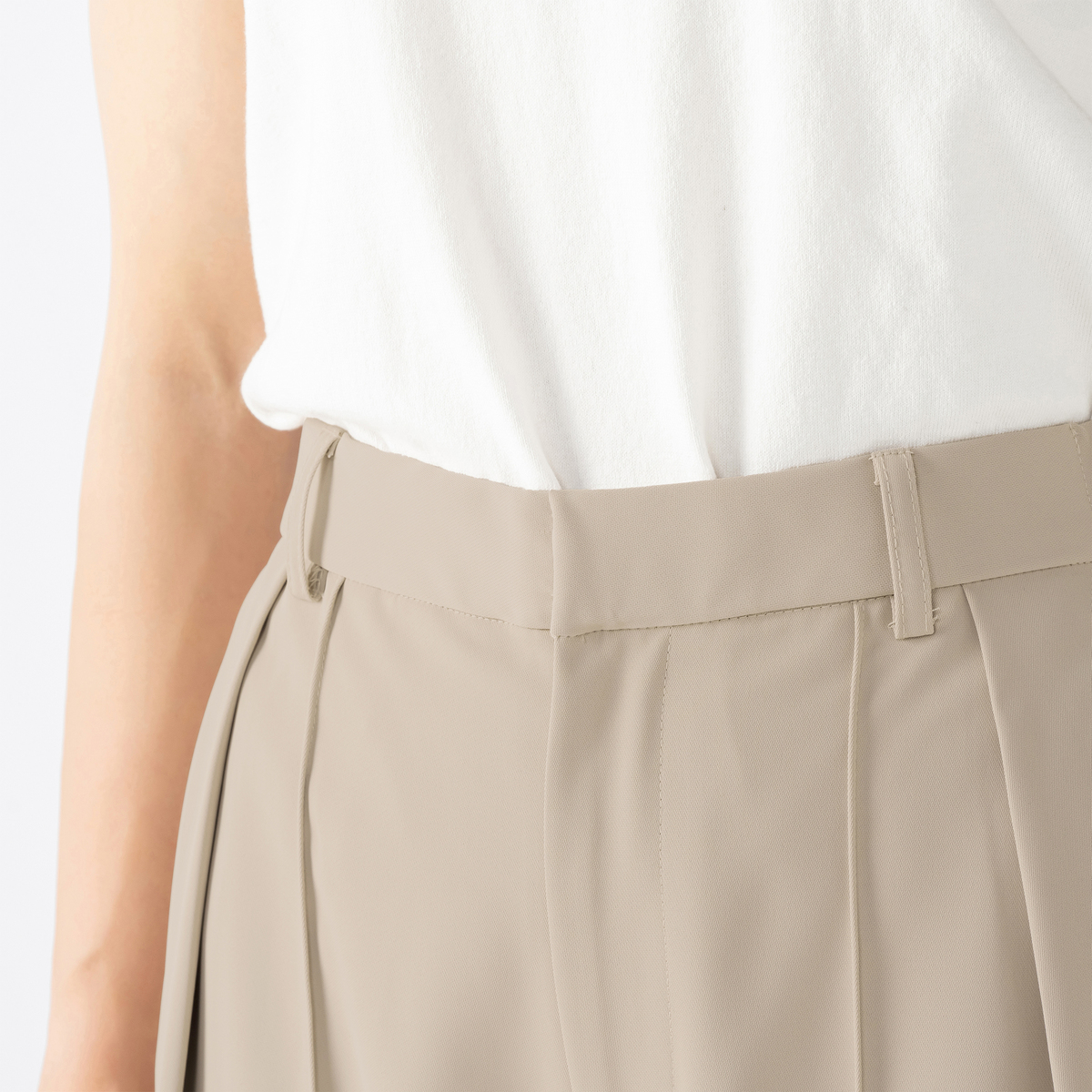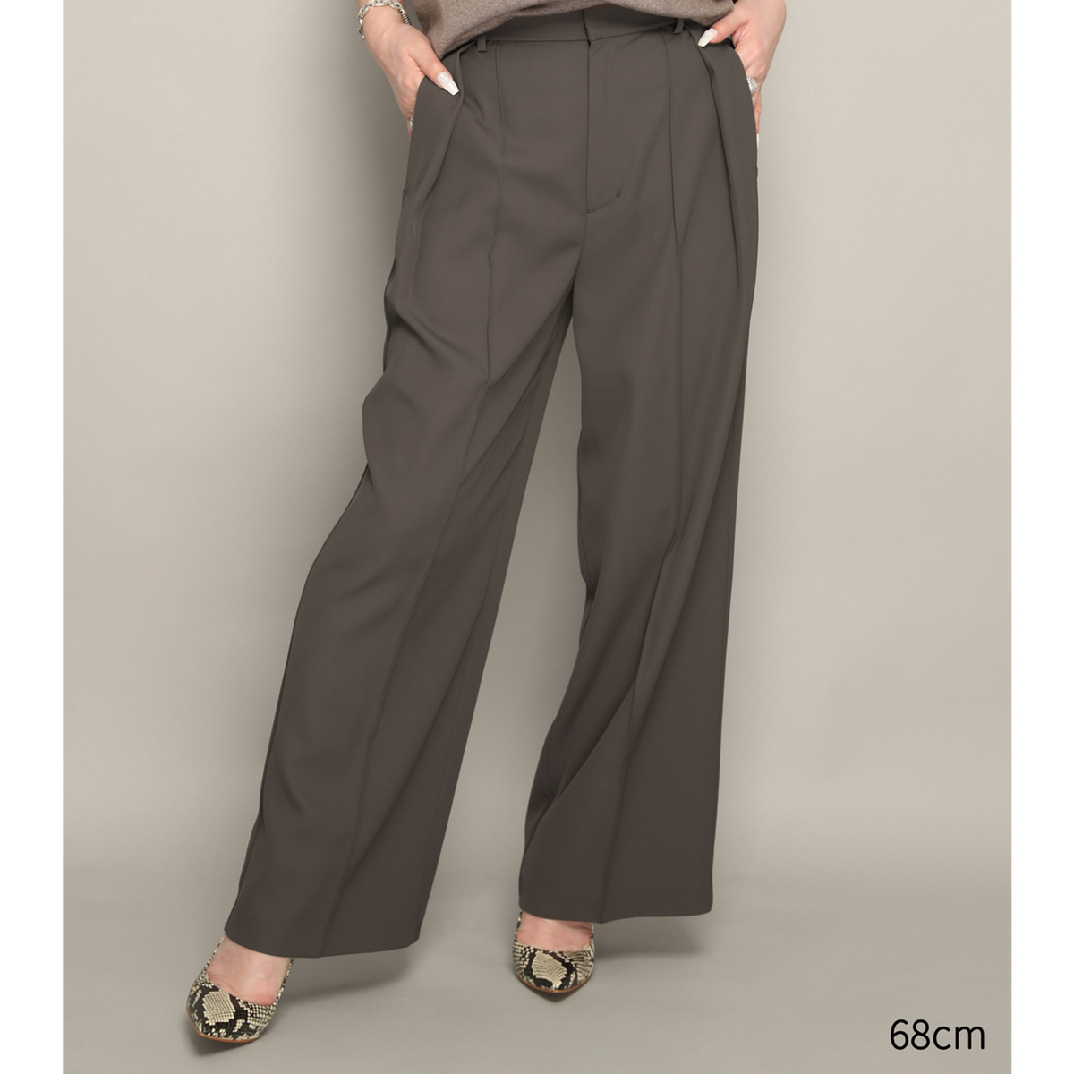 適度なドレープ感と張りを持つダブルクロス素材を使い、セミワイドな形に仕上げたパンツ。センターのタックとシーム線が脚をすっきりと演出します。股下は2つの丈から選べます