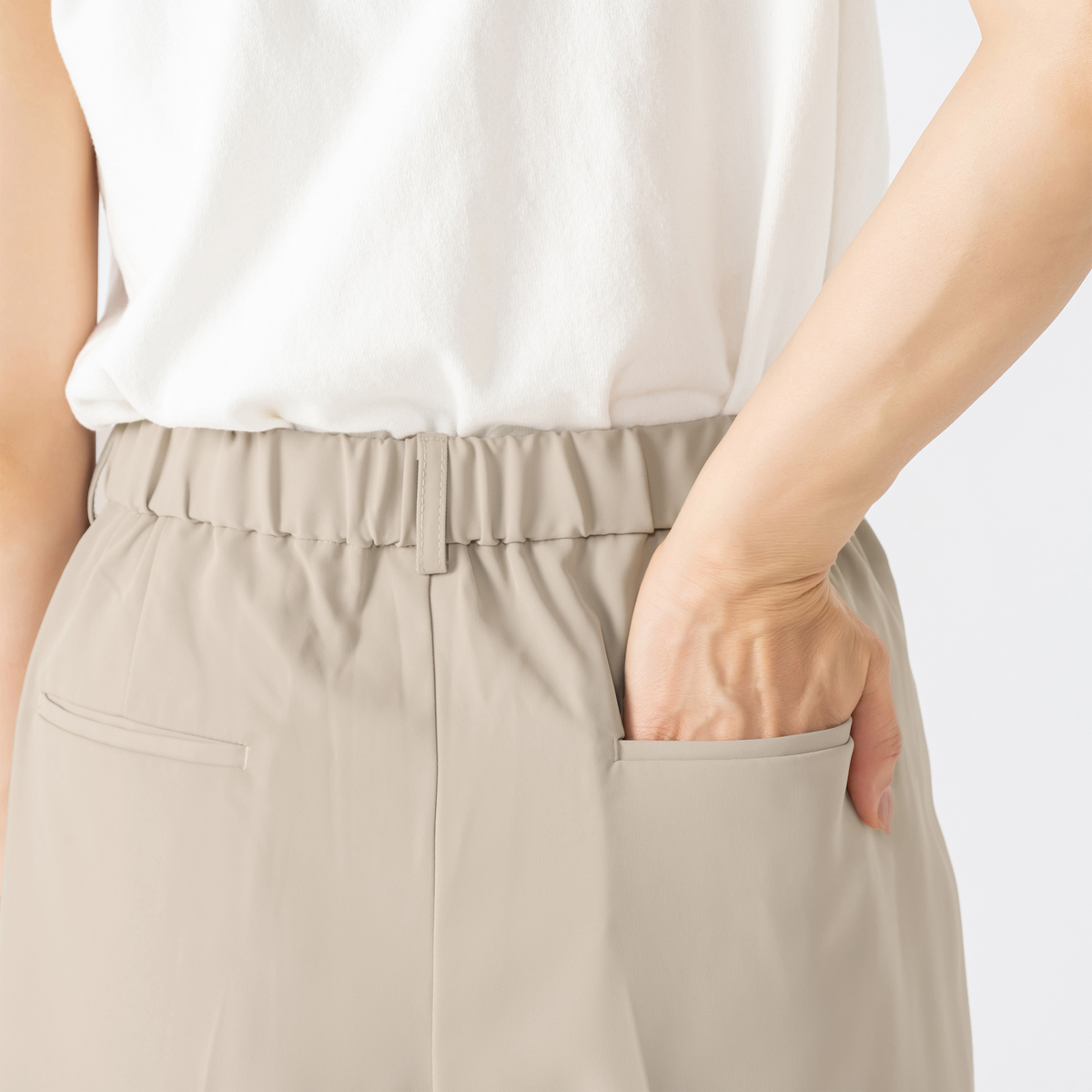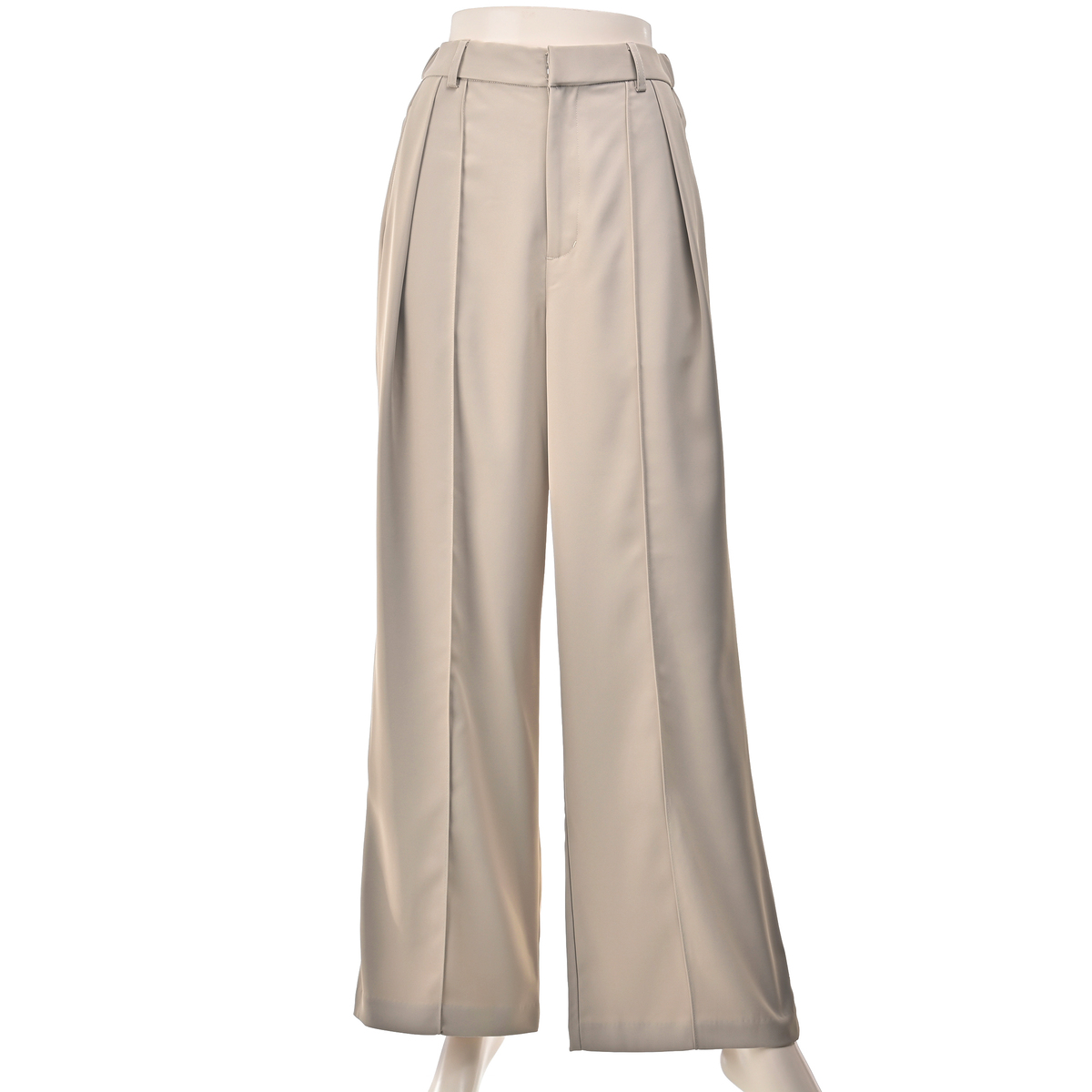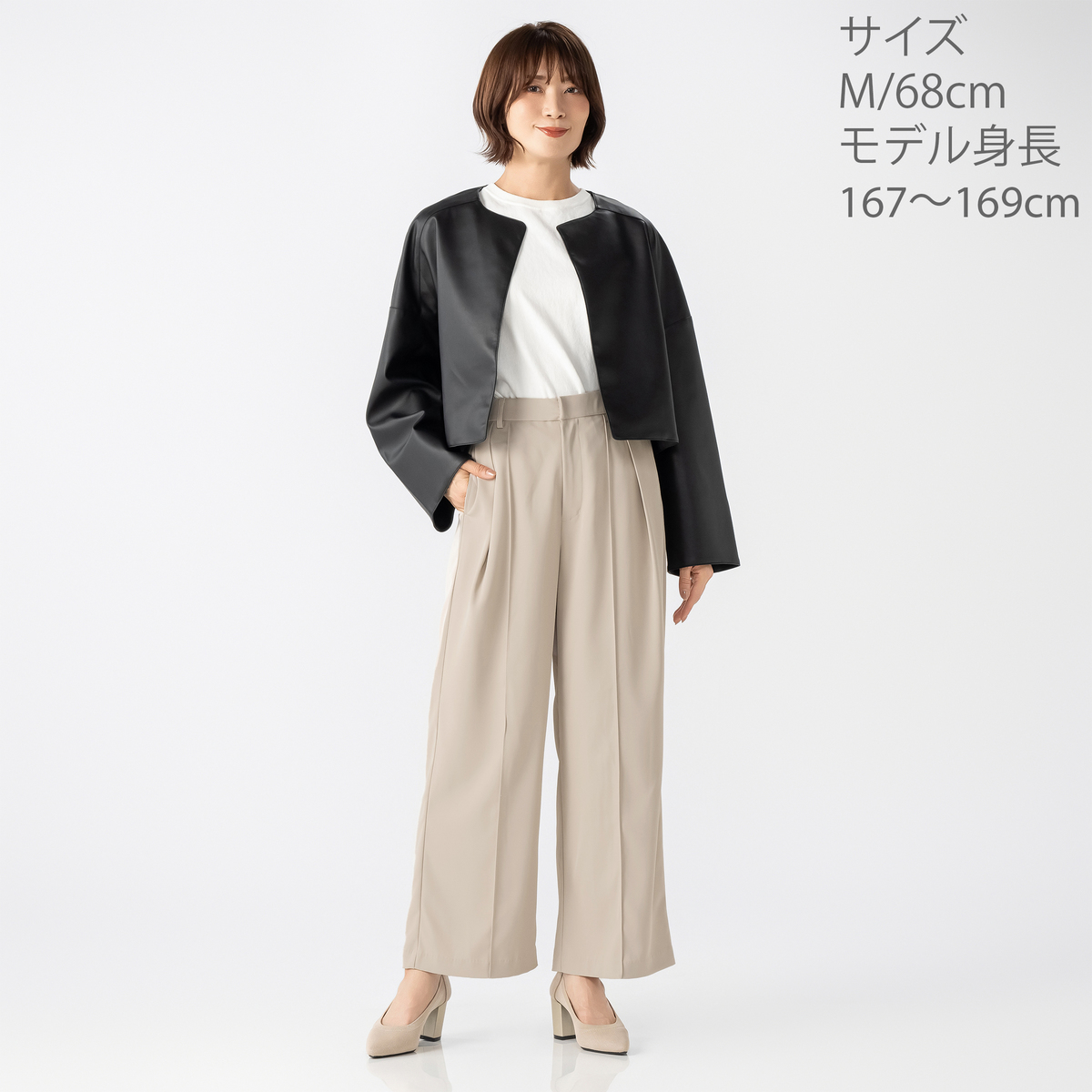 適度なドレープ感と張りを持つダブルクロス素材を使い、セミワイドな形に仕上げたパンツ。センターのタックとシーム線が脚をすっきりと演出します。股下は2つの丈から選べます