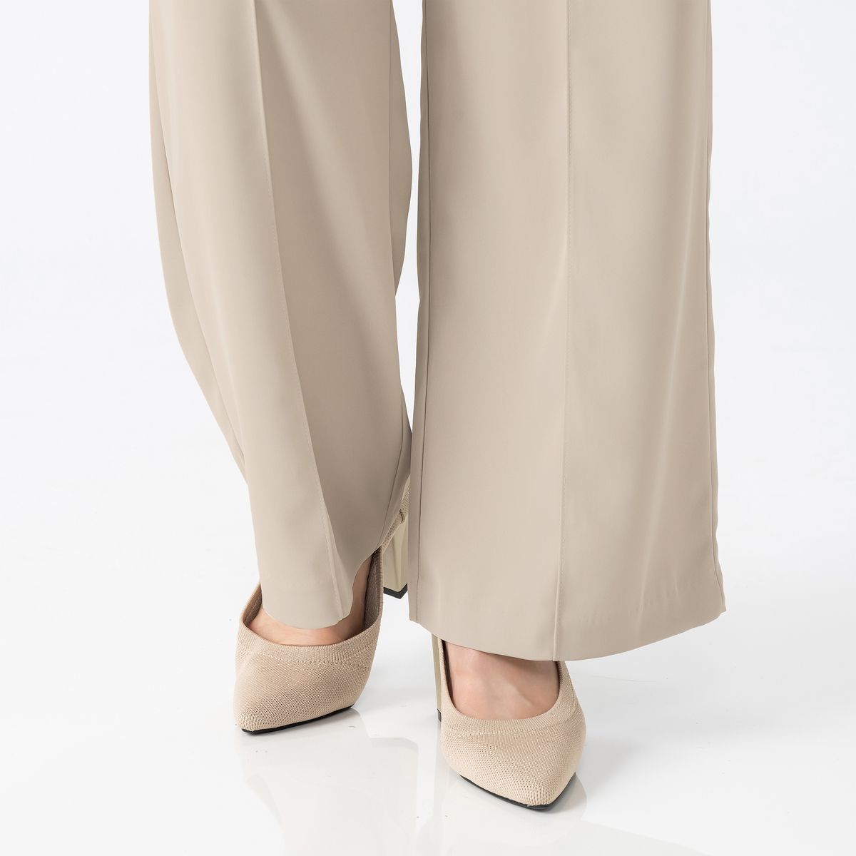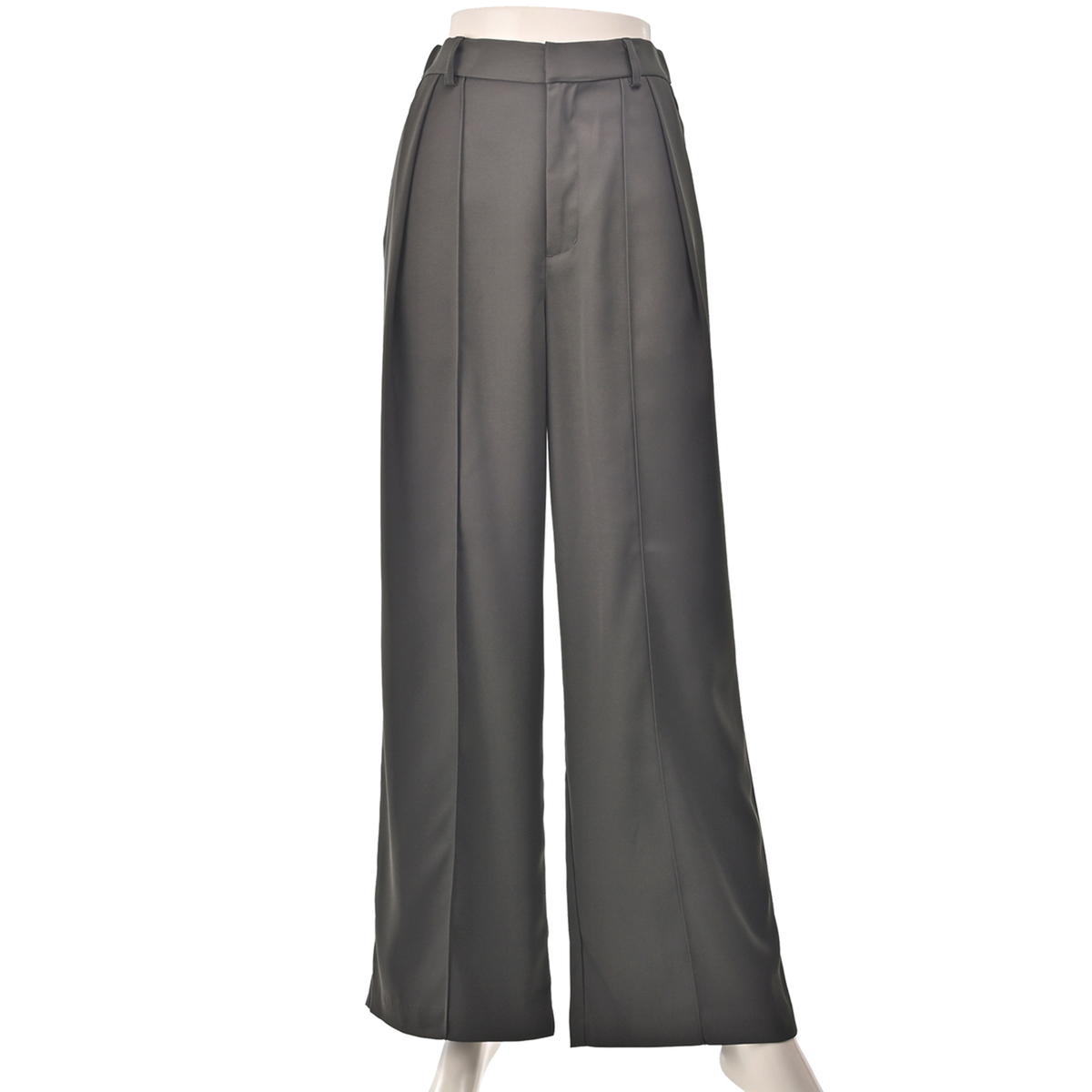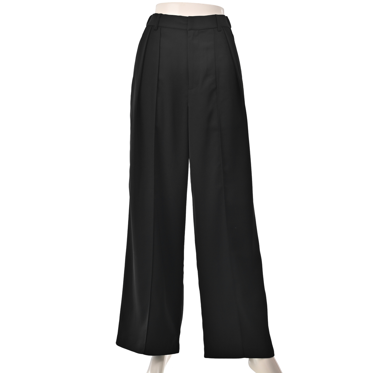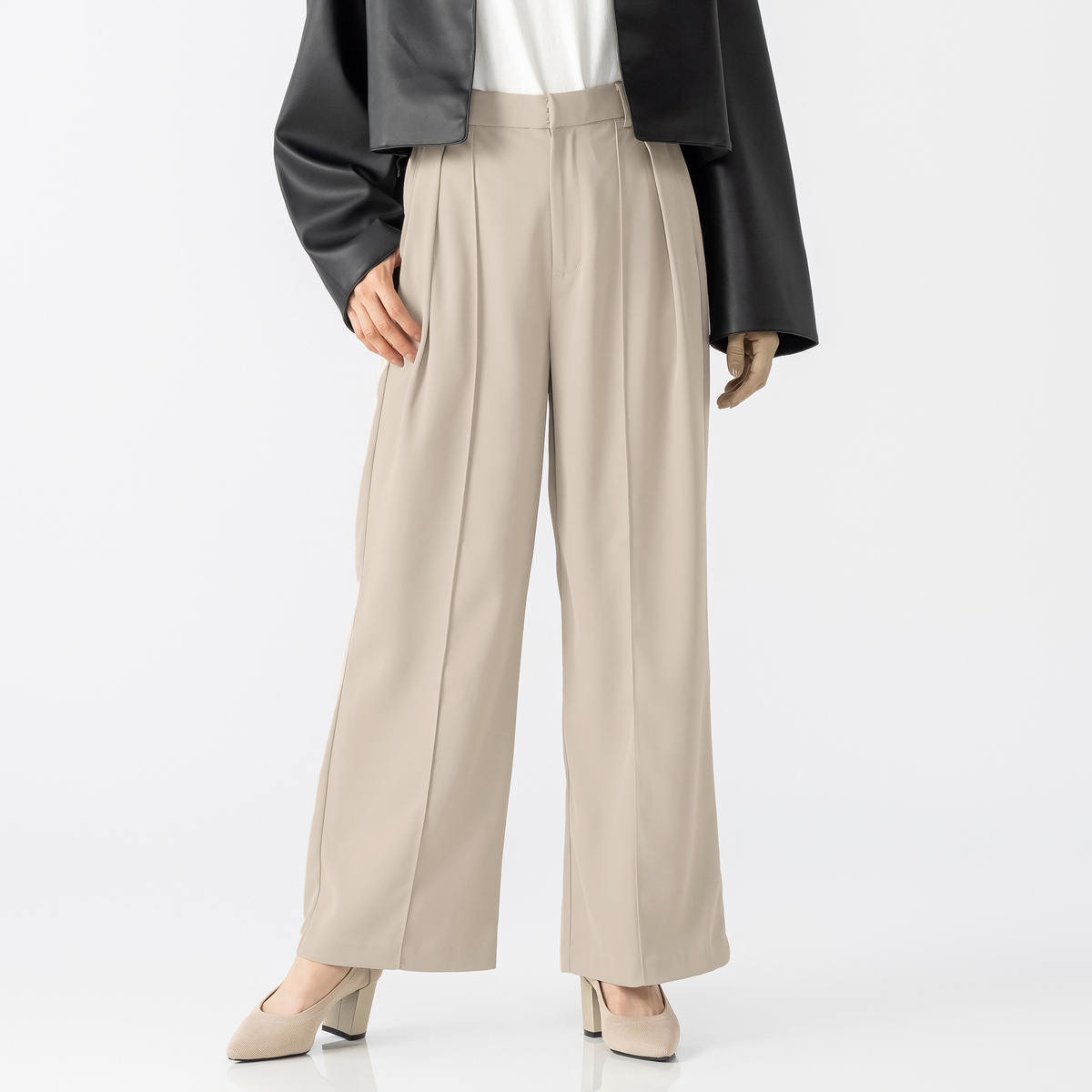 適度なドレープ感と張りを持つダブルクロス素材を使い、セミワイドな形に仕上げたパンツ。センターのタックとシーム線が脚をすっきりと演出します。股下は2つの丈から選べます