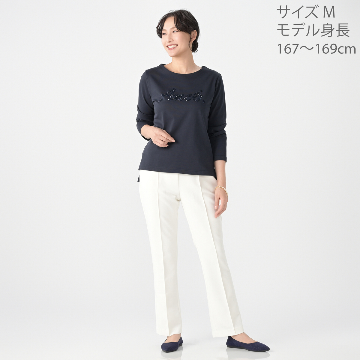 いつもながら、欲しい物が多すぎて、迷いながら決めて、ほっとしてTV見てたら、あらこれもいいわ、と思った時には、モカグレーもソールド。ウエイトで白とネイビーでしたが、ホワイトは届きました!Tシャツの生地の良いのはわかってますが、デザインが派手かな?思う物が多いんですが、彩子さんが白着ていて、インナーに白は冬良いかと思いました。到着したら、スパンコールがあまり目立たず、可愛くて、とっても良かったです!