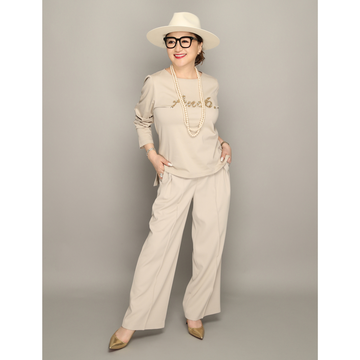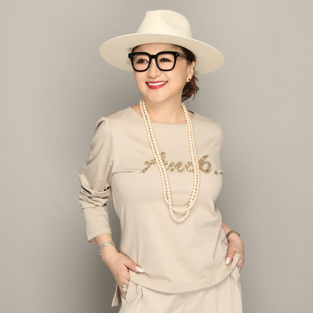最初エクリュを狙っていましたが、オンエアで藤島さんがモカグレーを着ているのを見て素敵!と思いモカグレーを頂きました。アンコキーヌ6周年のロゴの上品なキラキラとシックなカラーが気に入りました。アンコキーヌのロンTは子供っぽくならずにカジュアルが楽しめて大満足です。グレーのファーベストと合わせて早く着たいです。