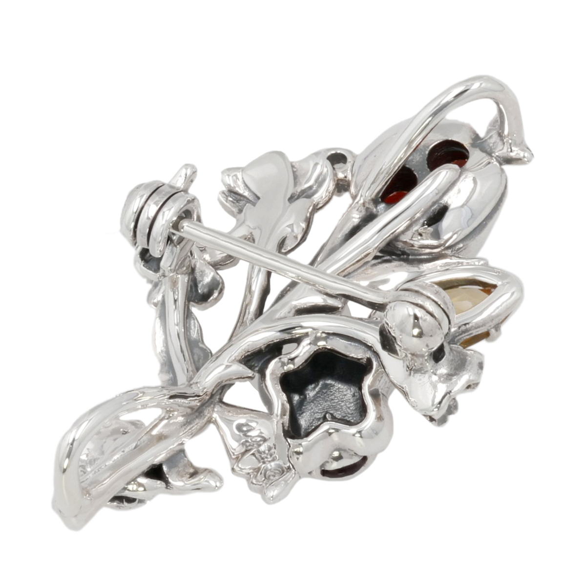 素材: [シトリン] マーキスカット 爪留め/接着 1石 [ガーネット] ラウンドカット 爪留め/接着 3石 [ホワイトトパーズ] ラウンドカット 爪留め/接着 2石 総重量(約) 3.8g バチカンの内径(約) 4.5×3.0mm ヘッドの縦×横(約) 28.5×18.0mm [地金] シルバー925、シルバー [仕上げ] アンティーク仕上げ ■風車式ブローチピン付 ■素材の大きさ・形・色合い、製品のサイズは1点1点多少異なります ■専用ケース付 【タイ製】