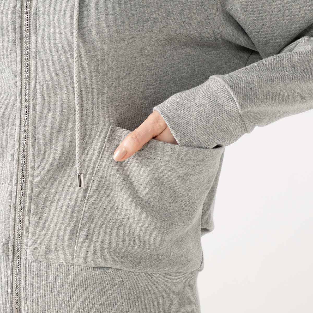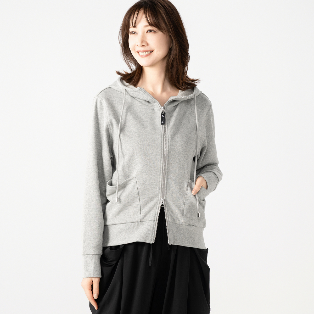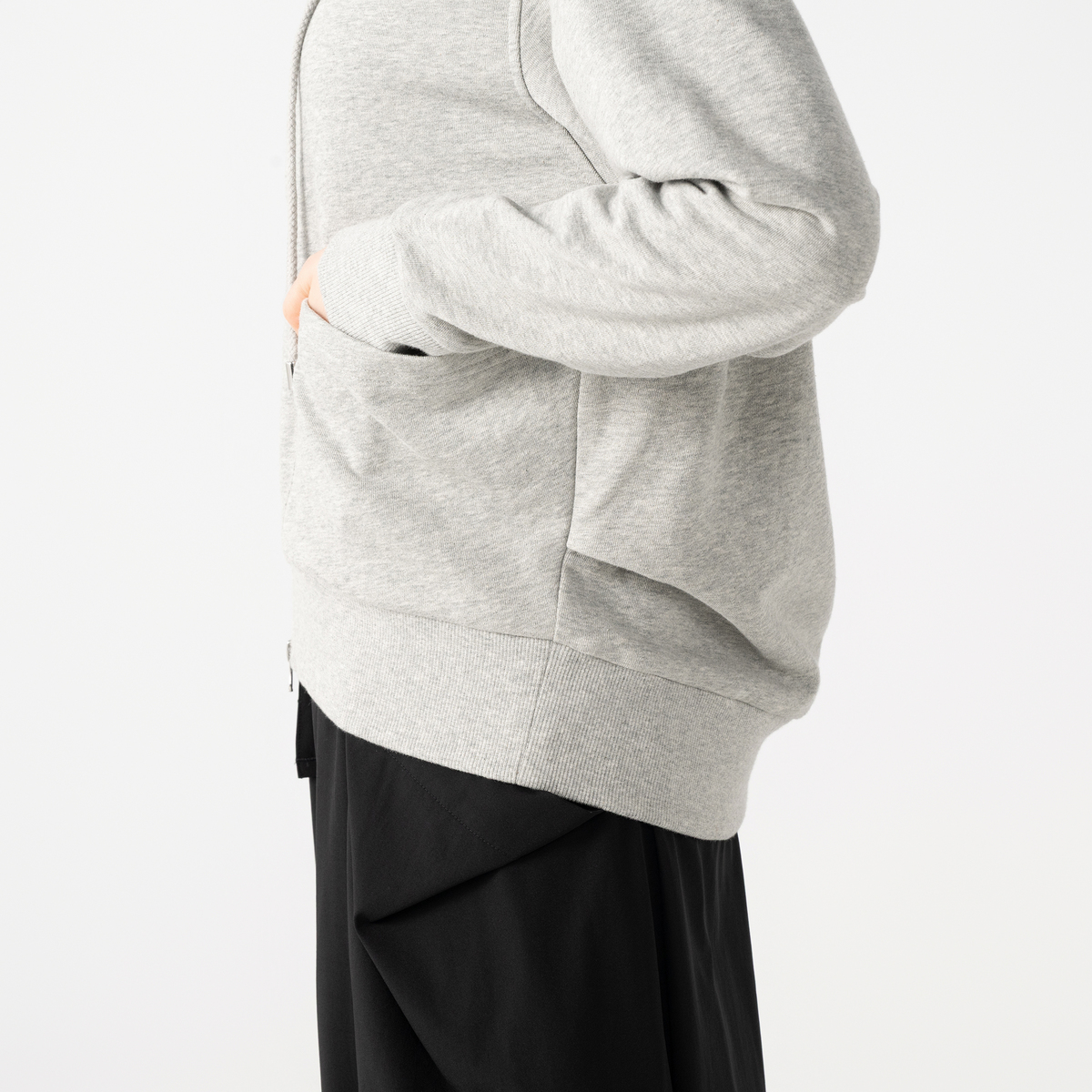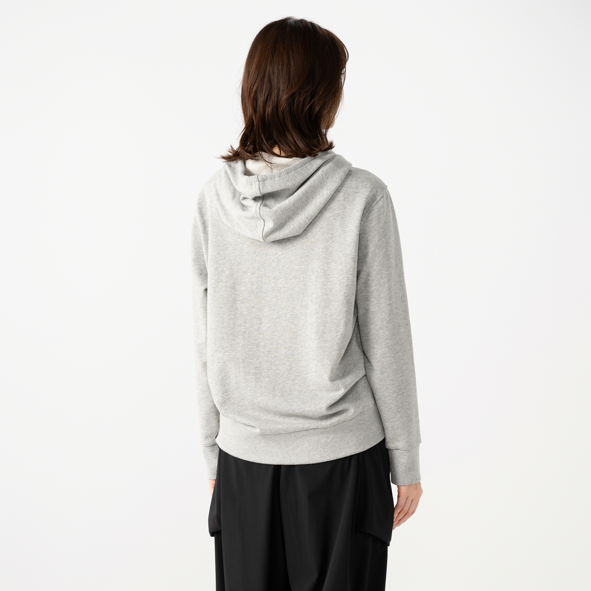 裏毛素材を採用したパーカーです。ゆったりとしたシルエットが、程よい厚みとともにカジュアルすぎないエレガントな着こなしを叶えます