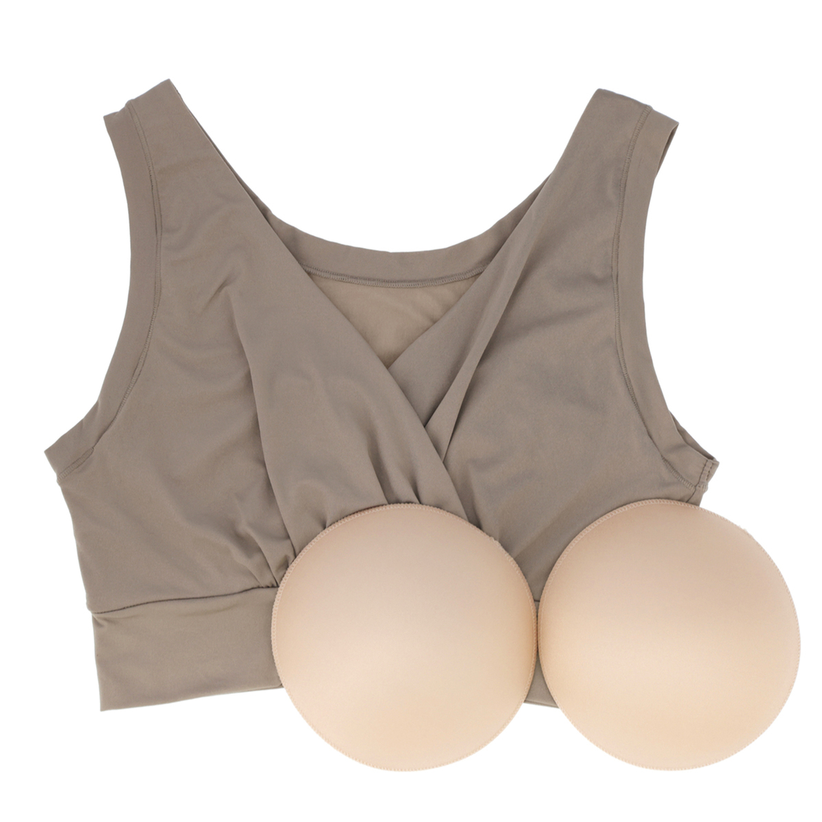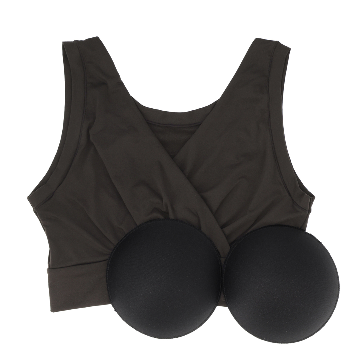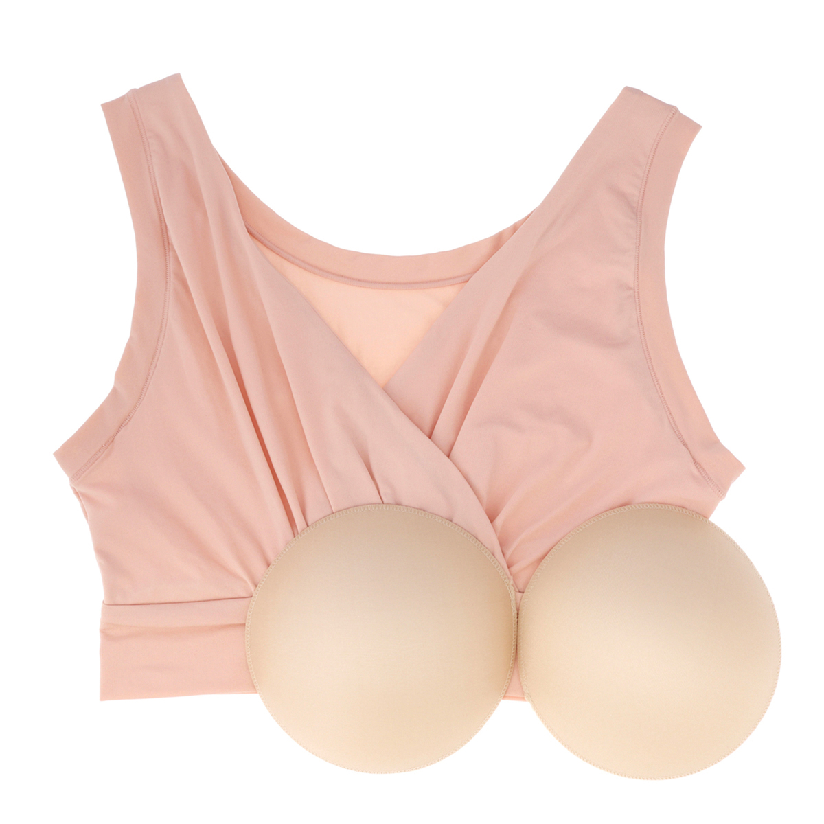 よく伸びる素材でM〜LLサイズまで対応。品のあるカシュクールデザインです。アンダー部分にゴムを使わず、わさ仕様のラクな着用感。締め付け感がなく段差ができにくく。取り外し可能なパッド入りです
