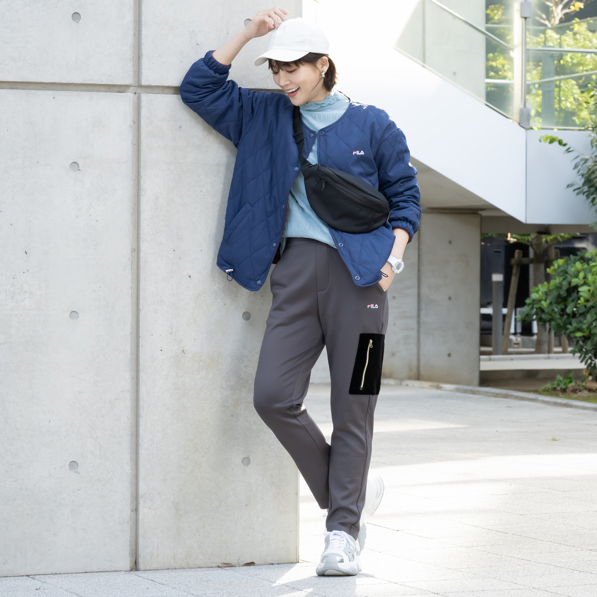 No. 746682 FILA UV裏ベロアヒートアシメデザインカーゴパンツ