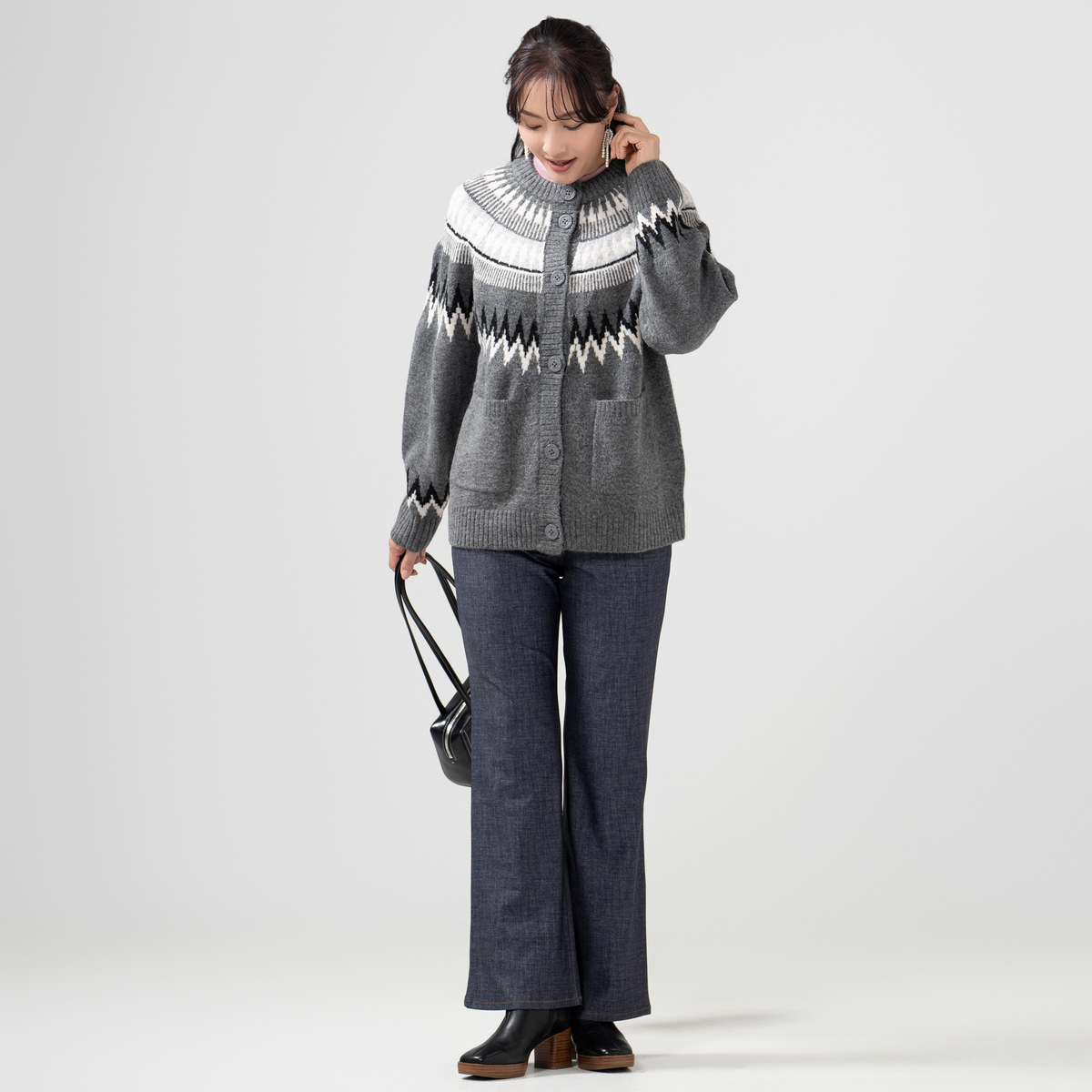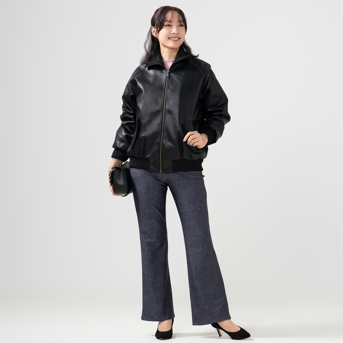 今どきなシルエットやデザインにアップデートしたベルボトムパンツ。高めに設定した膝位置と、裾に向けたフレアの分量で脚を長く美しく見せ、高い位置の山ハギとバックポケットがヒップラインを高く見せます
