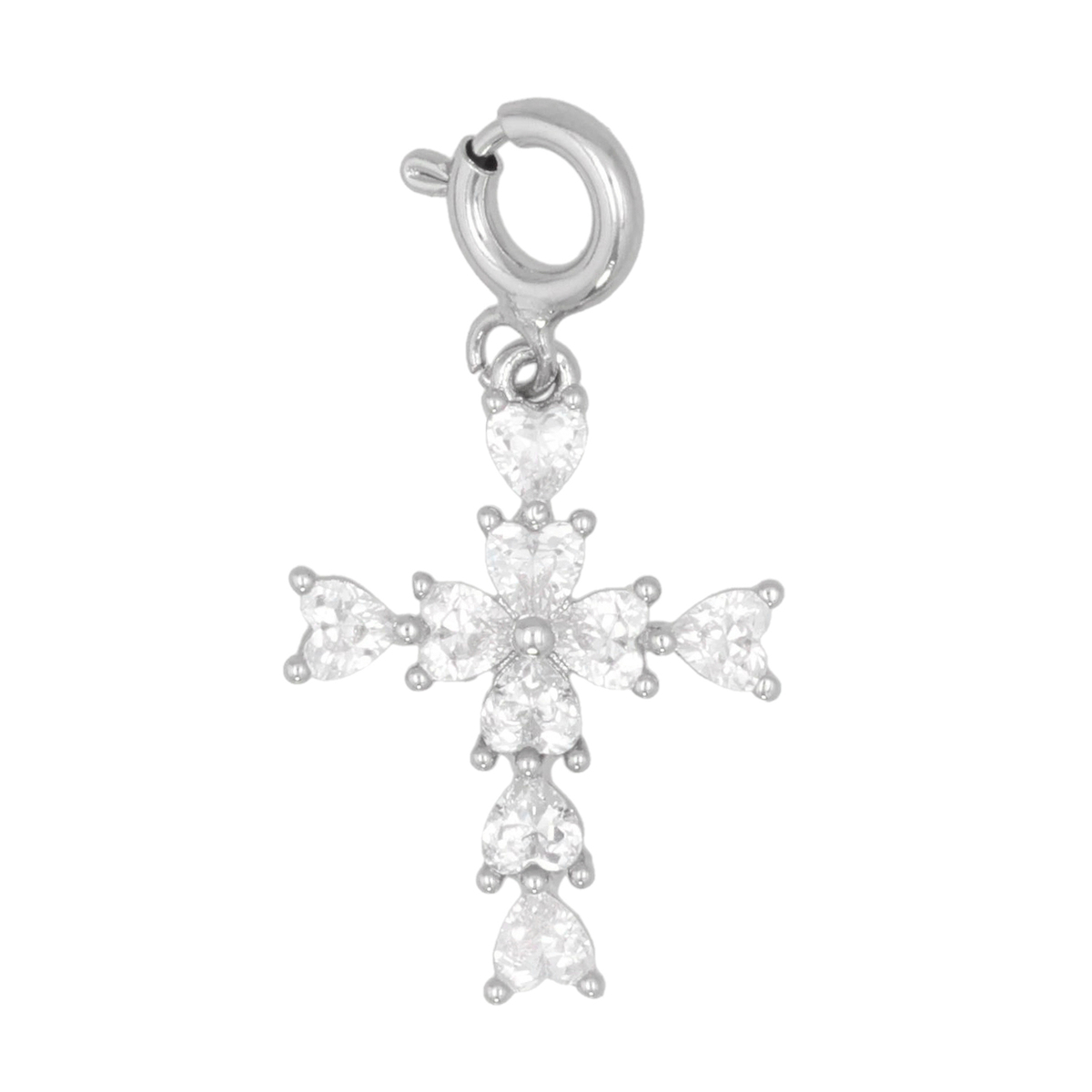 キラキラネックレスに、チャームが4つも付いて色々と楽しめます。お揃いで購入したガーベラのイヤリングを合わせても素敵!クリスマスには星と月で!バラもクロスもジャラジャラ付けても本当に可愛いです。