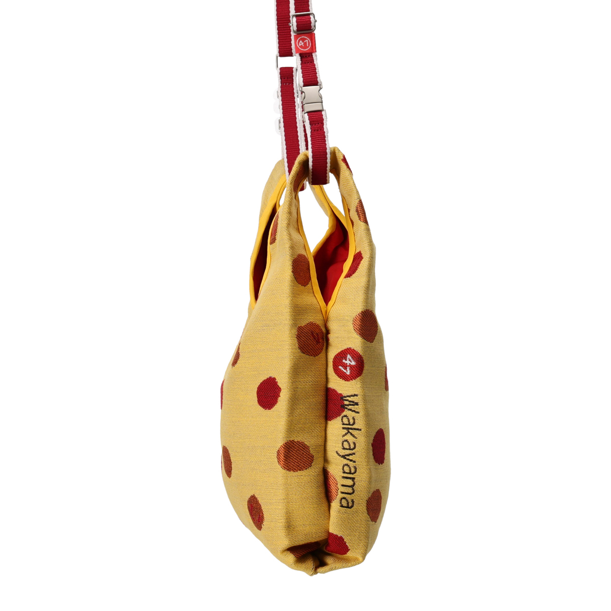 和歌山を表すモチーフとして「梅干し」をデザインした、ジャカード織りのバッグ。ジャカード織りならではの立体感とあたたかみが、豊かな表情を引き立てます