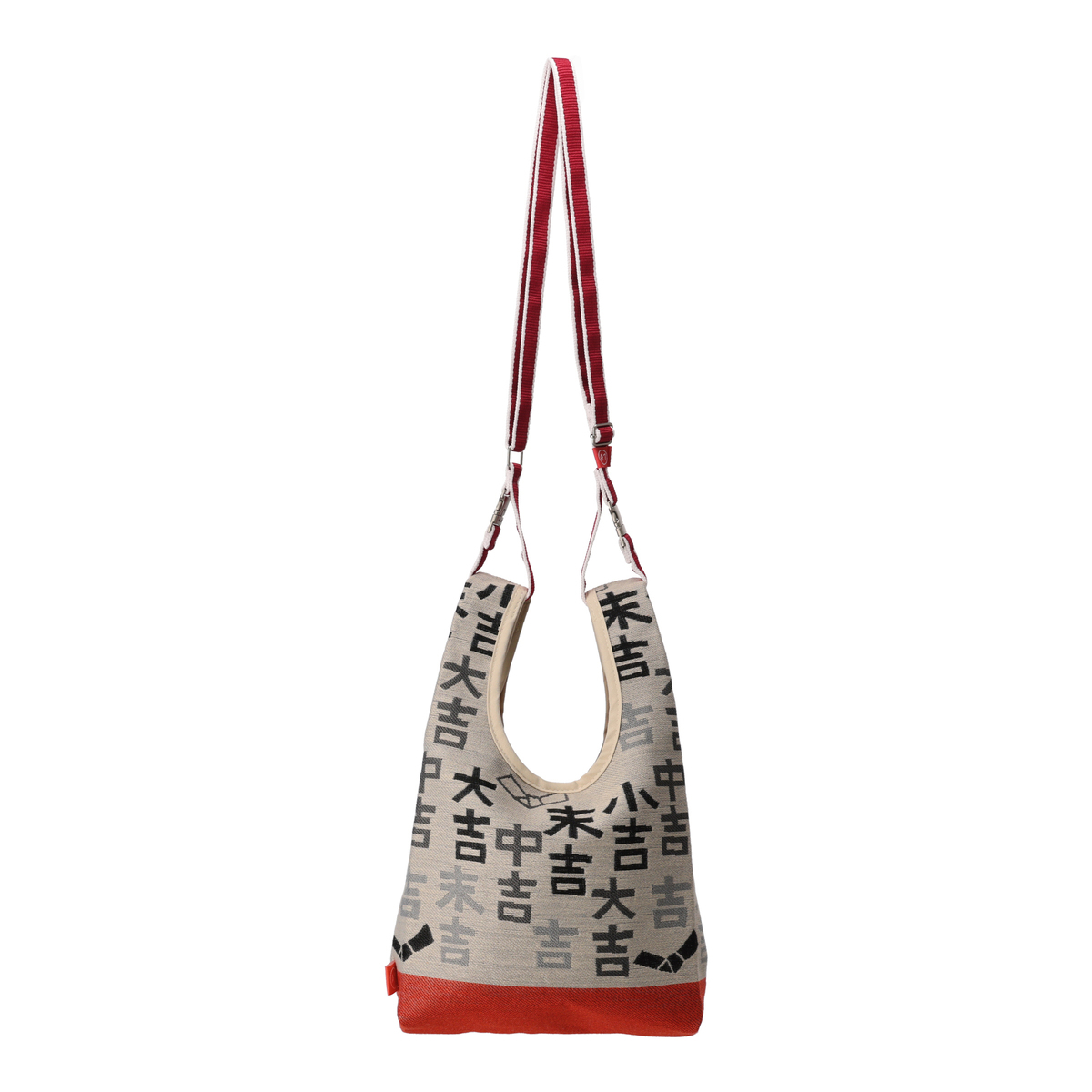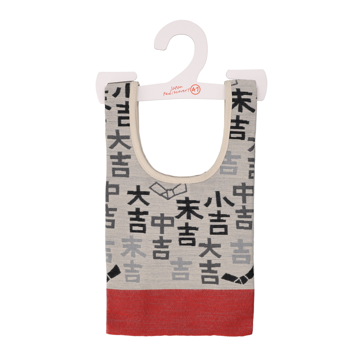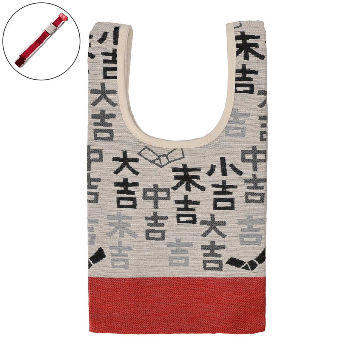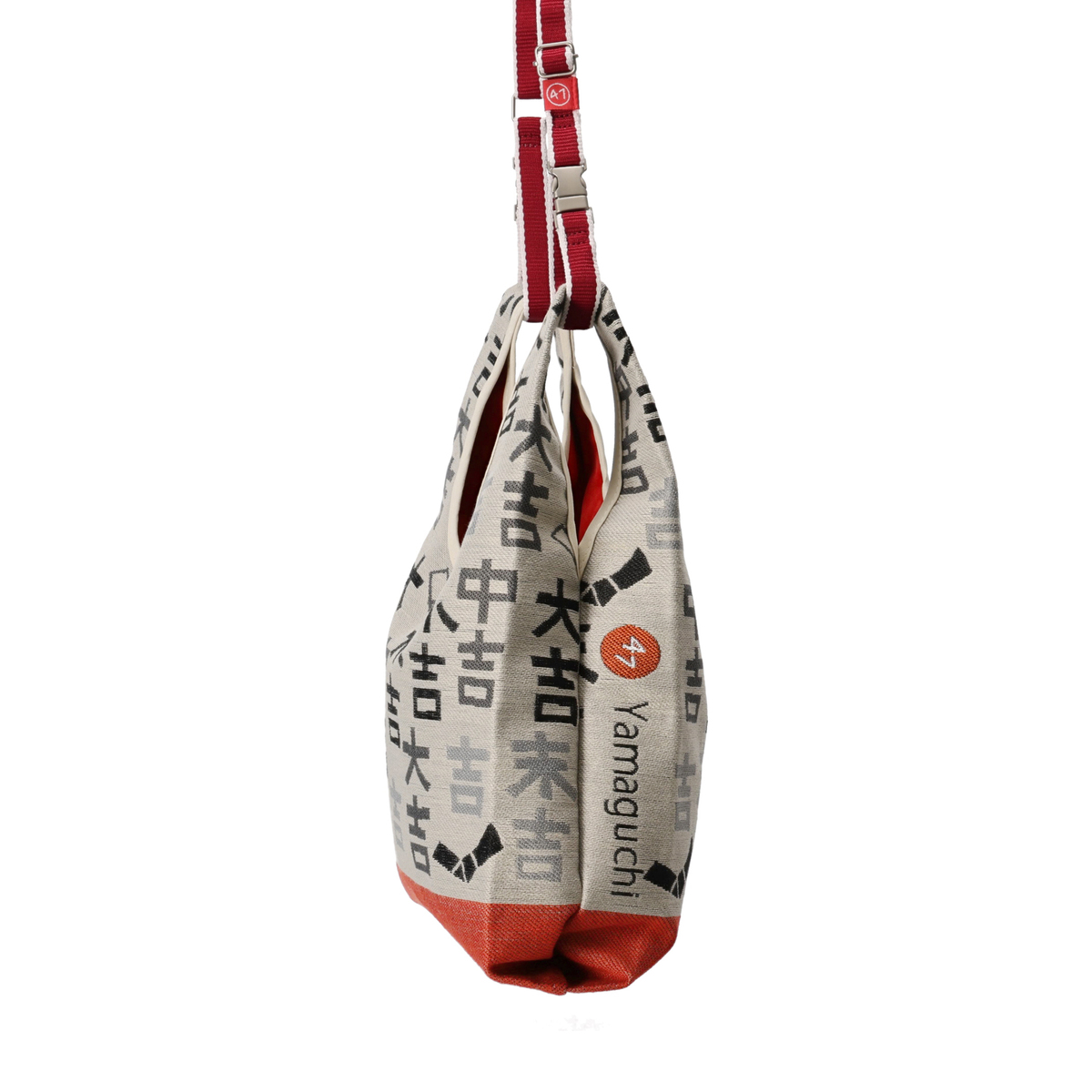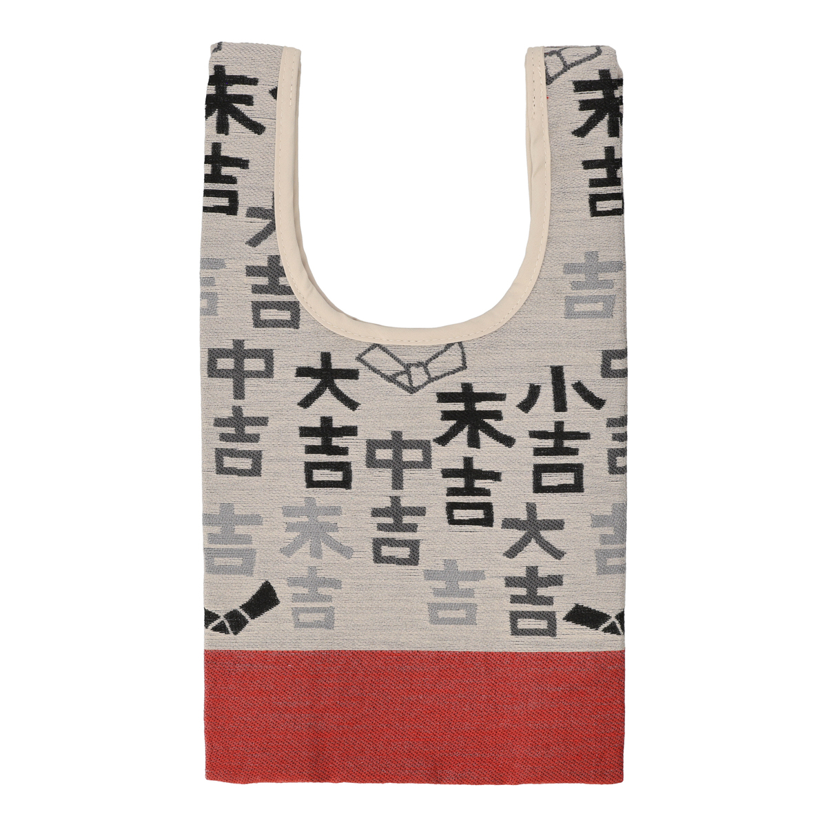 山口を表すモチーフとして「おみくじ」をデザインした、ジャカード織りのバッグ。ジャカード織りならではの立体感とあたたかみが、豊かな表情を引き立てます