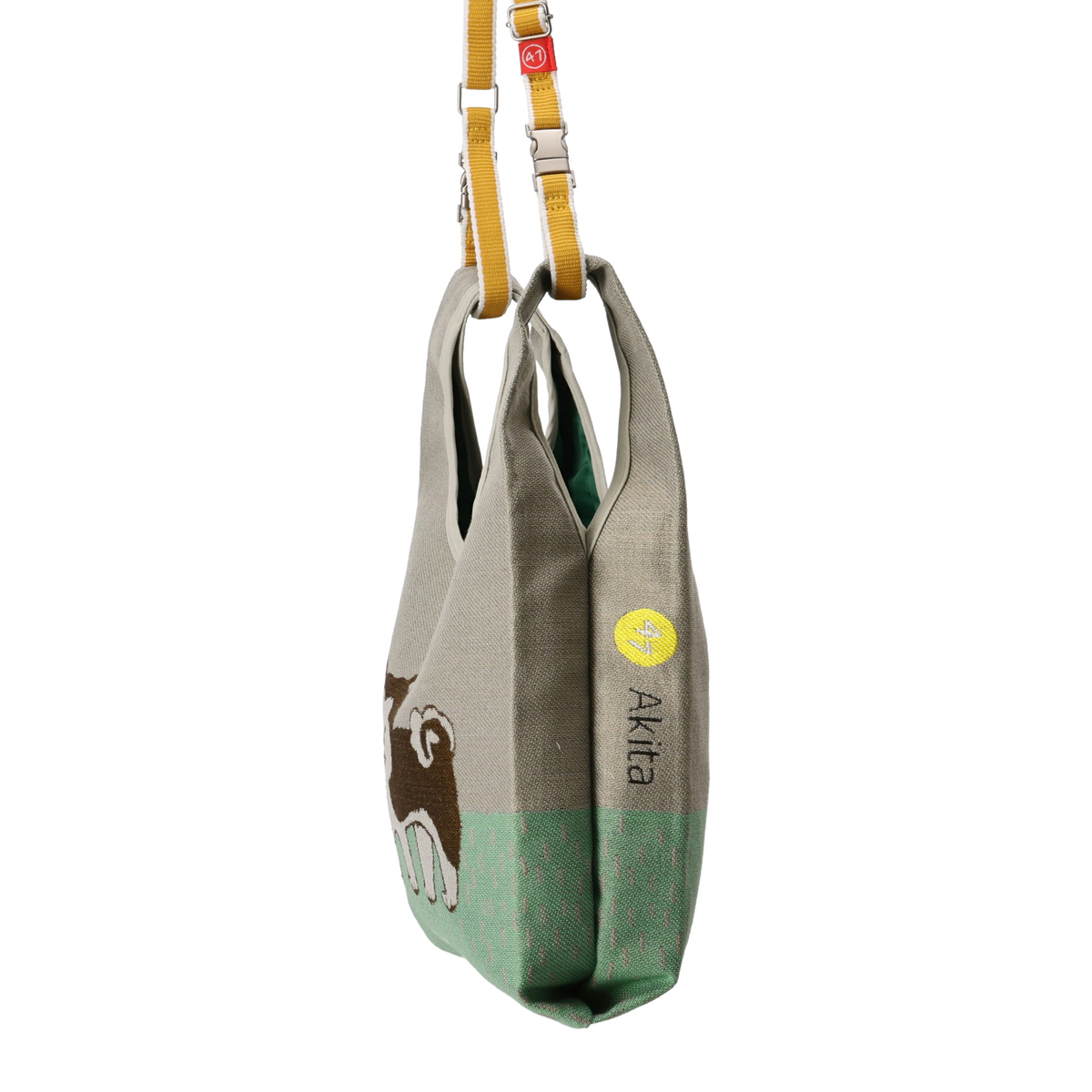 秋田を表すモチーフとして「秋田犬」をデザインした、ジャカード織りのバッグ。ジャカード織りならではの立体感とあたたかみが、豊かな表情を与えます