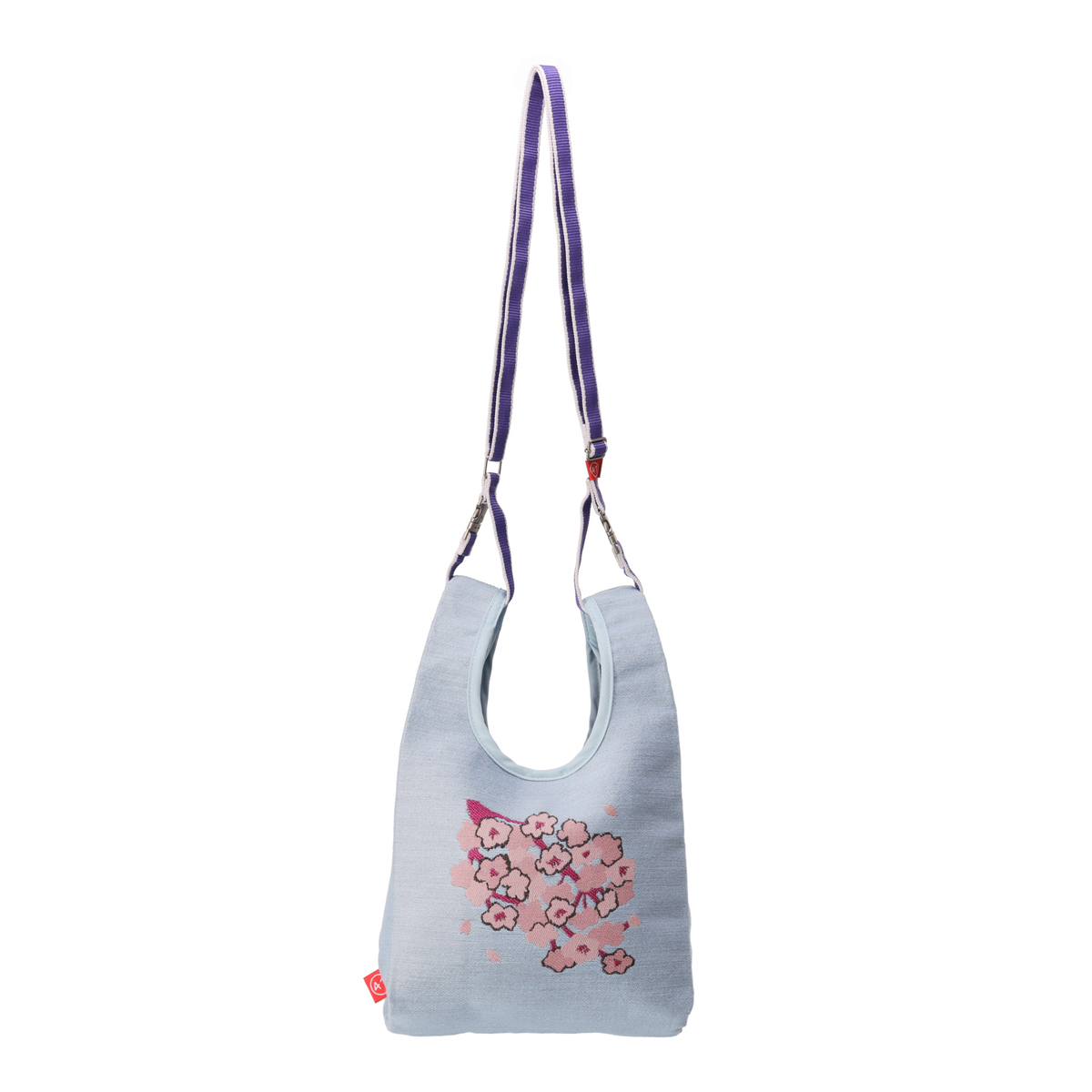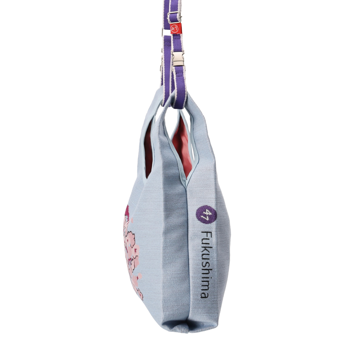 福島を表すモチーフとして「三春の滝桜」をデザインした、ジャカード織りのバッグ。ジャカード織りならではの立体感とあたたかみが、豊かな表情を引き立てます