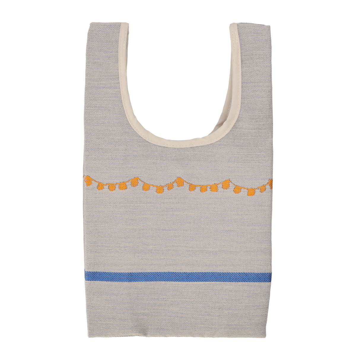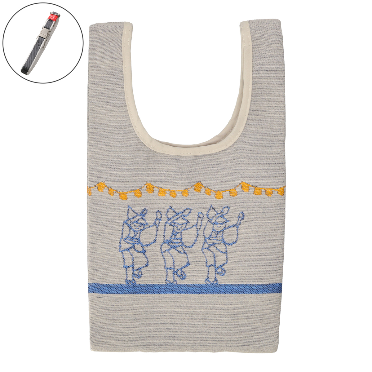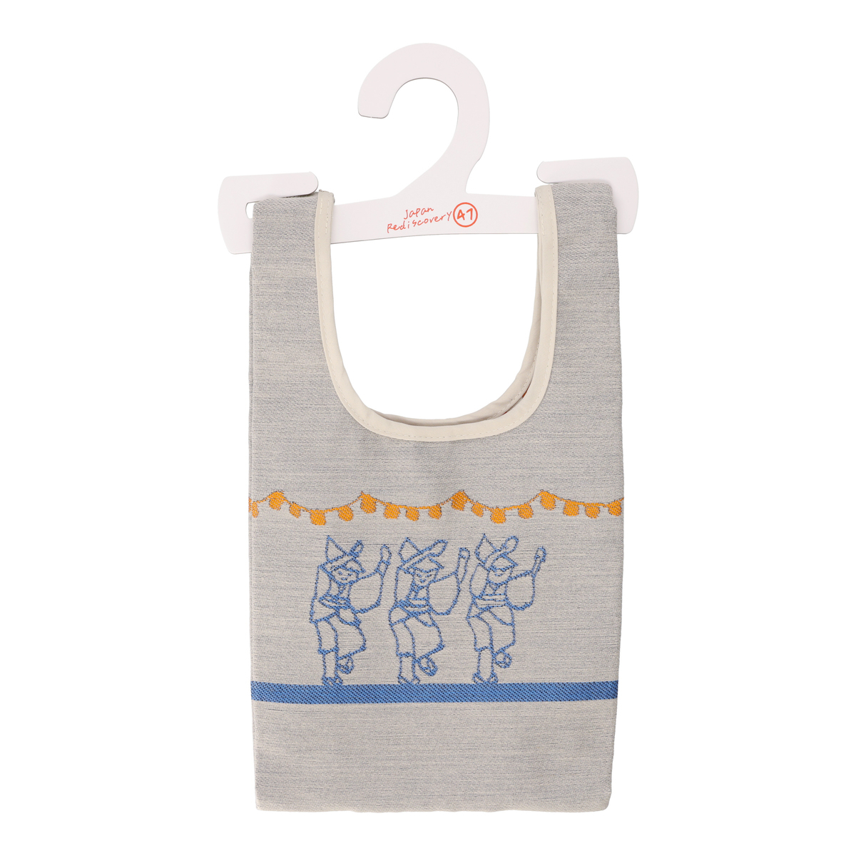 徳島を表すモチーフとして「阿波踊り」をデザインしたバッグ。ジャカード織りならではの立体感とあたたかみがあり、デザインに豊かな表情と奥行きを感じさせます。コンパクトなサイズ感ですが500mlのペットボトルも入り、内側に吊り下げポケットが一つ付いているので、鍵などの小物も収納可能です