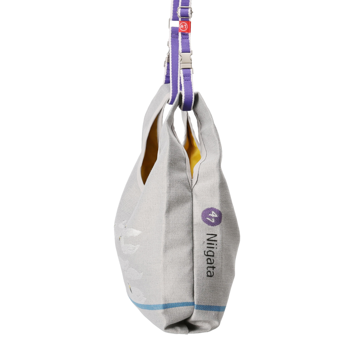47都道府県それぞれの魅力を表現した個性的なアイテムを提案する「47Japan Rediscovery」のバッグ。新潟を表すモチーフとして白鳥をデザインしました
