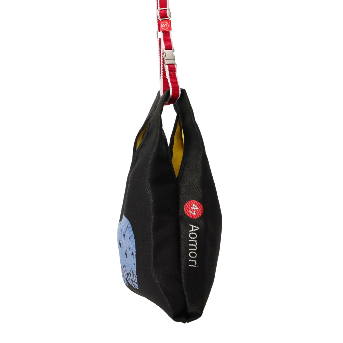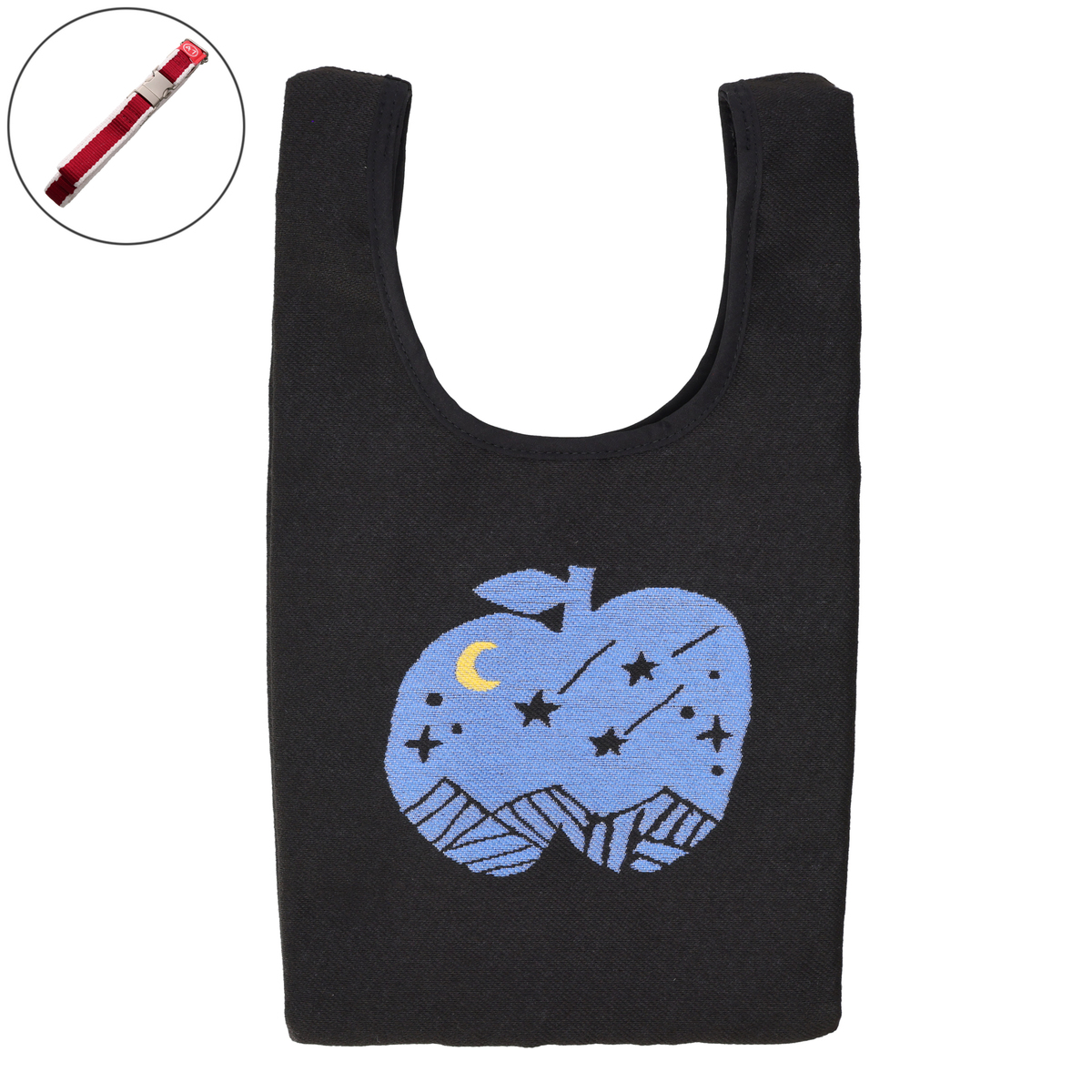 青森を表すモチーフとして「りんご」をデザインしたバッグ。ジャカード織りならではの立体感とあたたかみがあり、デザインに豊かな表情と奥行きを感じさせます。コンパクトなサイズ感ですが500mlのペットボトルも入り、内側に吊り下げポケットが一つ付いているので、鍵などの小物も収納可能です