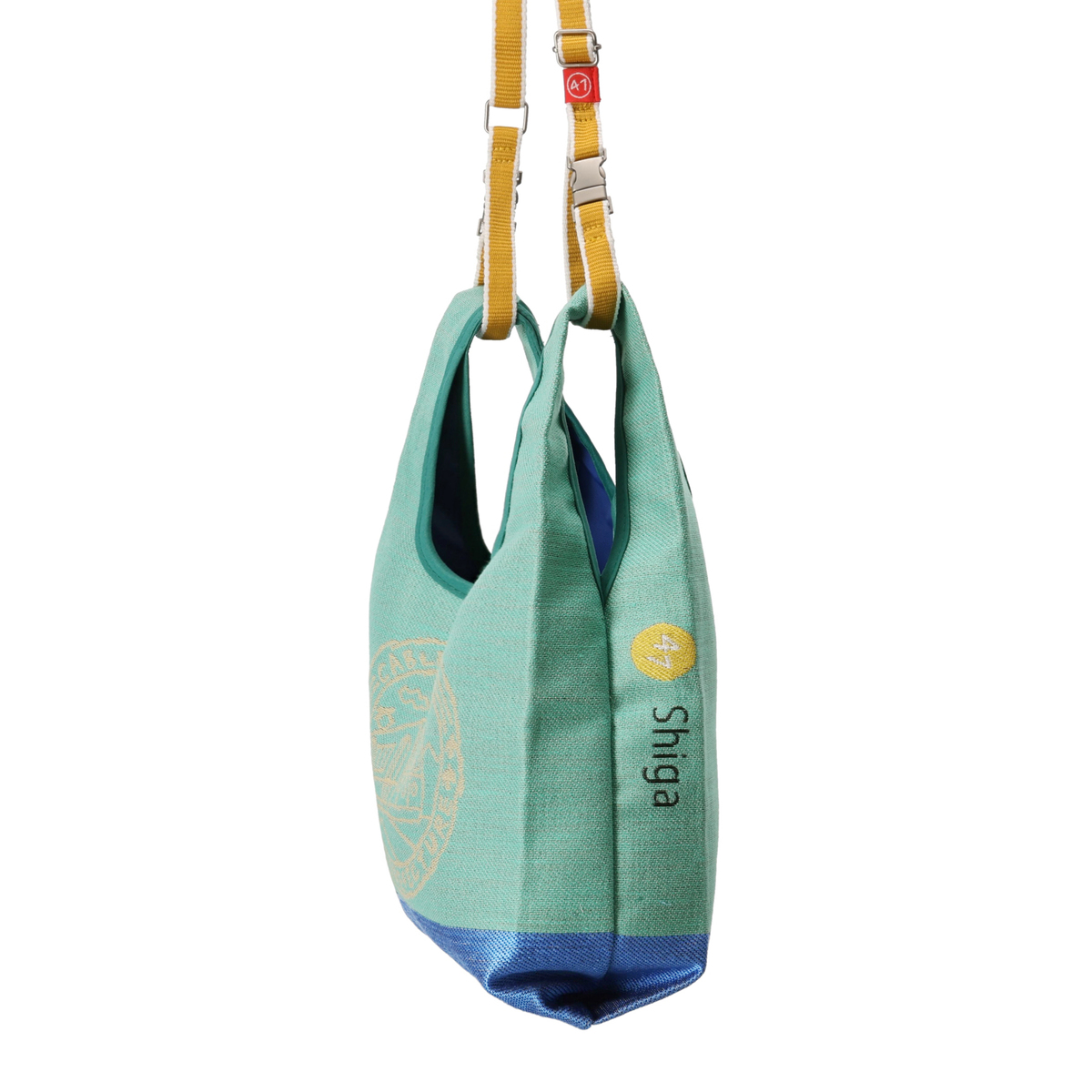 滋賀を表すモチーフとして「ケーブルカー」をデザインしたバッグ。ジャカード織りならではの立体感とあたたかみがあり、デザインに豊かな表情と奥行きを感じさせます。コンパクトなサイズ感ですが500mlのペットボトルも入り、内側に吊り下げポケットが一つ付いているので、鍵などの小物も収納可能です