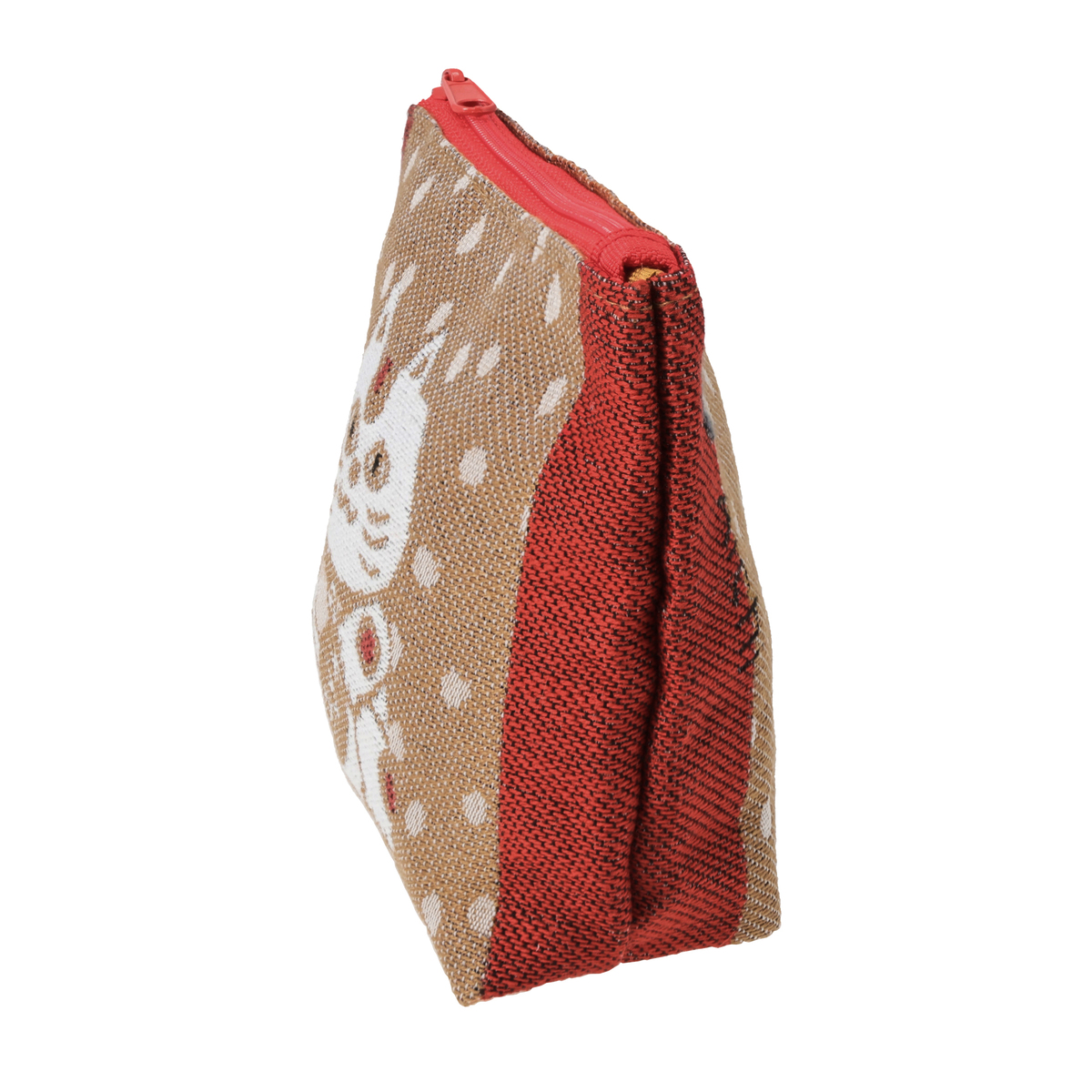 ジャカード織りならではの立体感とあたたかみがあり、デザインに豊かな表情と奥行きを感じさせます。コスメや小物、モバイルバッテリーや充電ケーブル、イヤホンなどをまとめて収納するのにもおすすめです