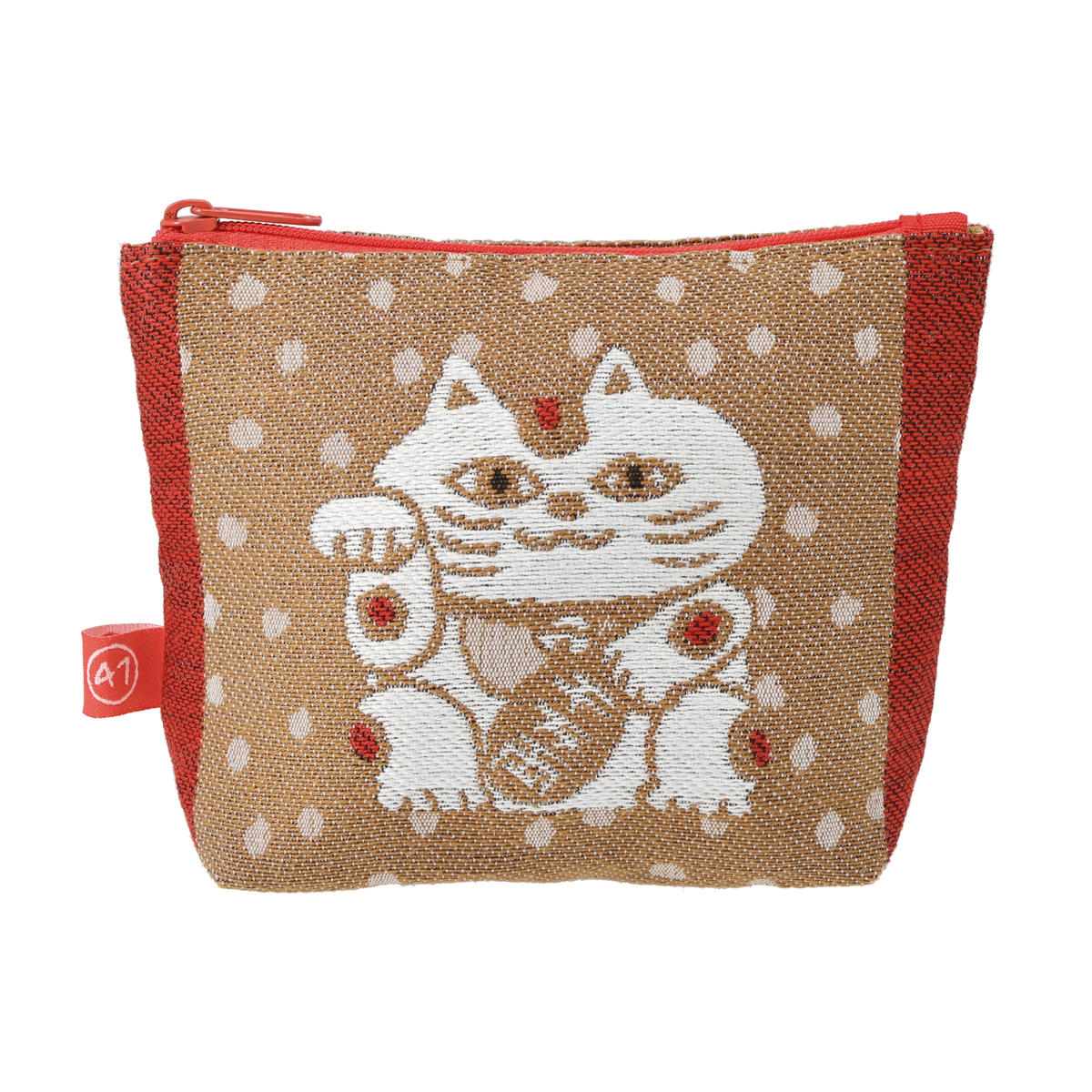 愛知を表すモチーフとして「招き猫」をデザインしたポーチ。個性的なデザインが、普段の持ち物にさりげないアクセントを添えてくれます