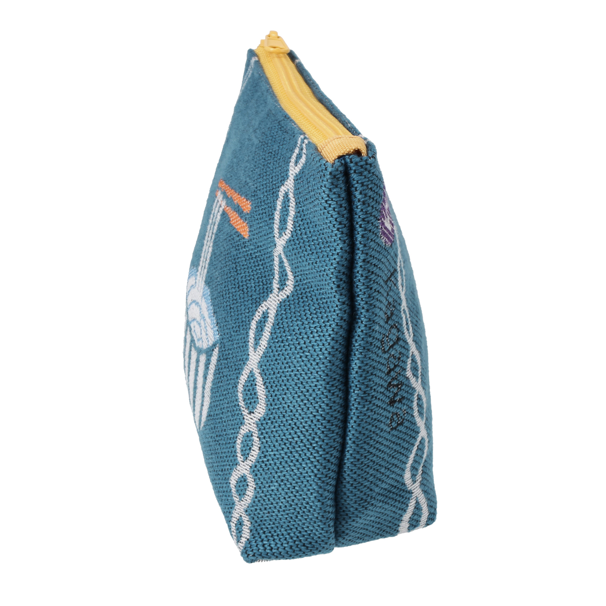 香川を表すモチーフとして「うどん」をデザインした、ジャカード織りのポーチ。ジャカード織りならではの立体感とあたたかみが、豊かな表情を引き立てます