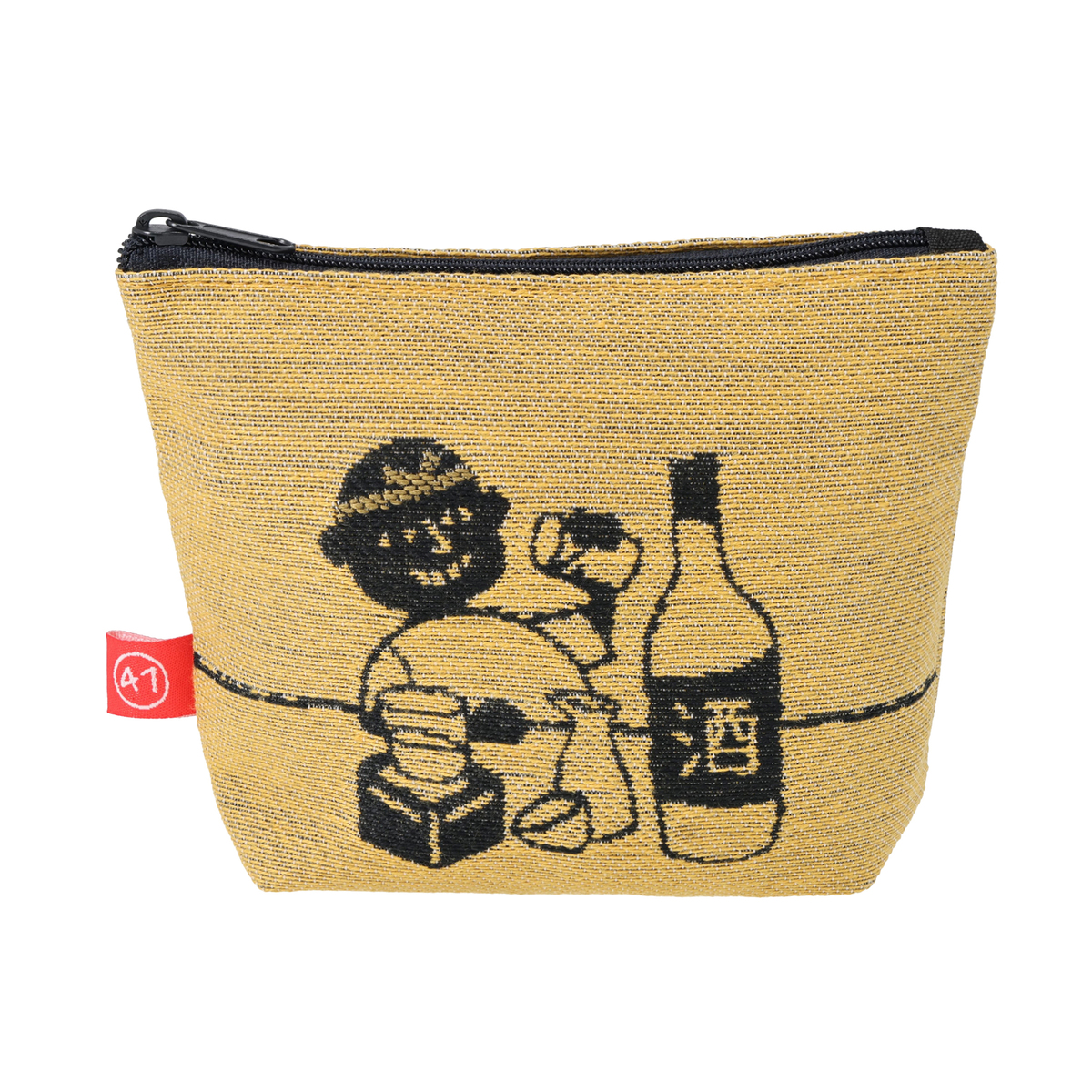 高知を表すモチーフとして「お酒好き」をデザインしたポーチ。個性的なデザインが、普段の持ち物にさりげないアクセントを添えてくれます