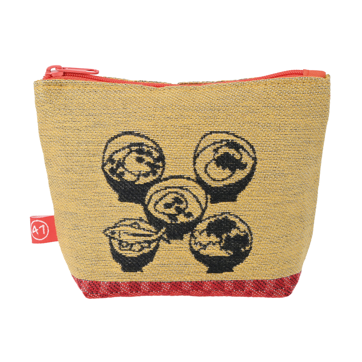 島根を表すモチーフとして「お雑煮」をデザインした、ジャカード織りのポーチ。ジャカード織りならではの立体感とあたたかみが、豊かな表情を与えます