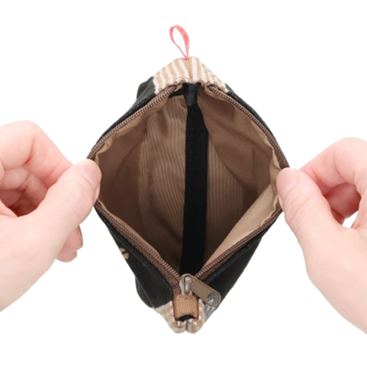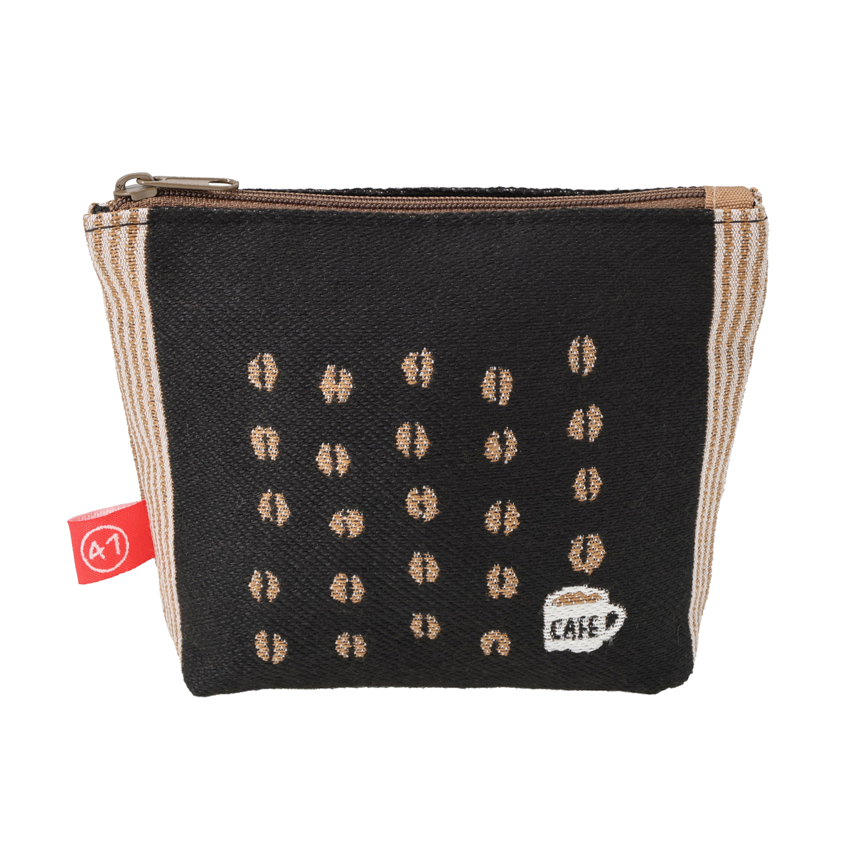 京都を表すモチーフとして「コーヒー」をデザインした、ジャカード織りのポーチ。ジャカード織りならではの立体感とあたたかみが、豊かな表情を与えます