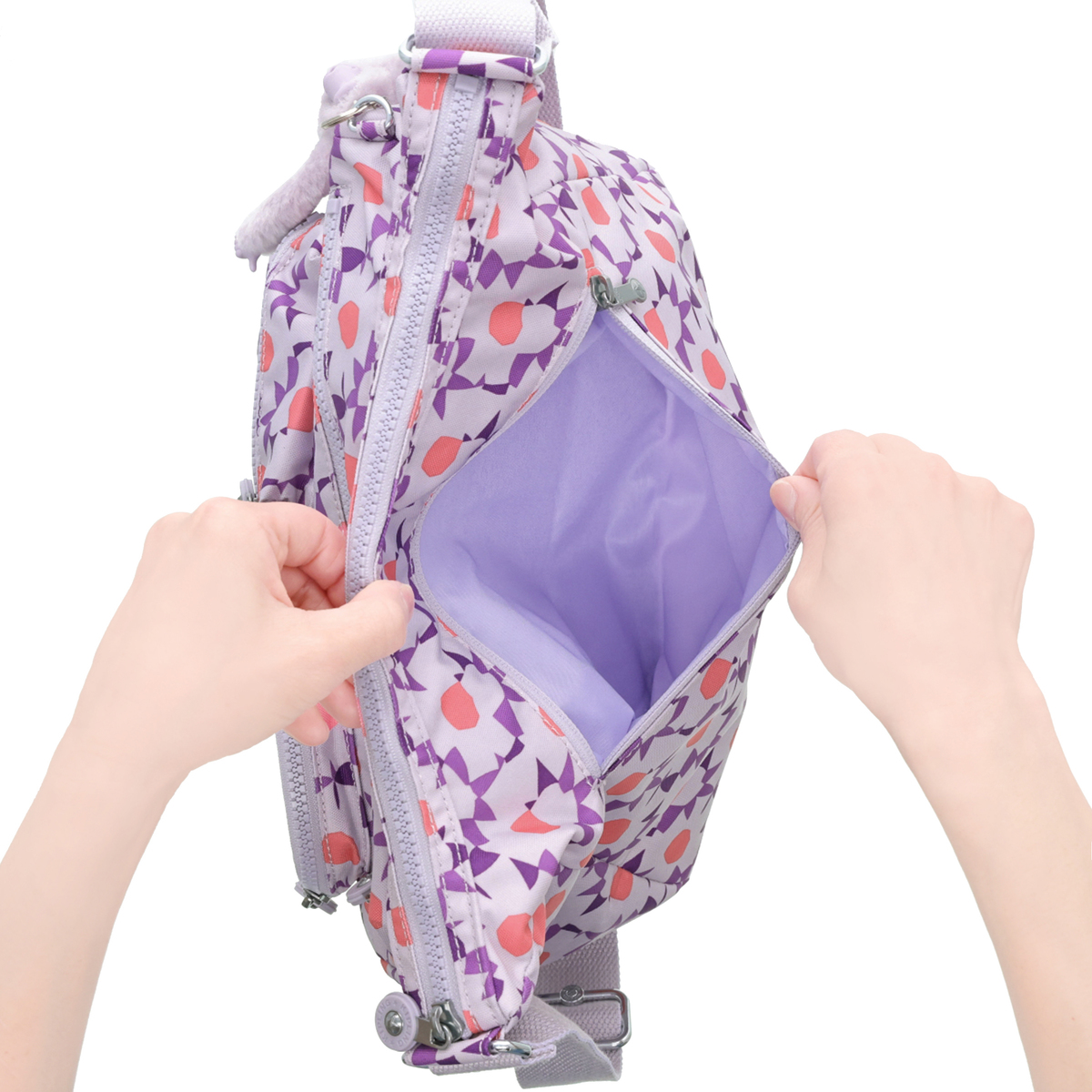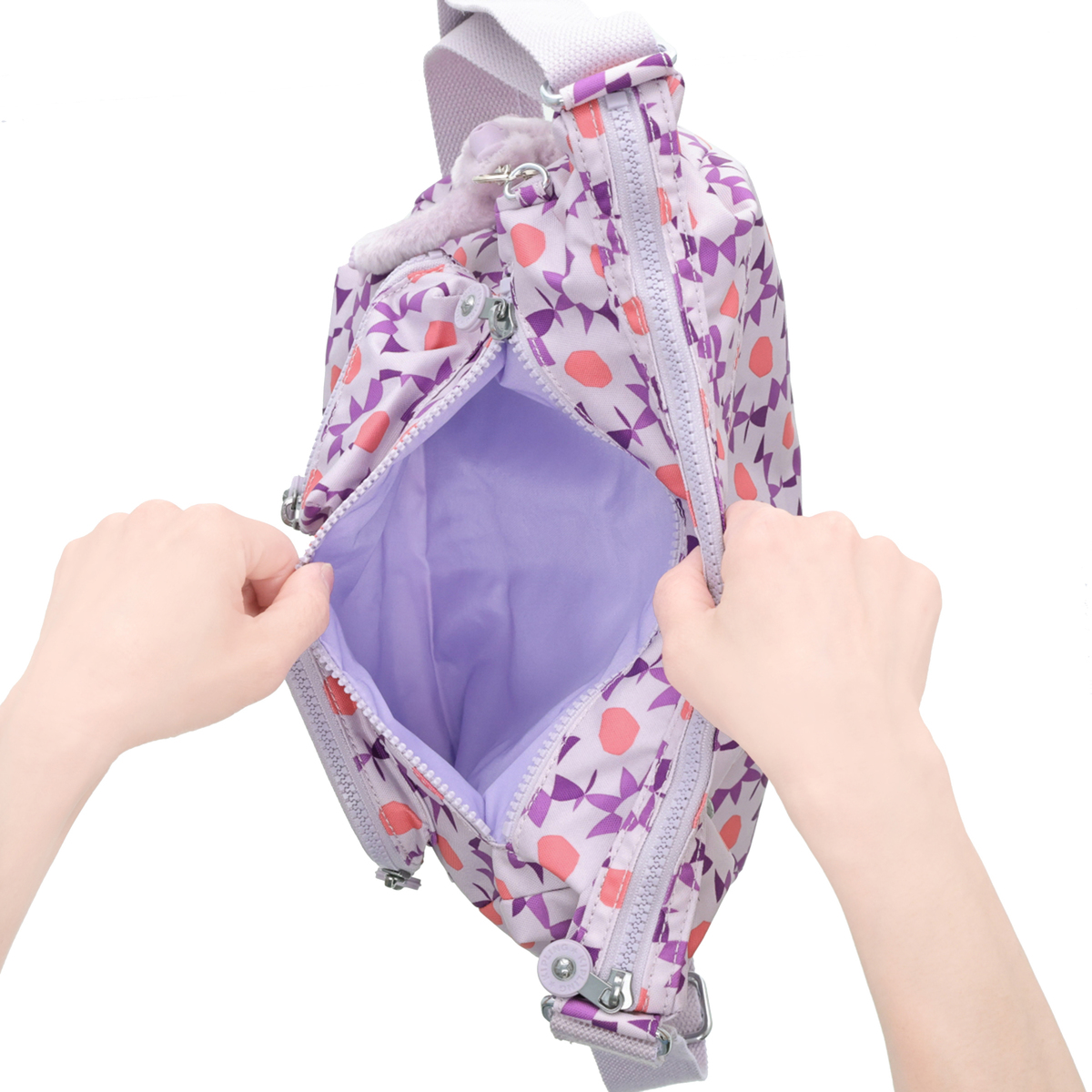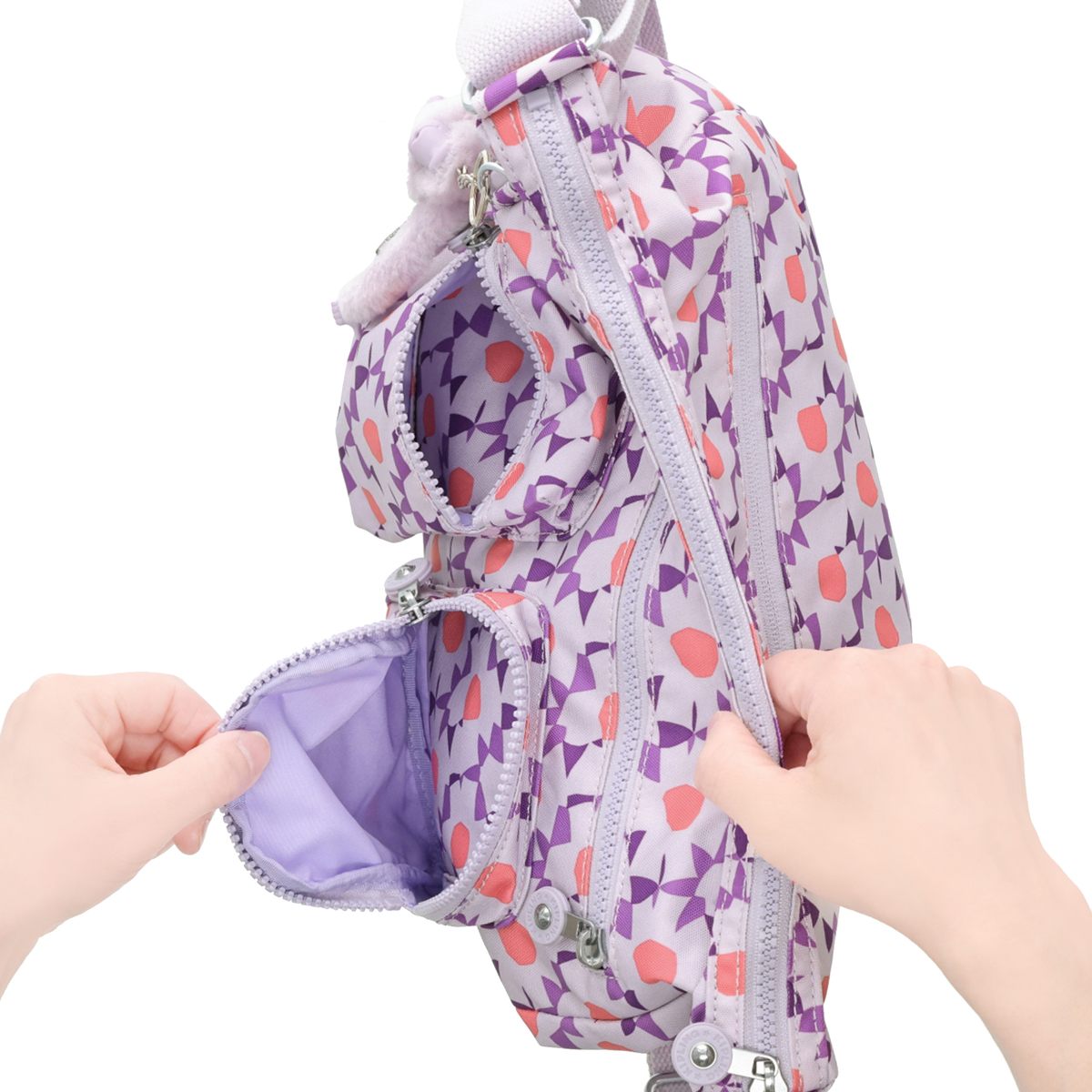 [サイズ(約)] 縦24×横31×マチ13cm ショルダー立上り:42〜80cm [重量]約425g(付属品含む) [素材] <表地> フラワードット以外:ナイロン フラワードット:ポリエステル ※裏地有 [仕様] 付属(取り外し可):チャーム×1 開閉:ファスナー式 底ビョウ:無 [ポケット] 内側:ファスナーポケット×1、オープンポケット×1、ペン挿し×2、キーフック×1 外側:ファスナーポケット×4 [注意事項] ※直射日光や蛍光灯の影響で変色することがありますのでご了承ください 【インドネシア製】